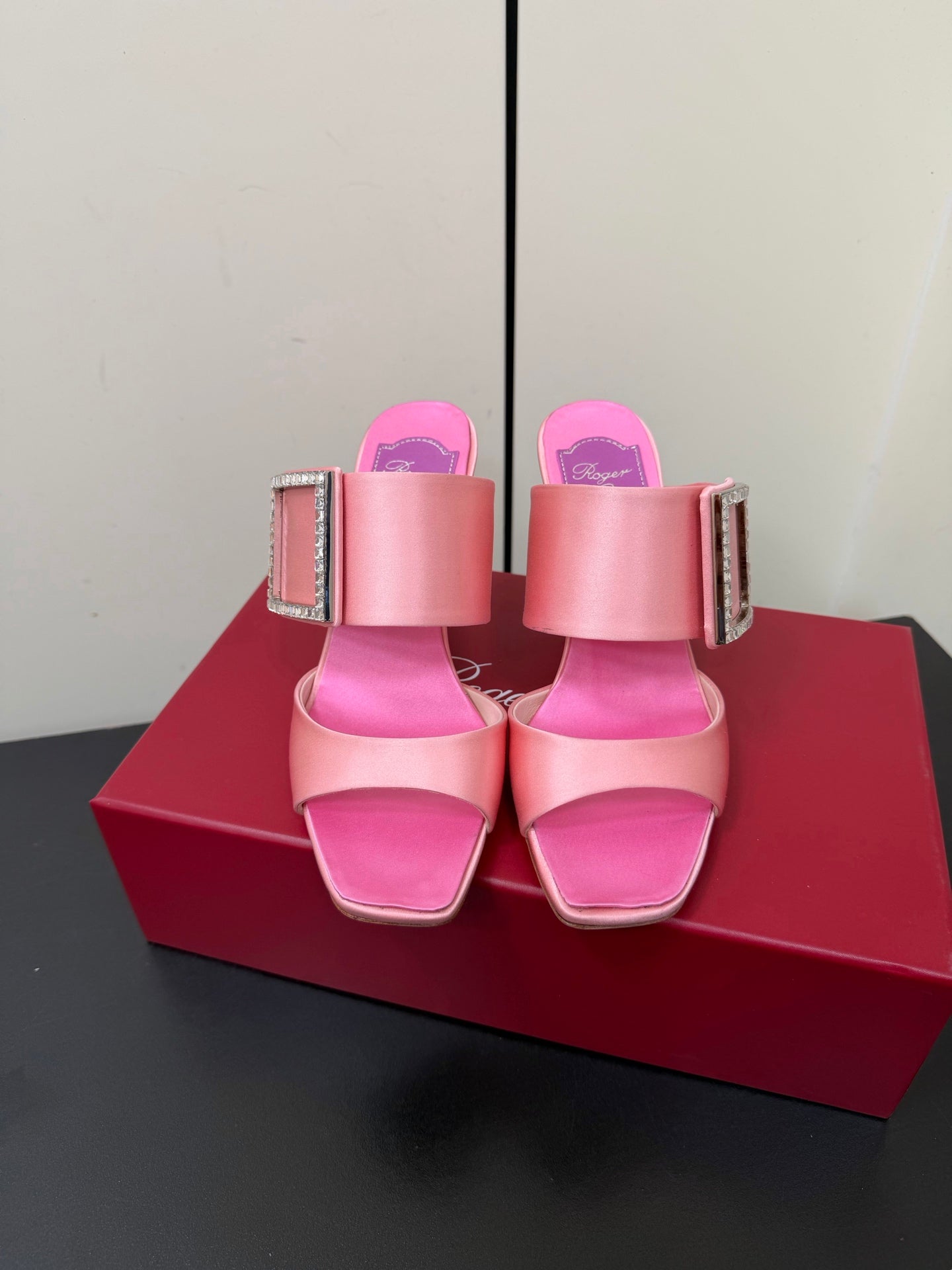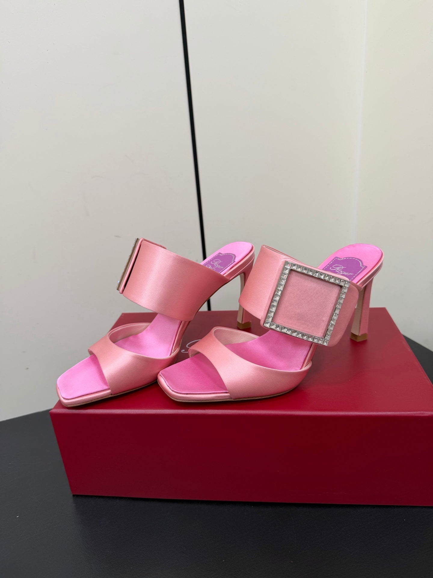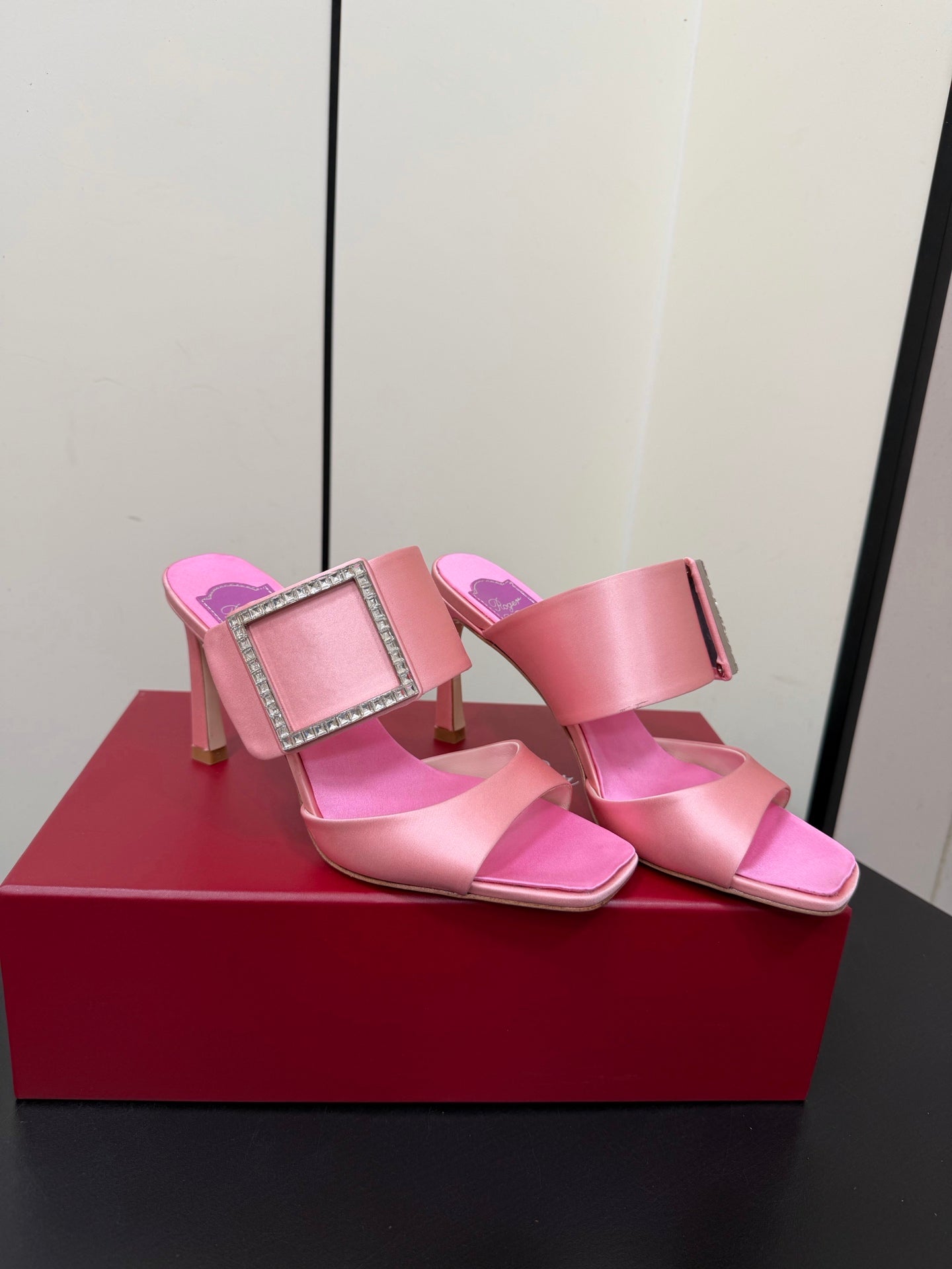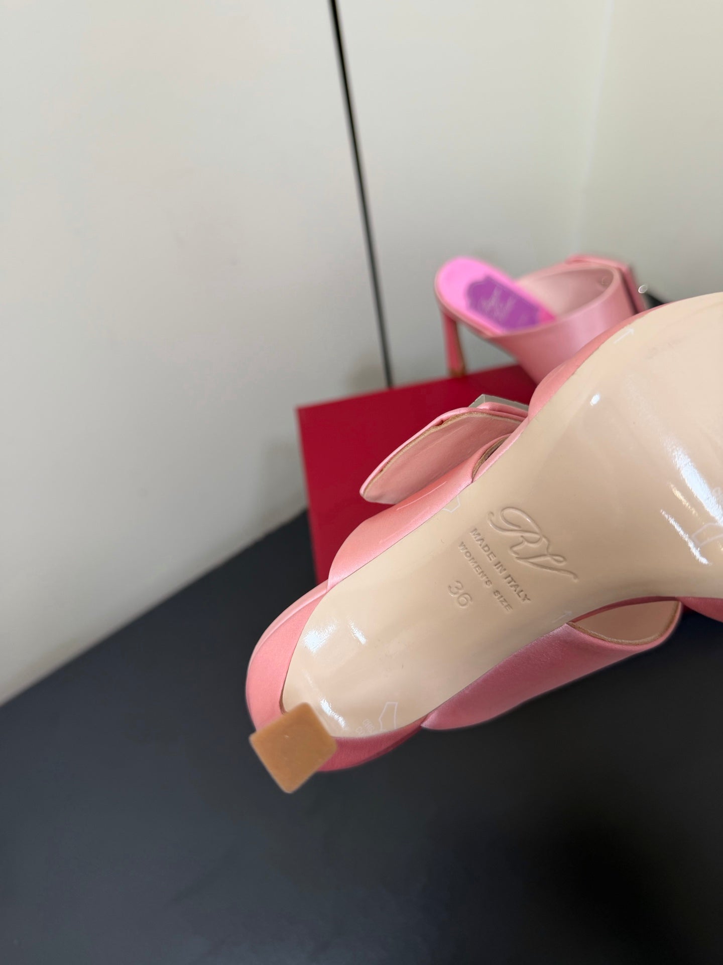 RV Trompette Sandals 8.5cm Black Pink Satin 619600