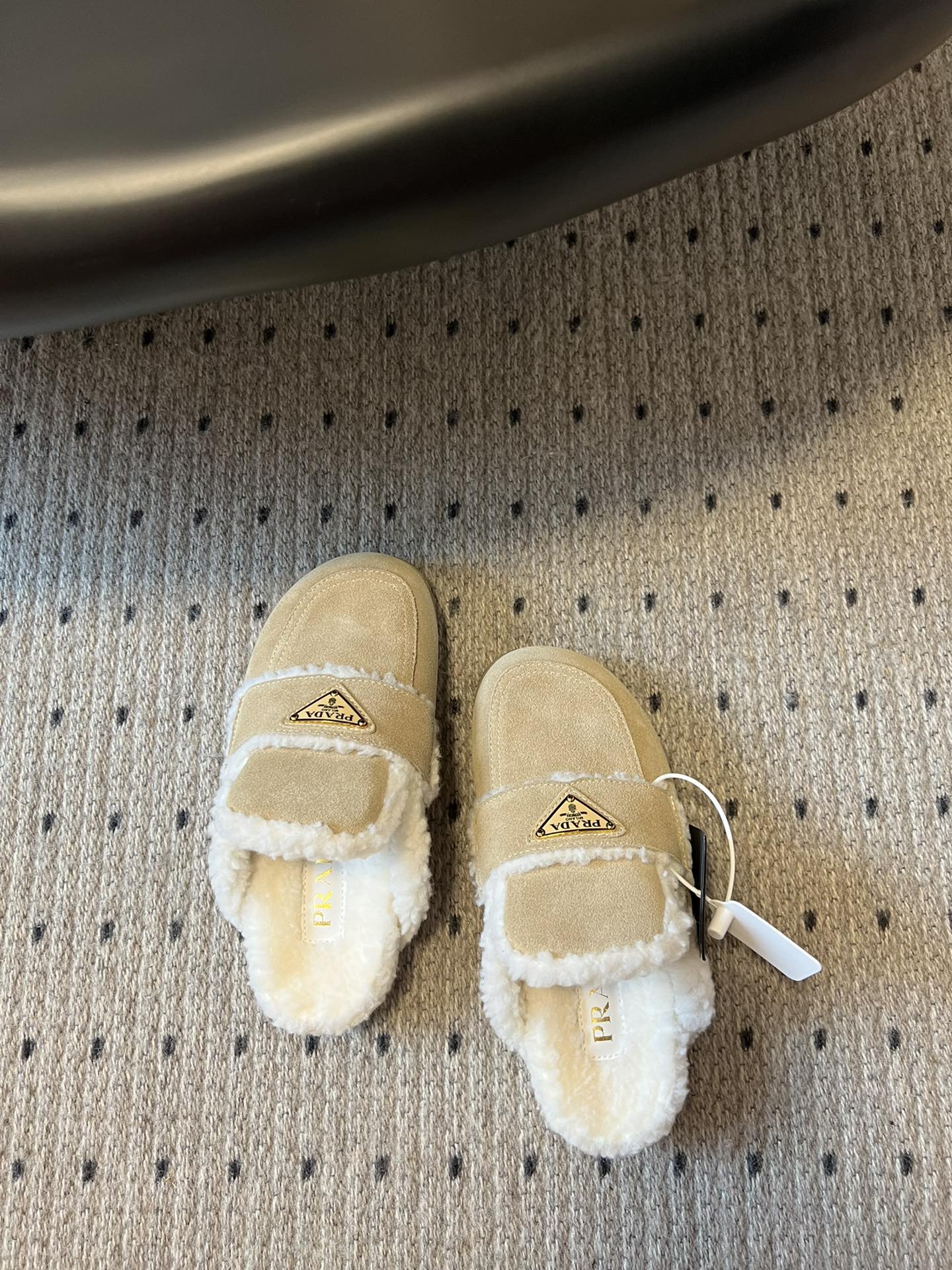 CC furry mule light beige black suede and wool 532577