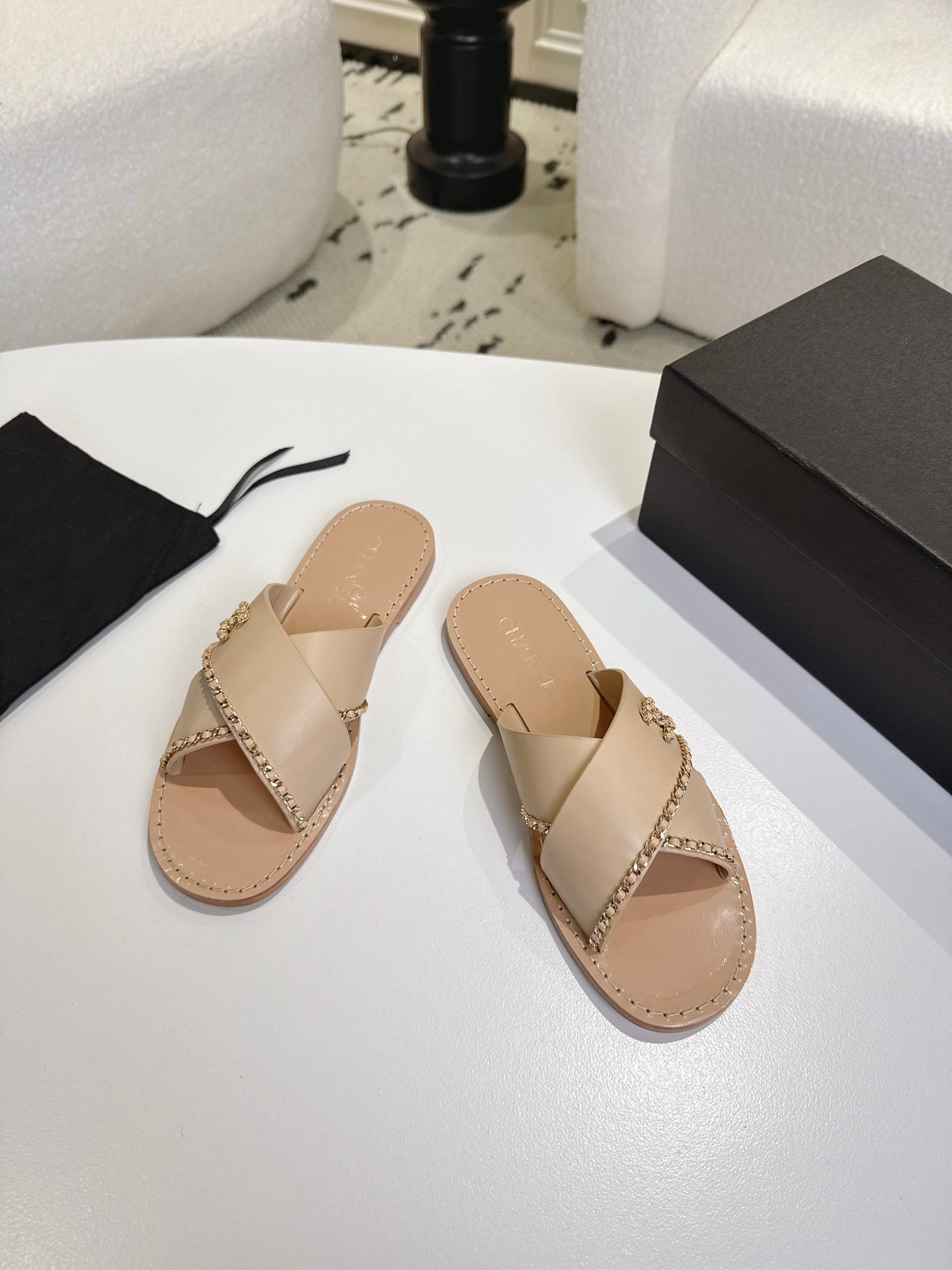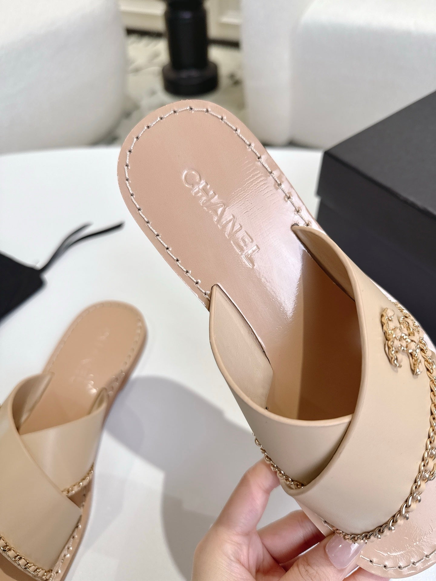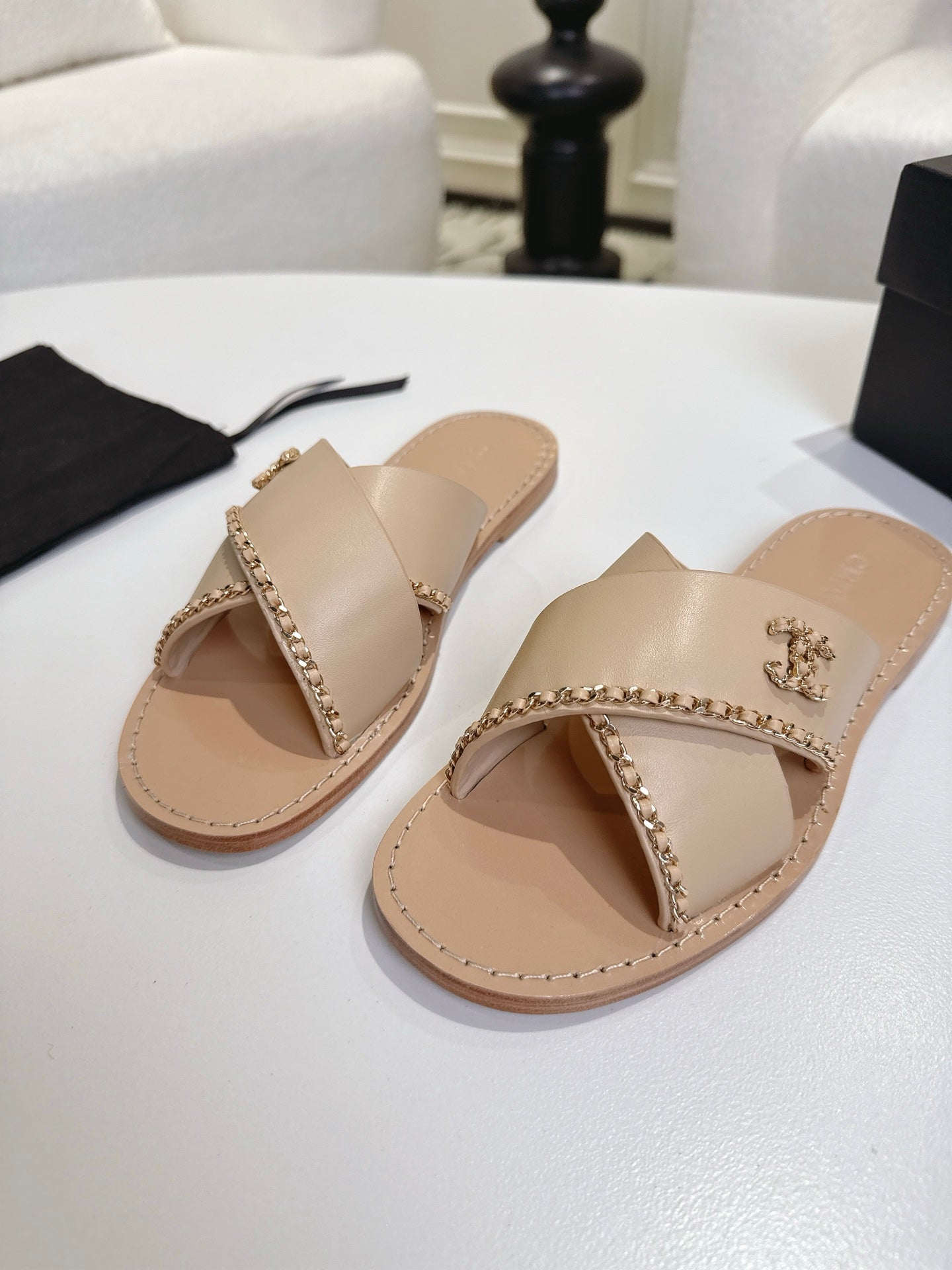 CC 25 Flip Flop Sandals Black Calfskin Espadrilles