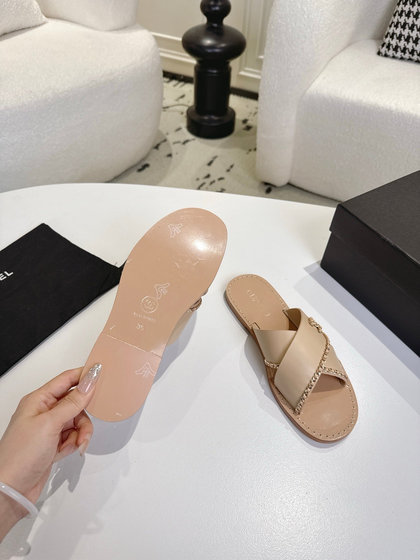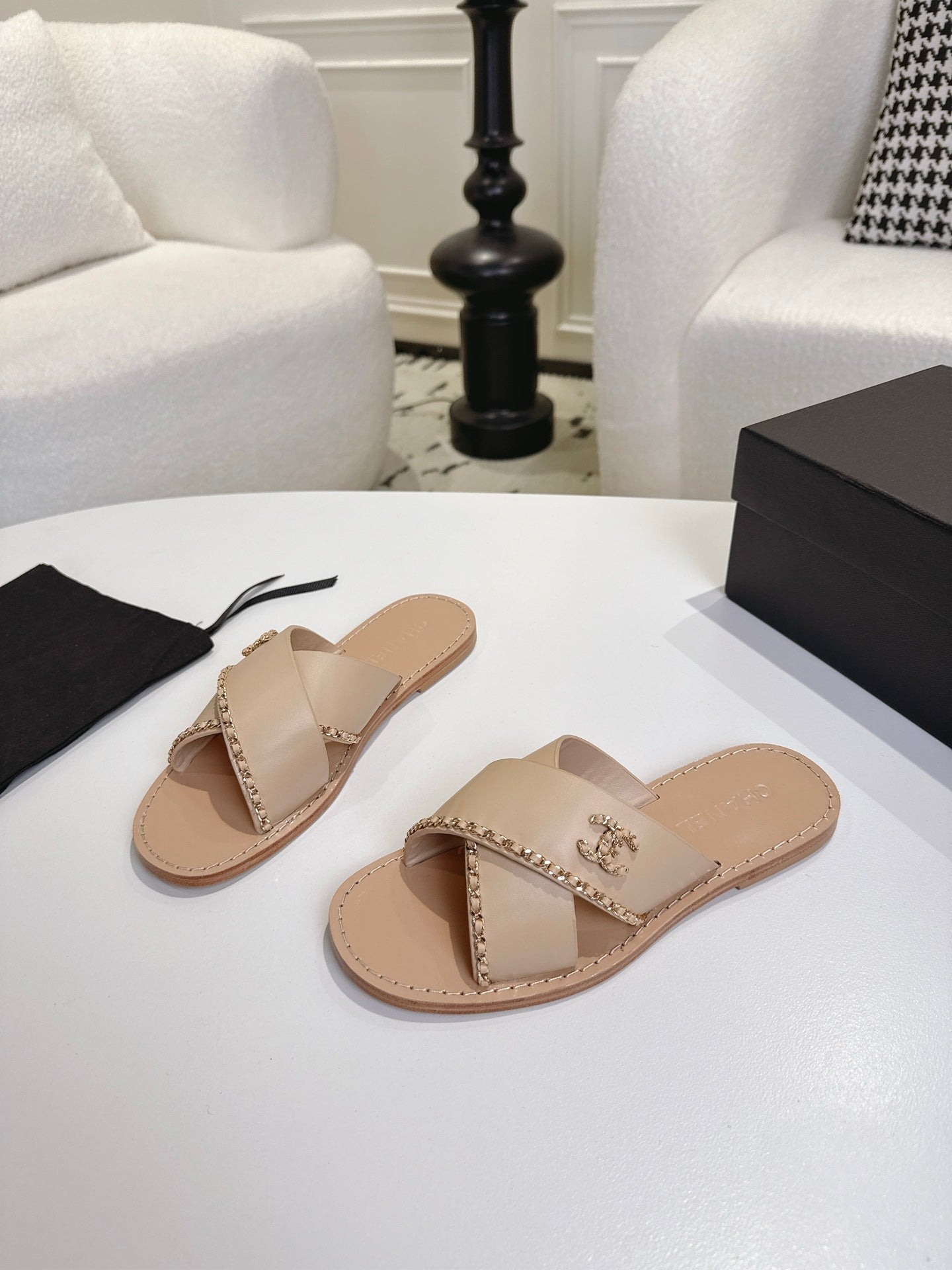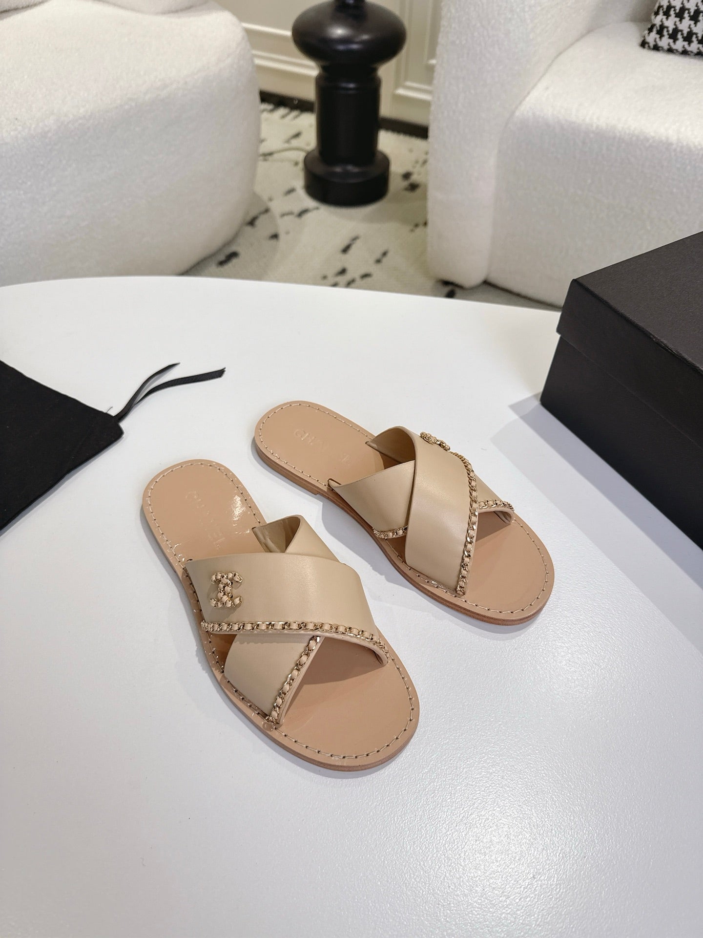 CC 25 Flip Flop Sandals Black Calfskin Espadrilles