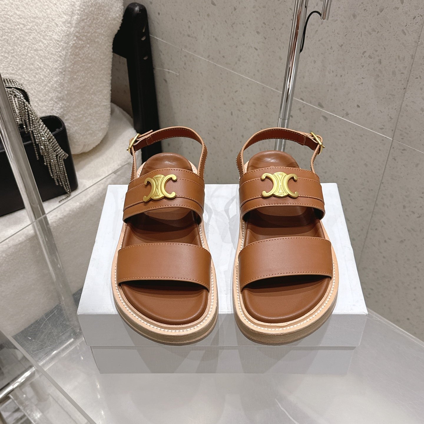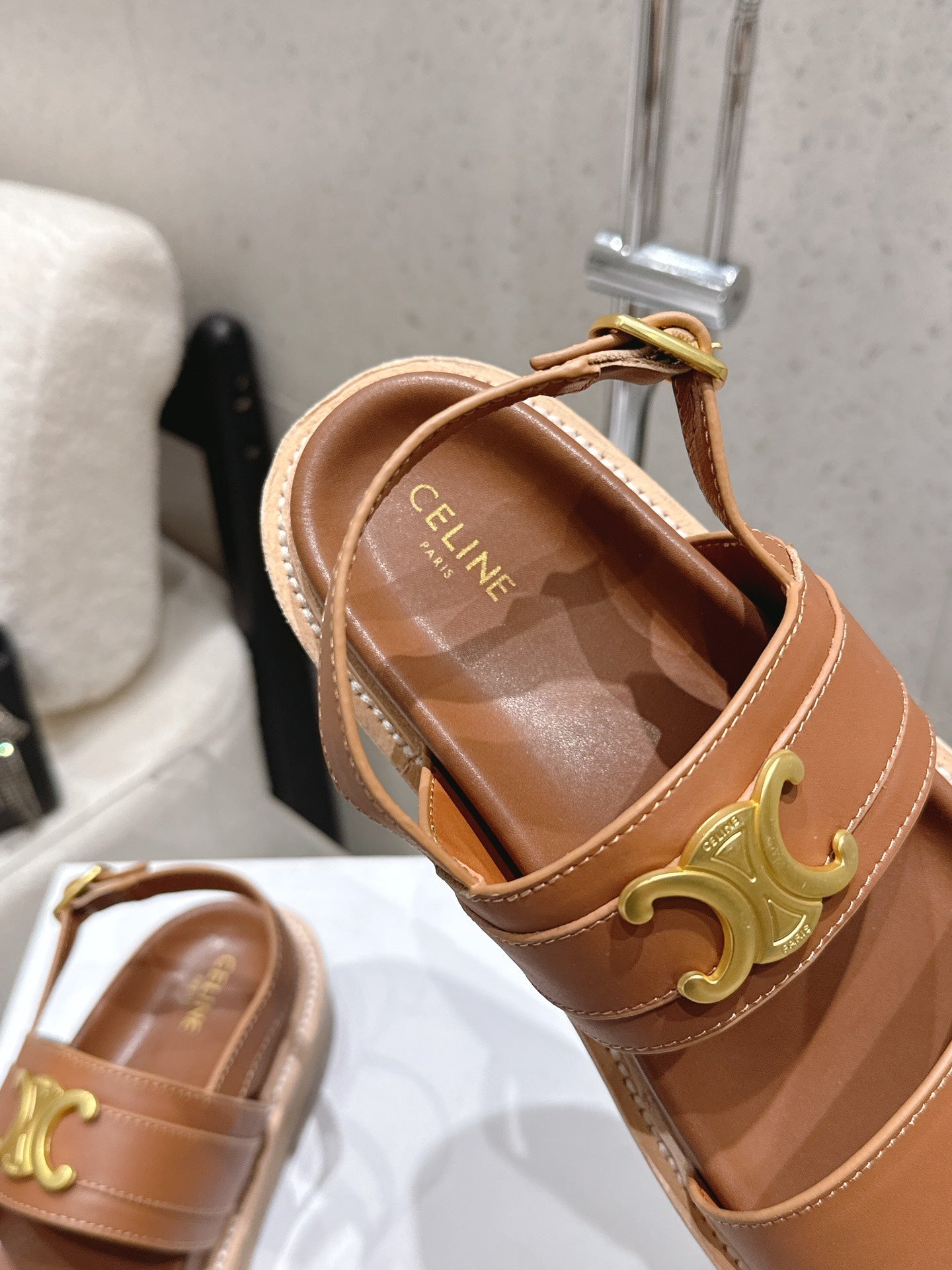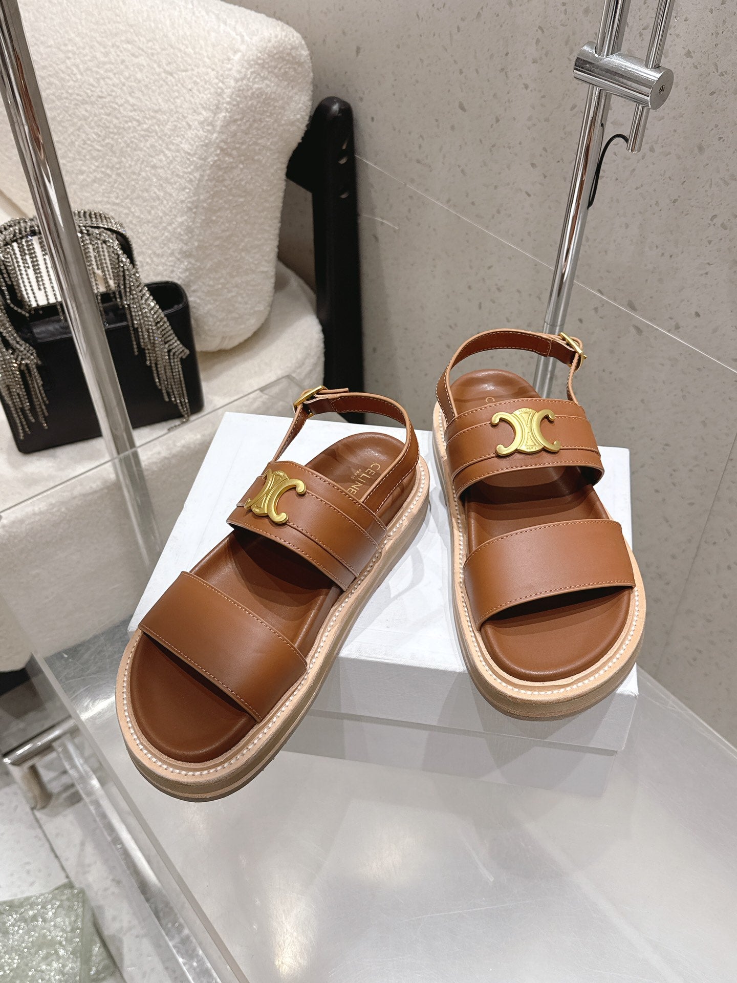 Celine Triomphe Sandals Brown Calfskin 610938