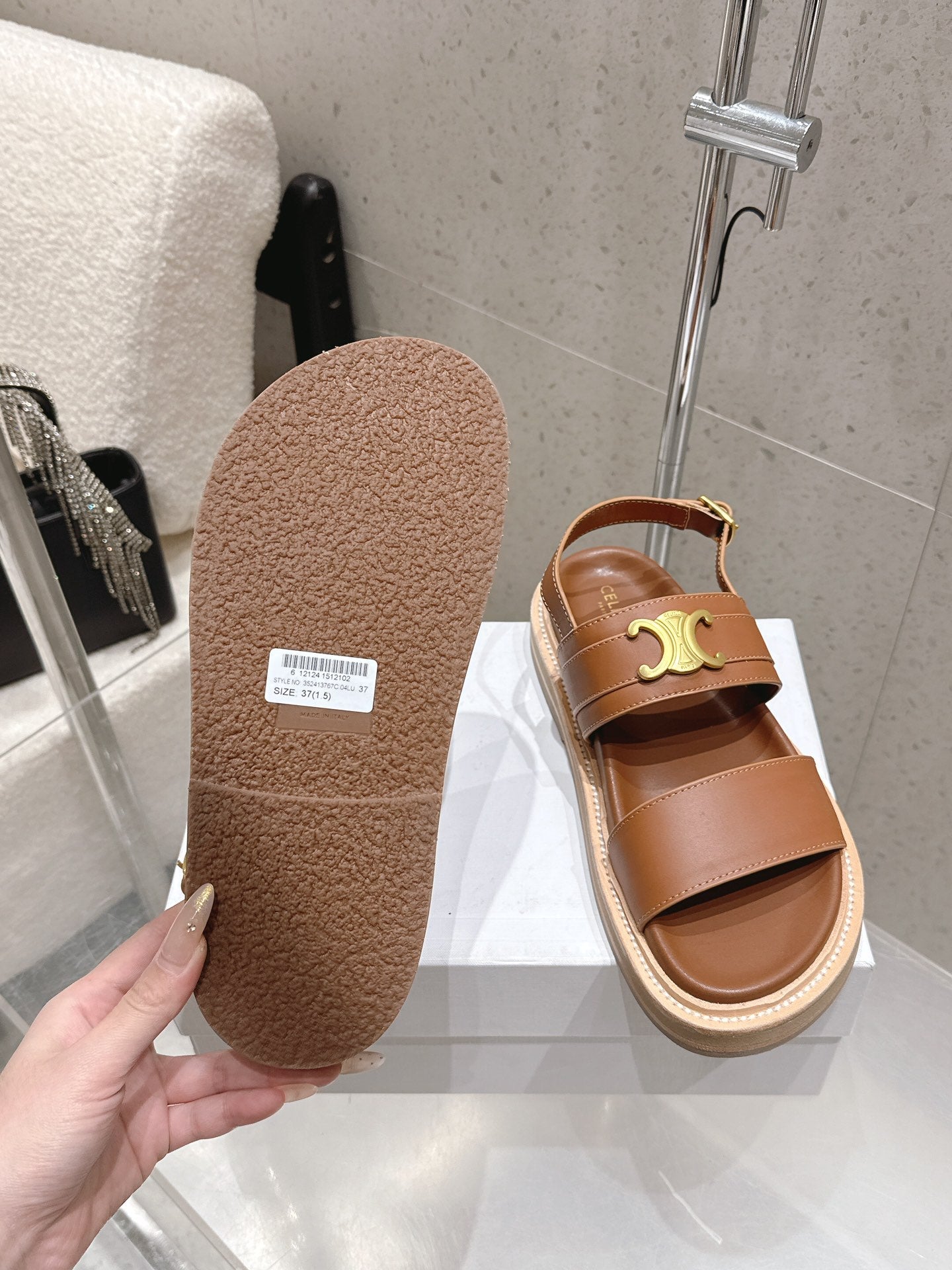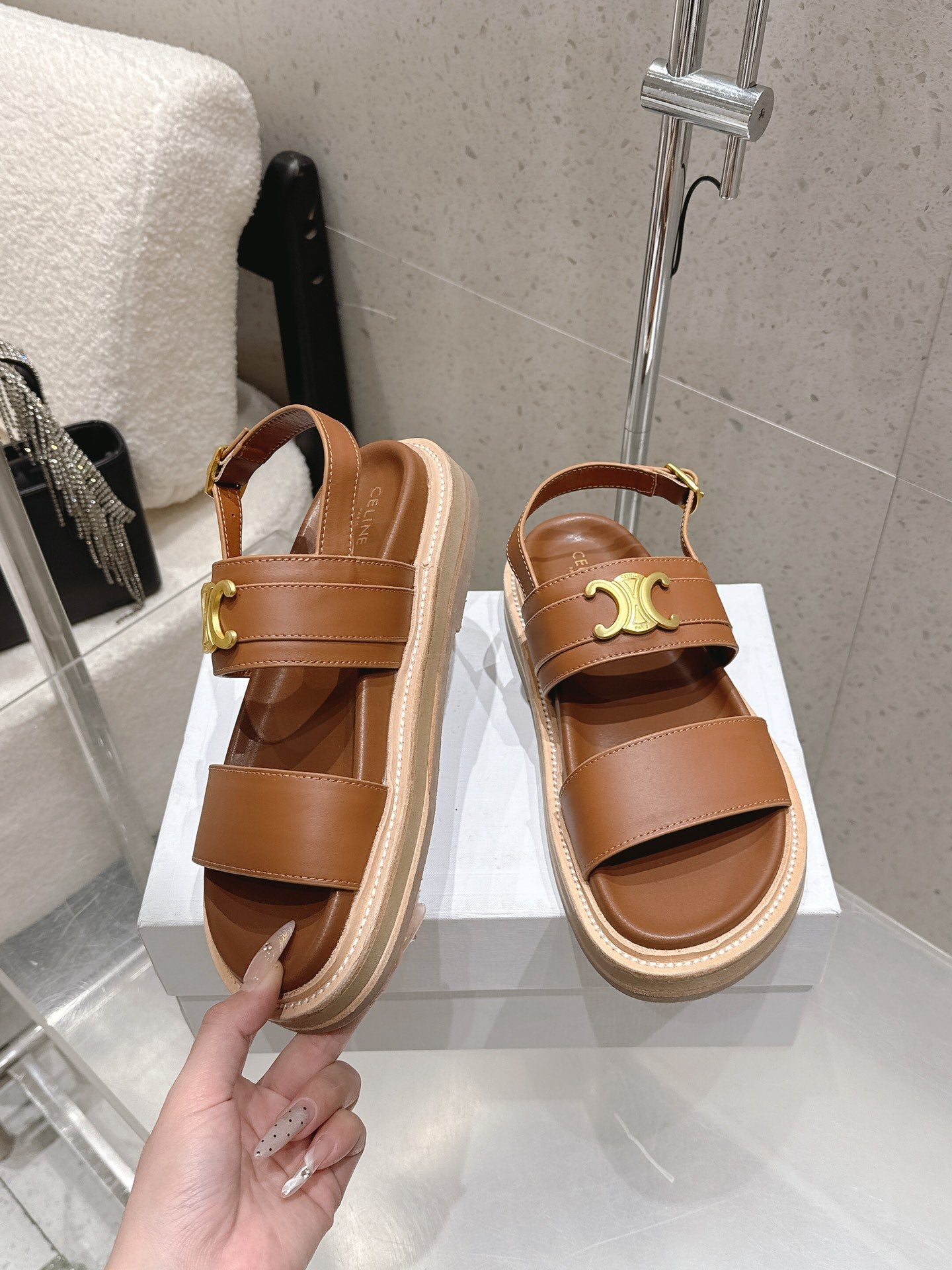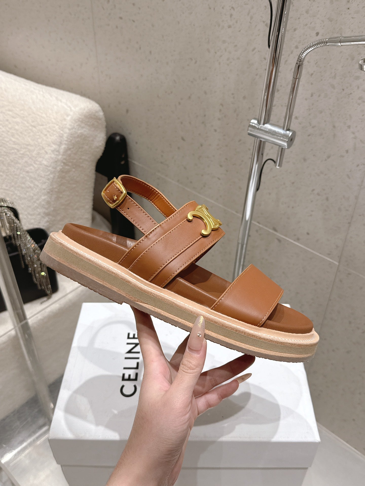 Celine Triomphe Sandals Brown Calfskin 610938