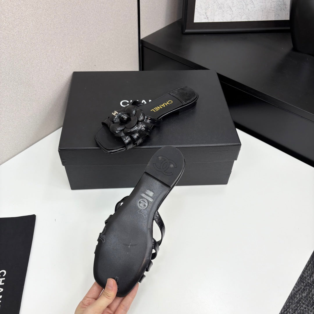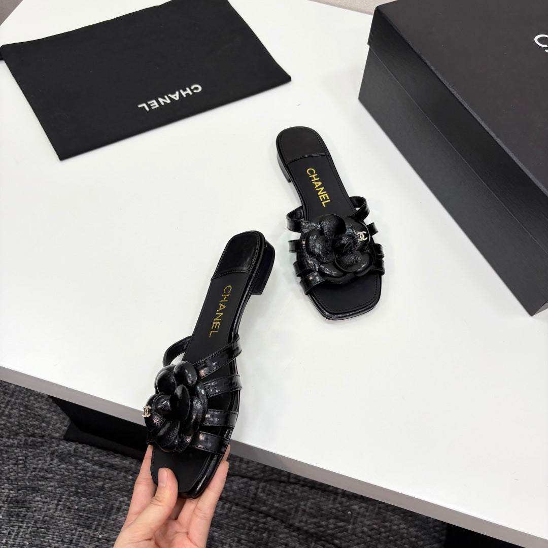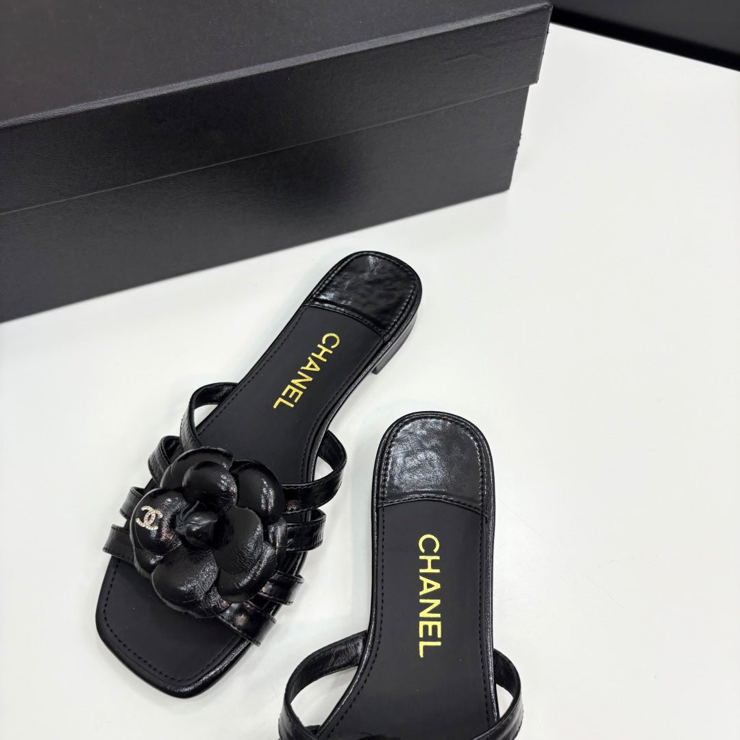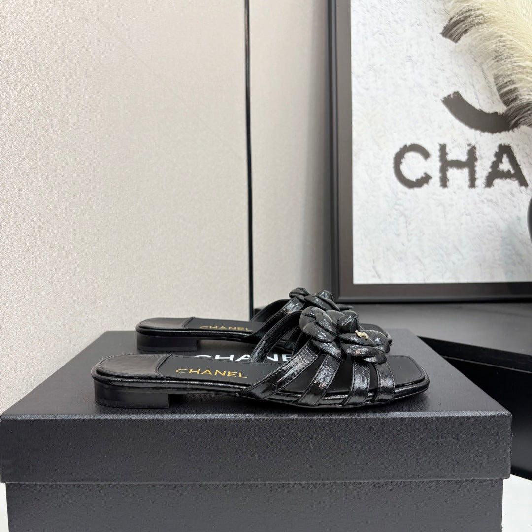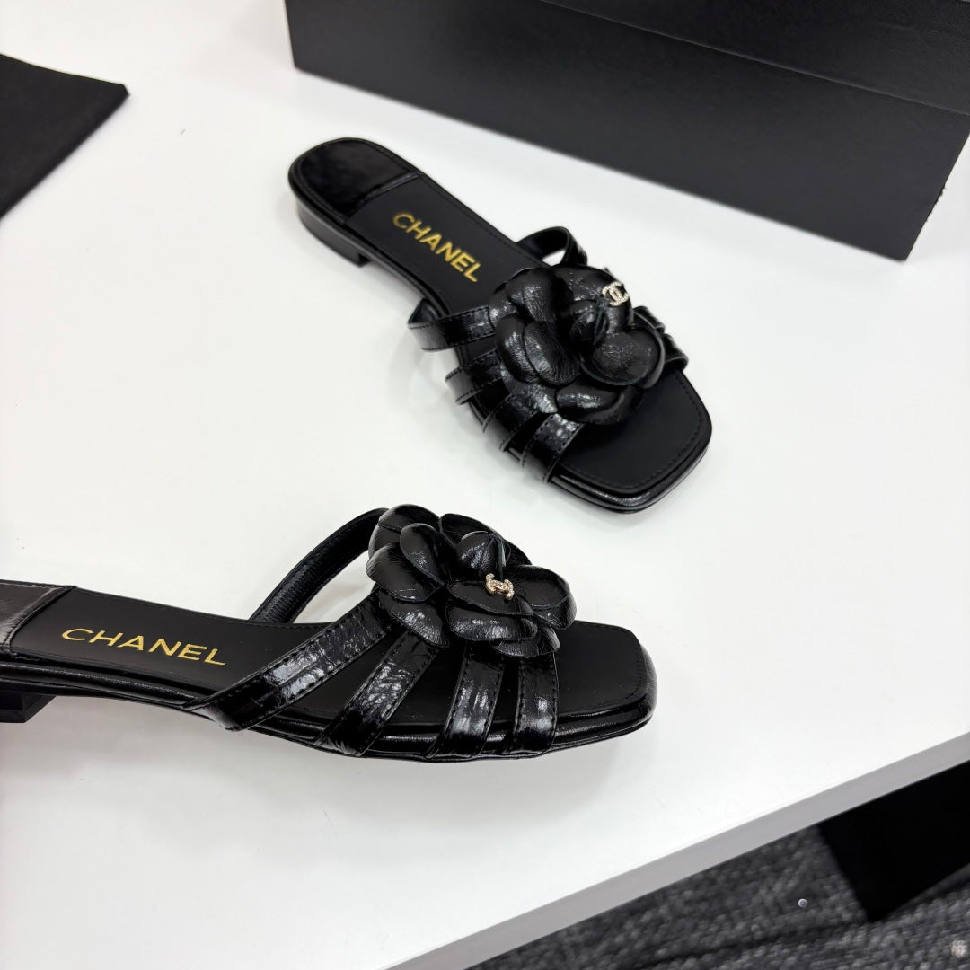 CC 25 Camellia Open Flat Mule Black Sheepskin 368847