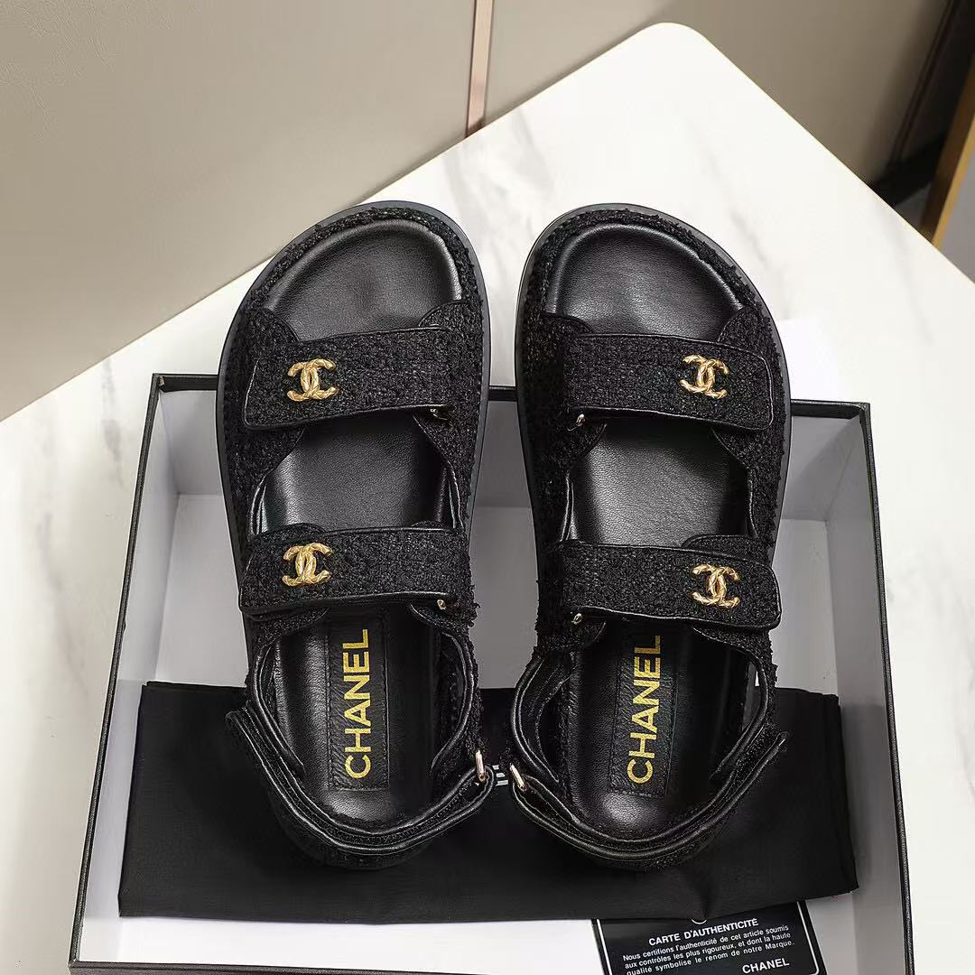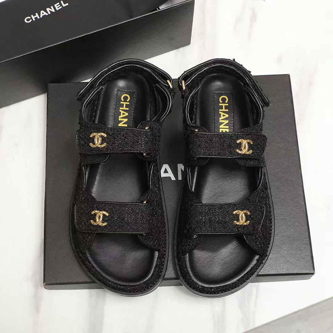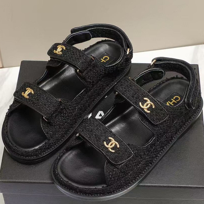 CC DAD SANDAL BLACK LAMBSKIN FRABIC