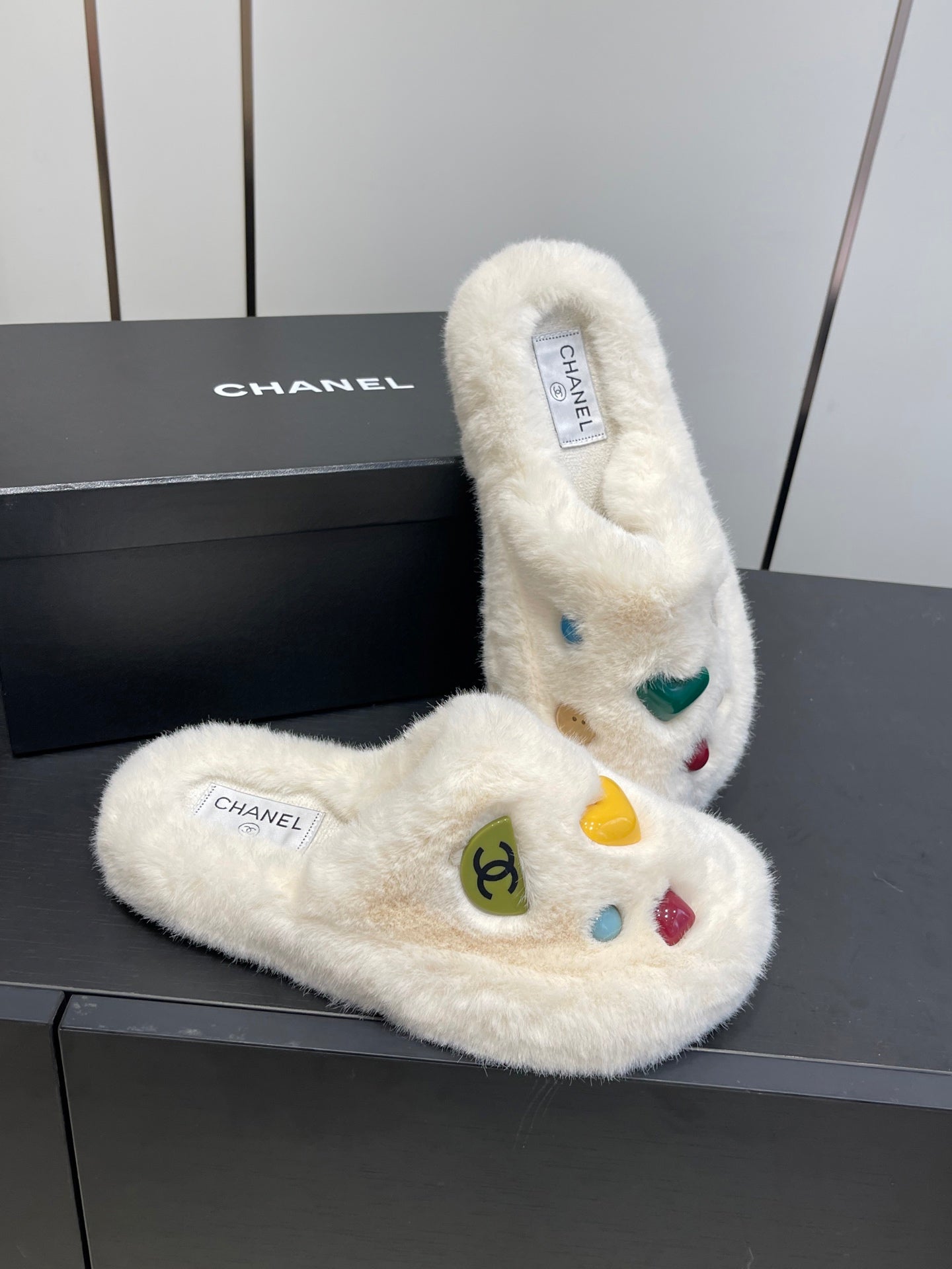 CC Double C Furry Slippers White Fur 554699