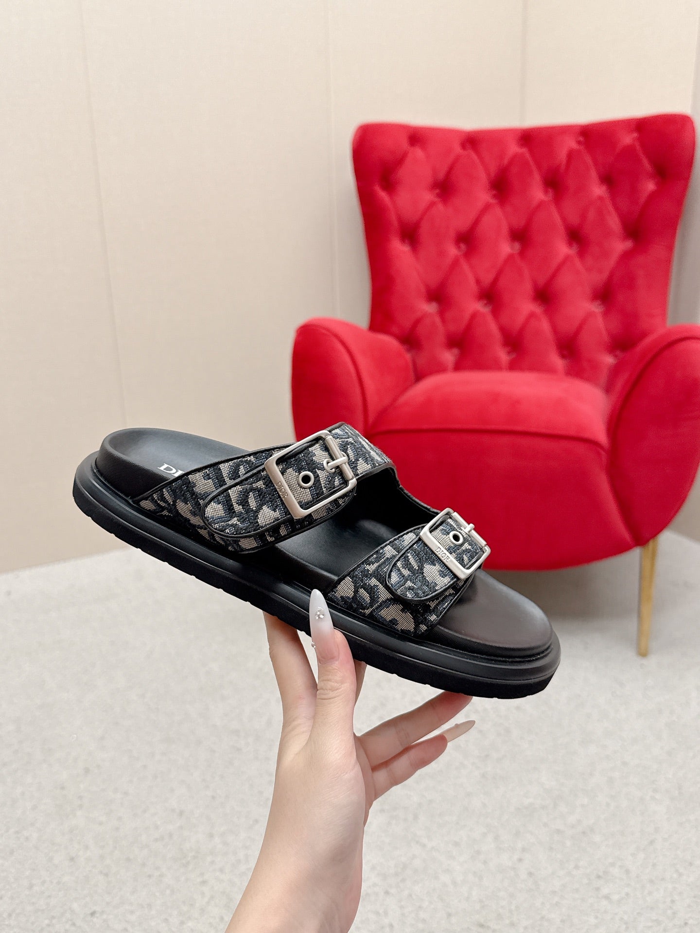 CD Aqua Sandals with Straps Beige Black Oblique Jacquard Frabic 476661