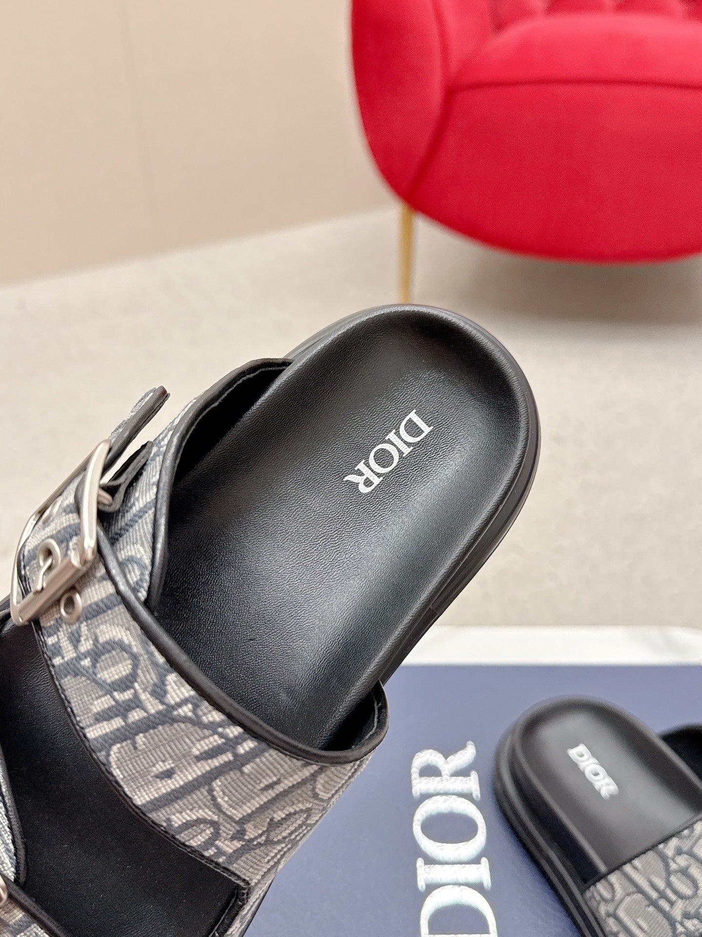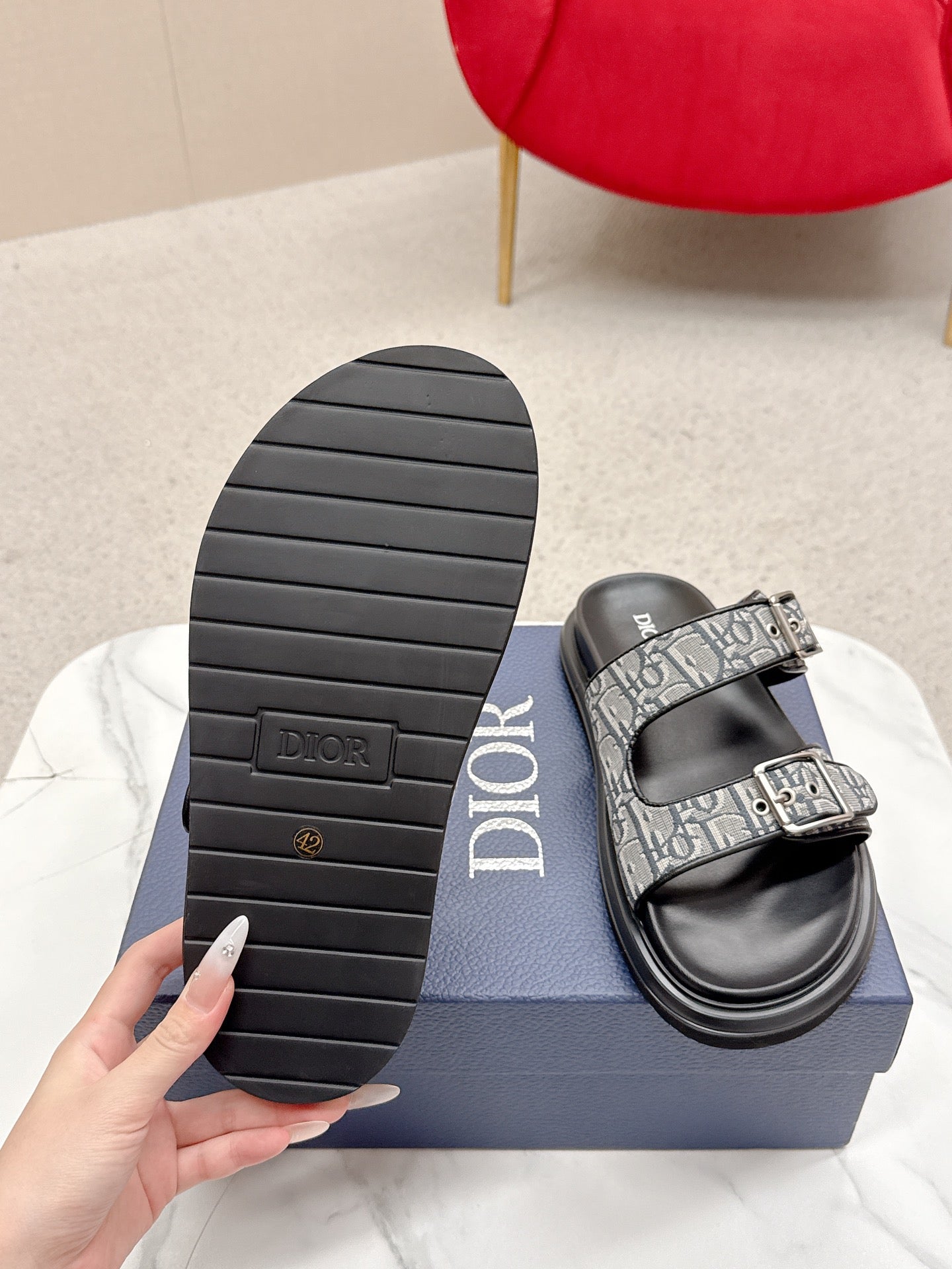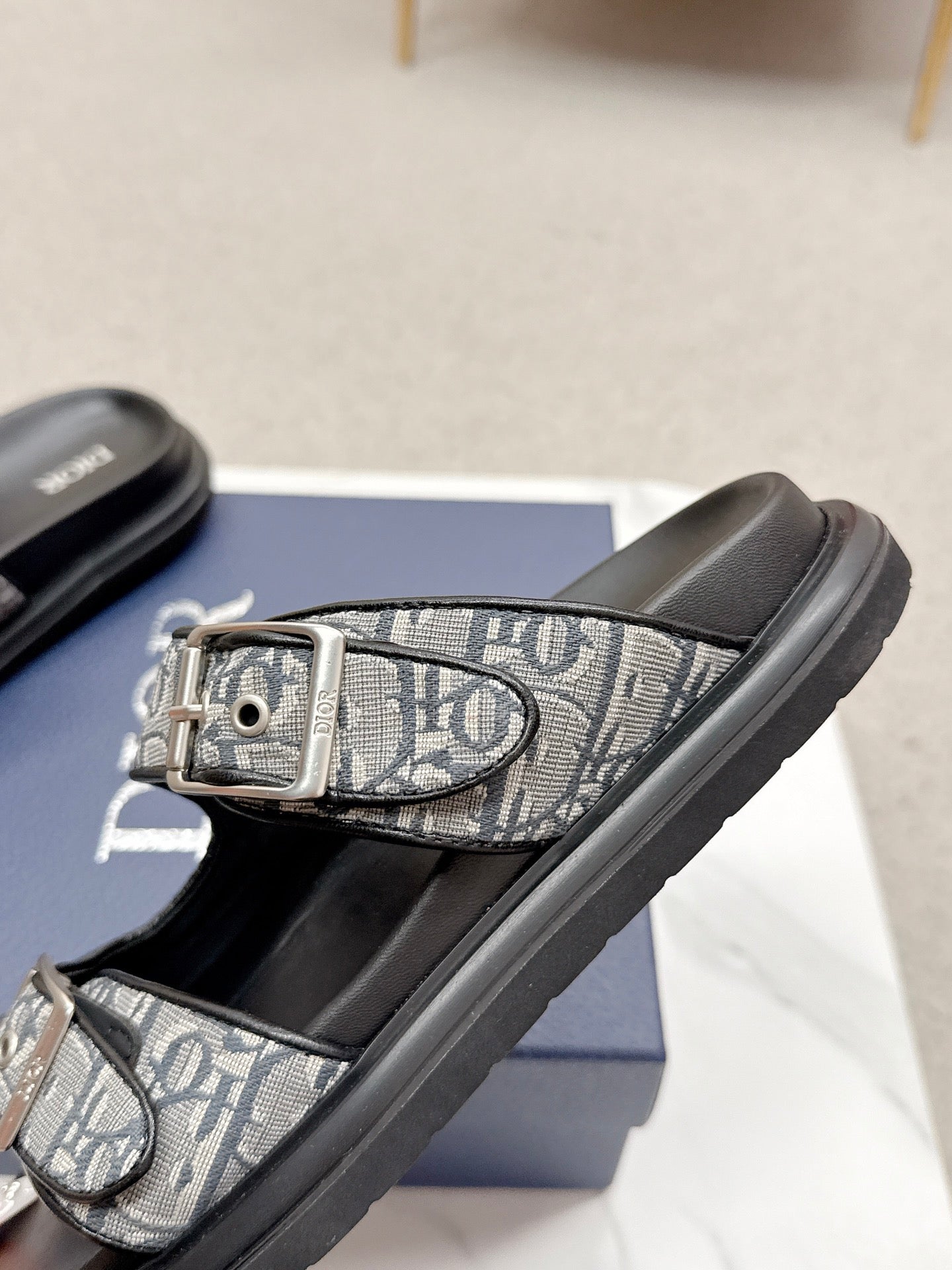 CD Aqua Sandals with Straps Grey Black Oblique Jacquard Frabic 476659