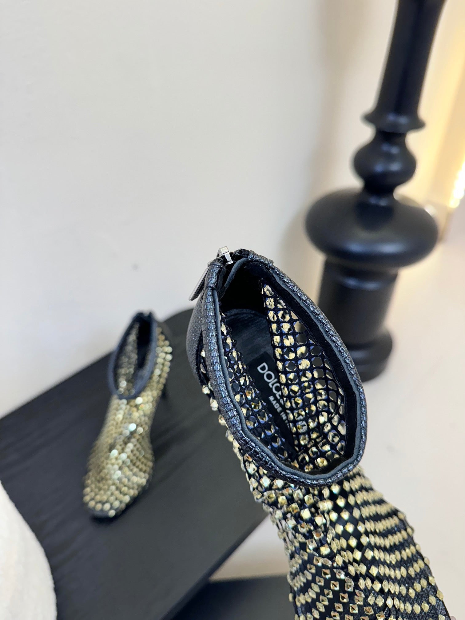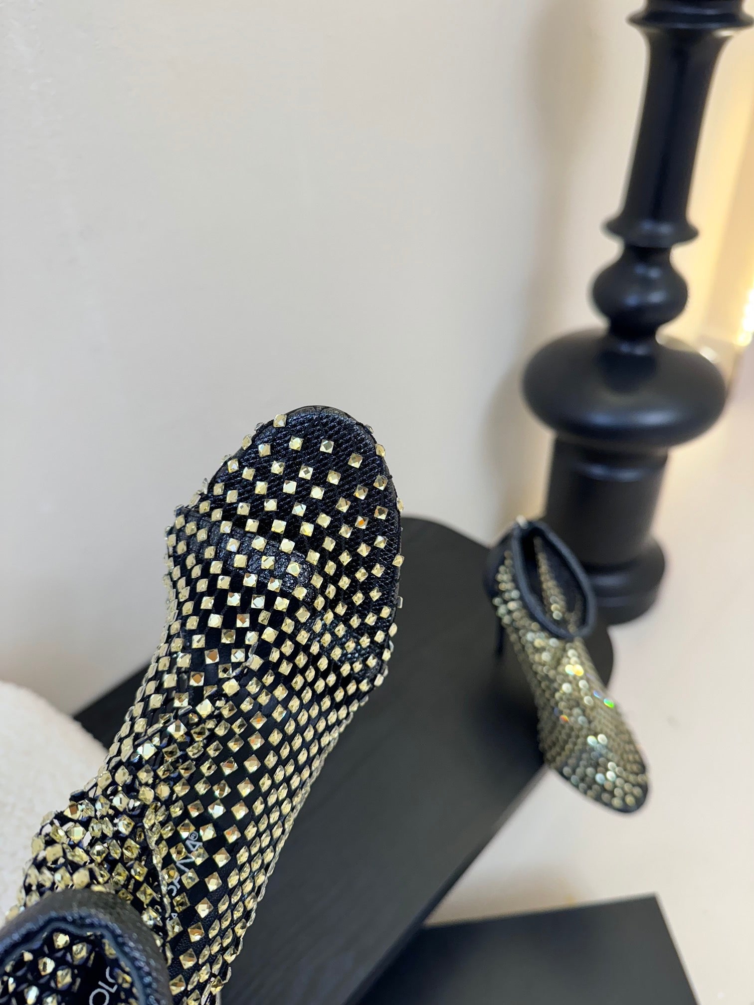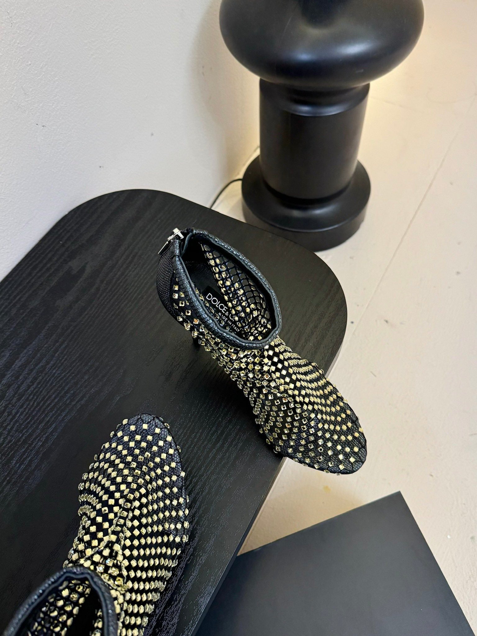 DC Pumps Black Gold Rhinestone Mesh & Sheepskin 297013