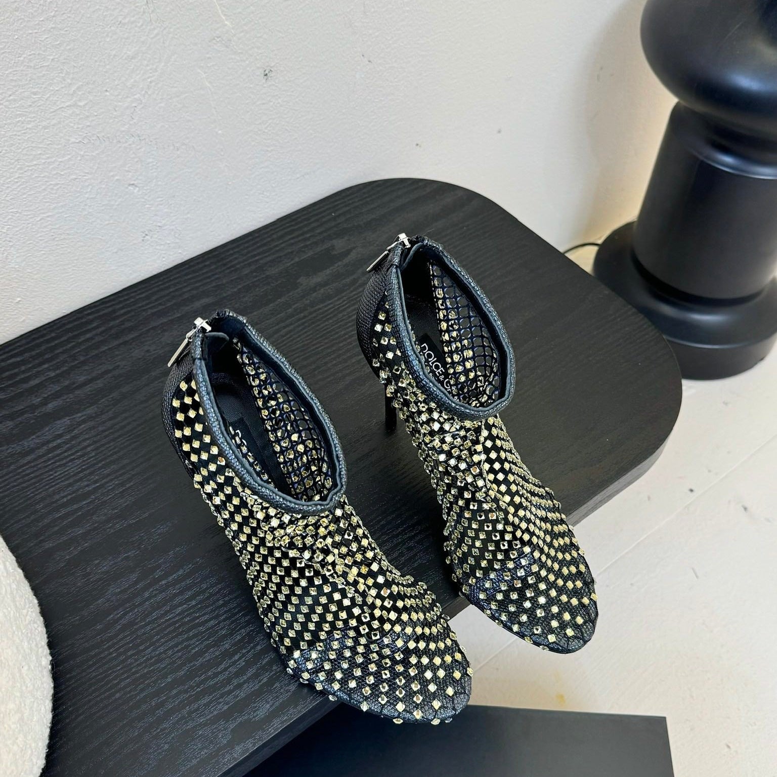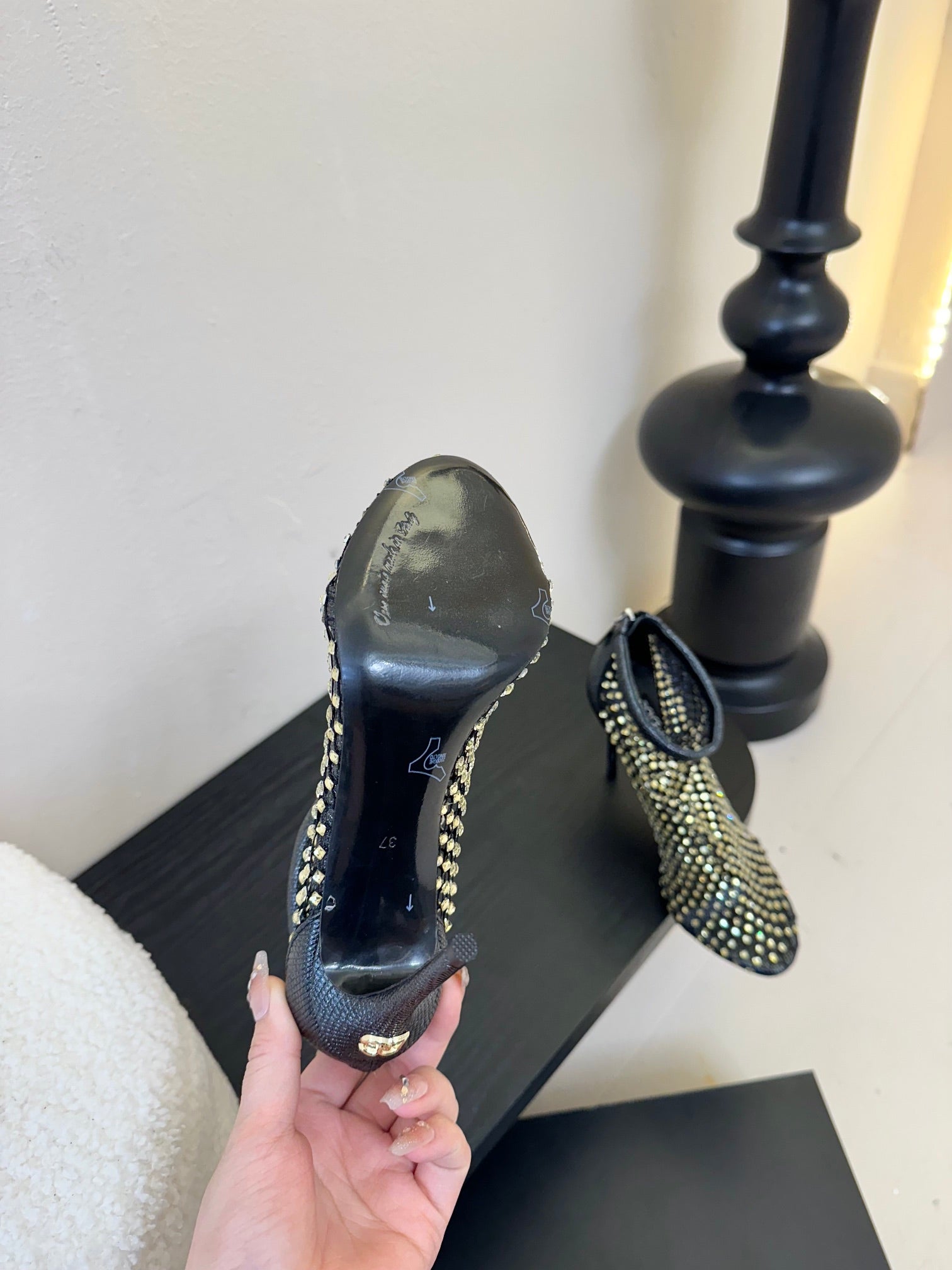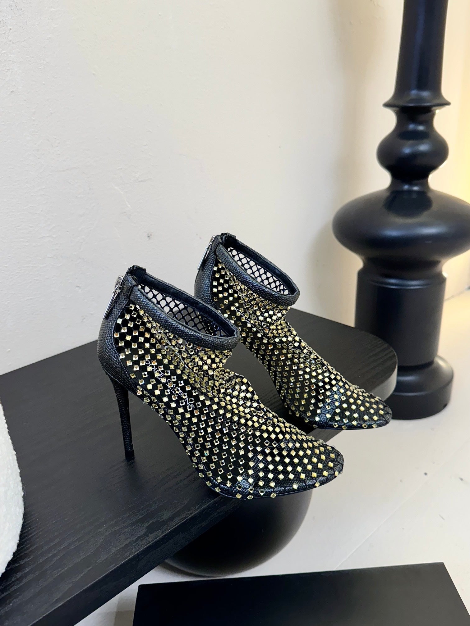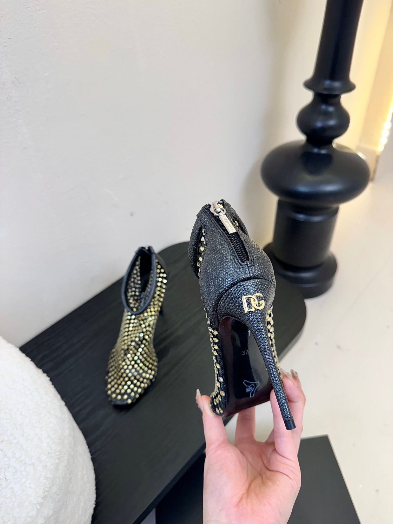 DC Pumps Black Gold Rhinestone Mesh & Sheepskin 297013