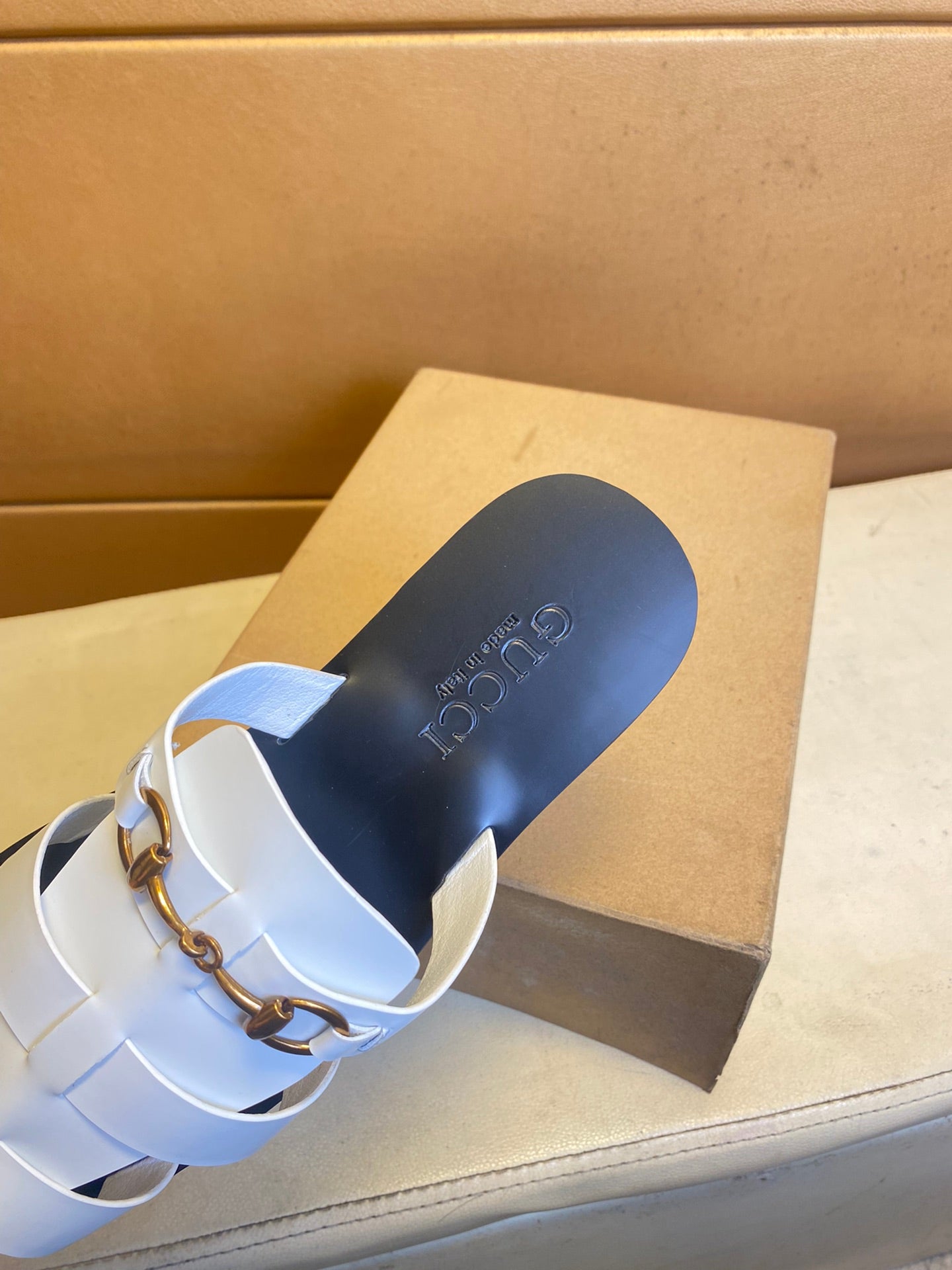 GG Men's Sandals Slide White Cowhide 724697