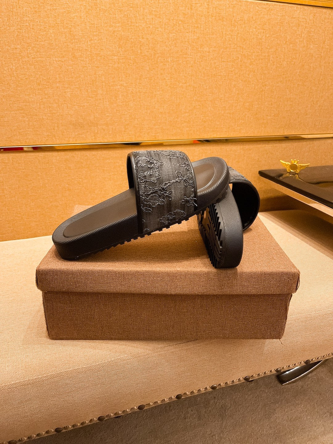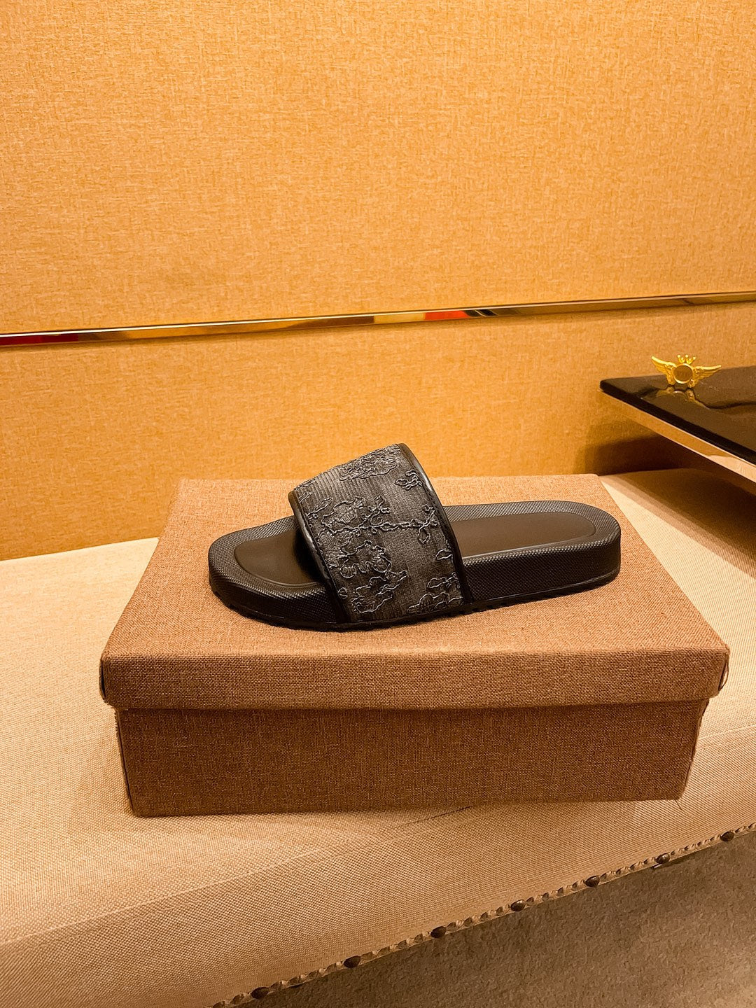 GG Men's Slide Black Calfskin 709745
