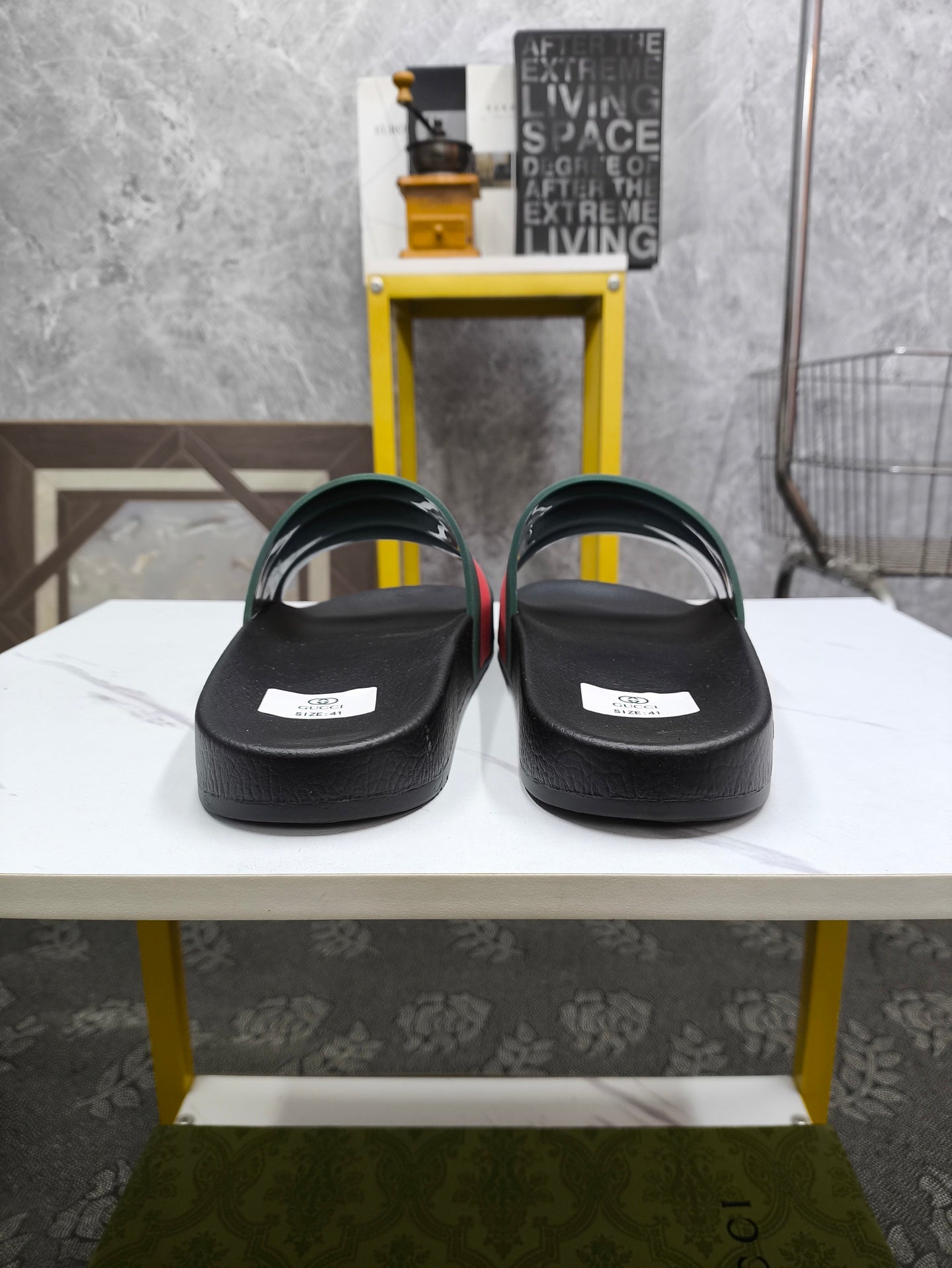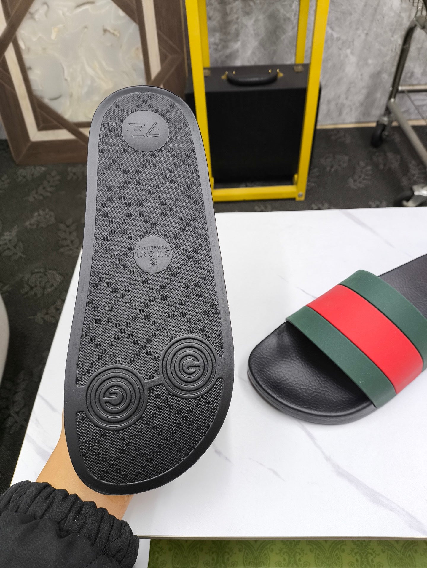 GG Men's Slide Green Red Sheepskin 540041