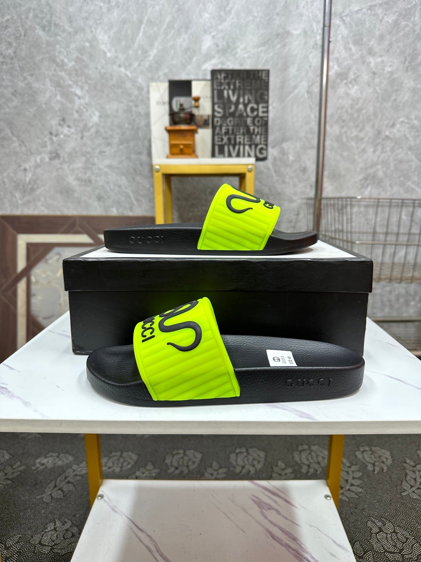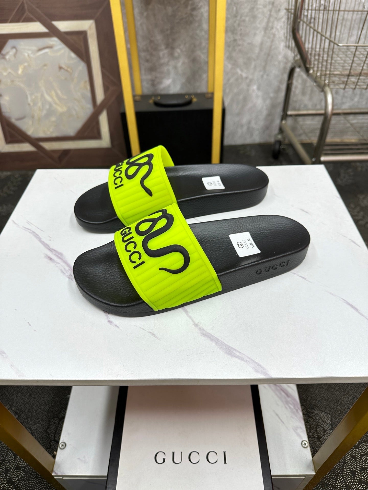 GG Men's Slide Green Sheepskin Rubber 540095