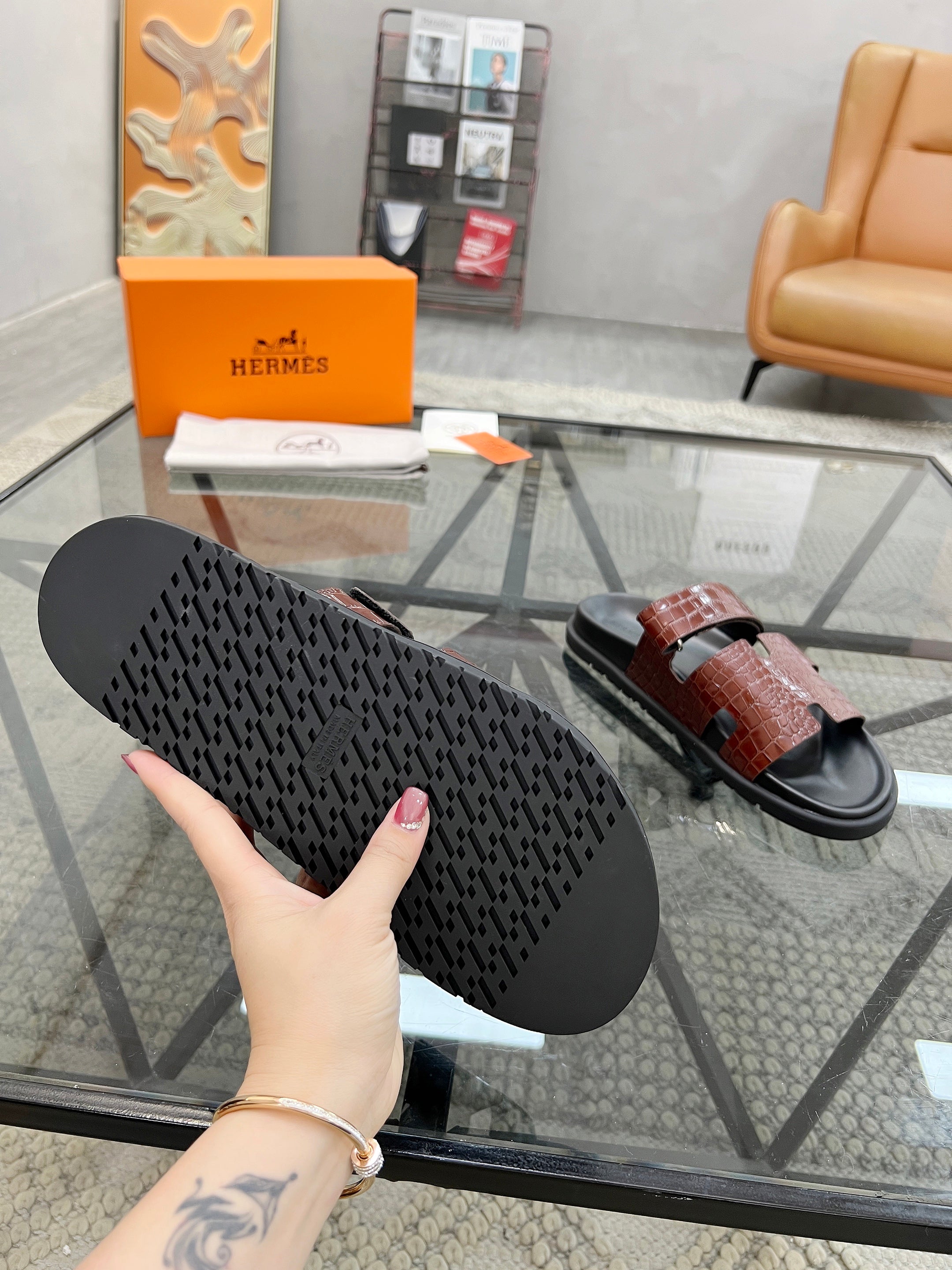 HM Men's Chypre Slide Red Cowhide 544582