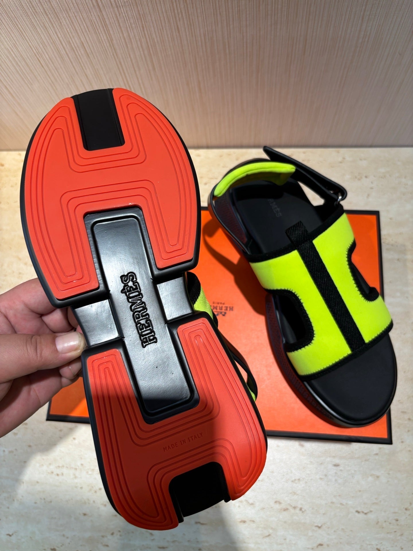 HM Men's Gate Sandal Neon Yellow Suede Calfskin 655430