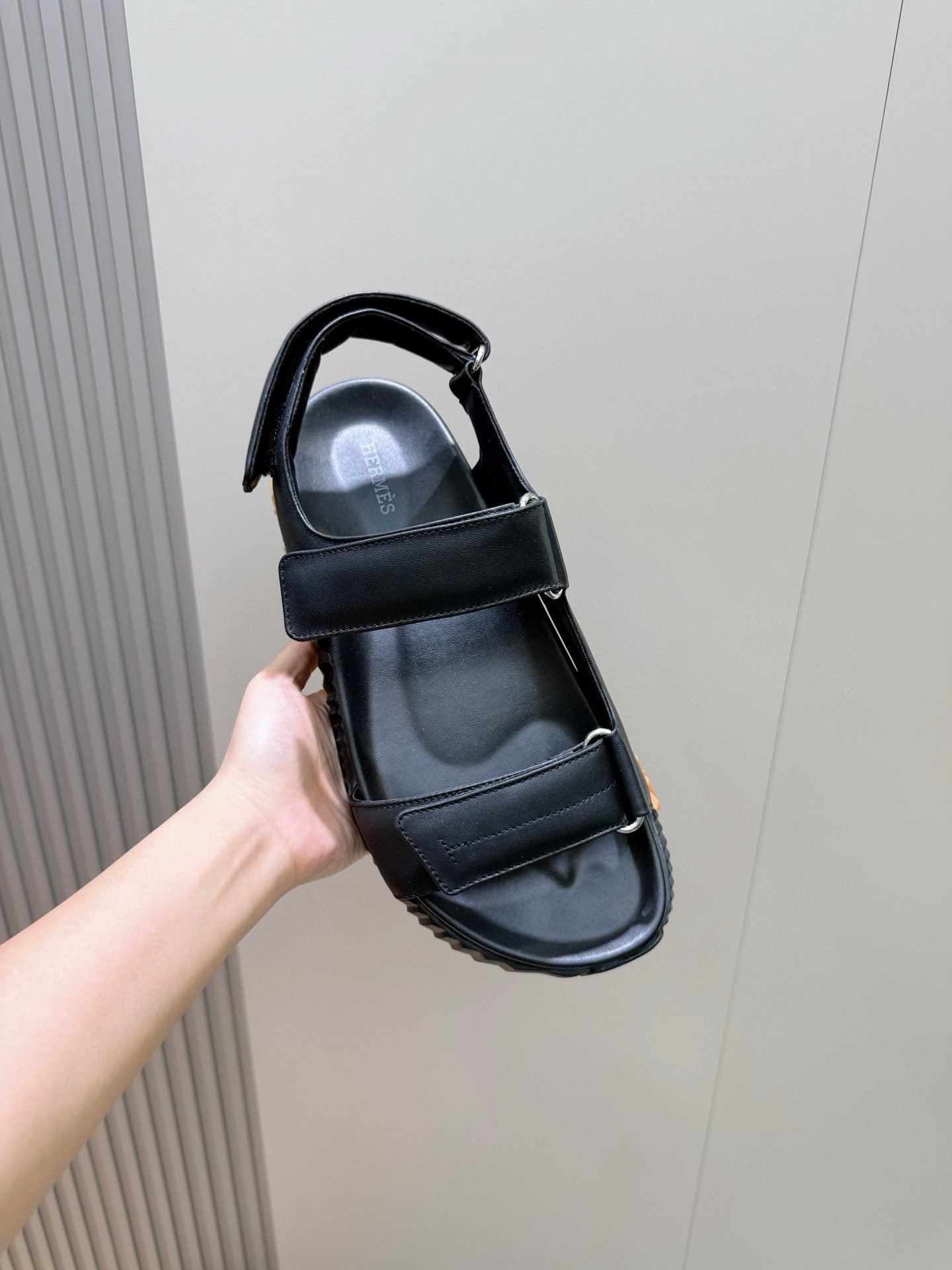 HM Men's Junior Sandal Black Orange Calfskin 643235