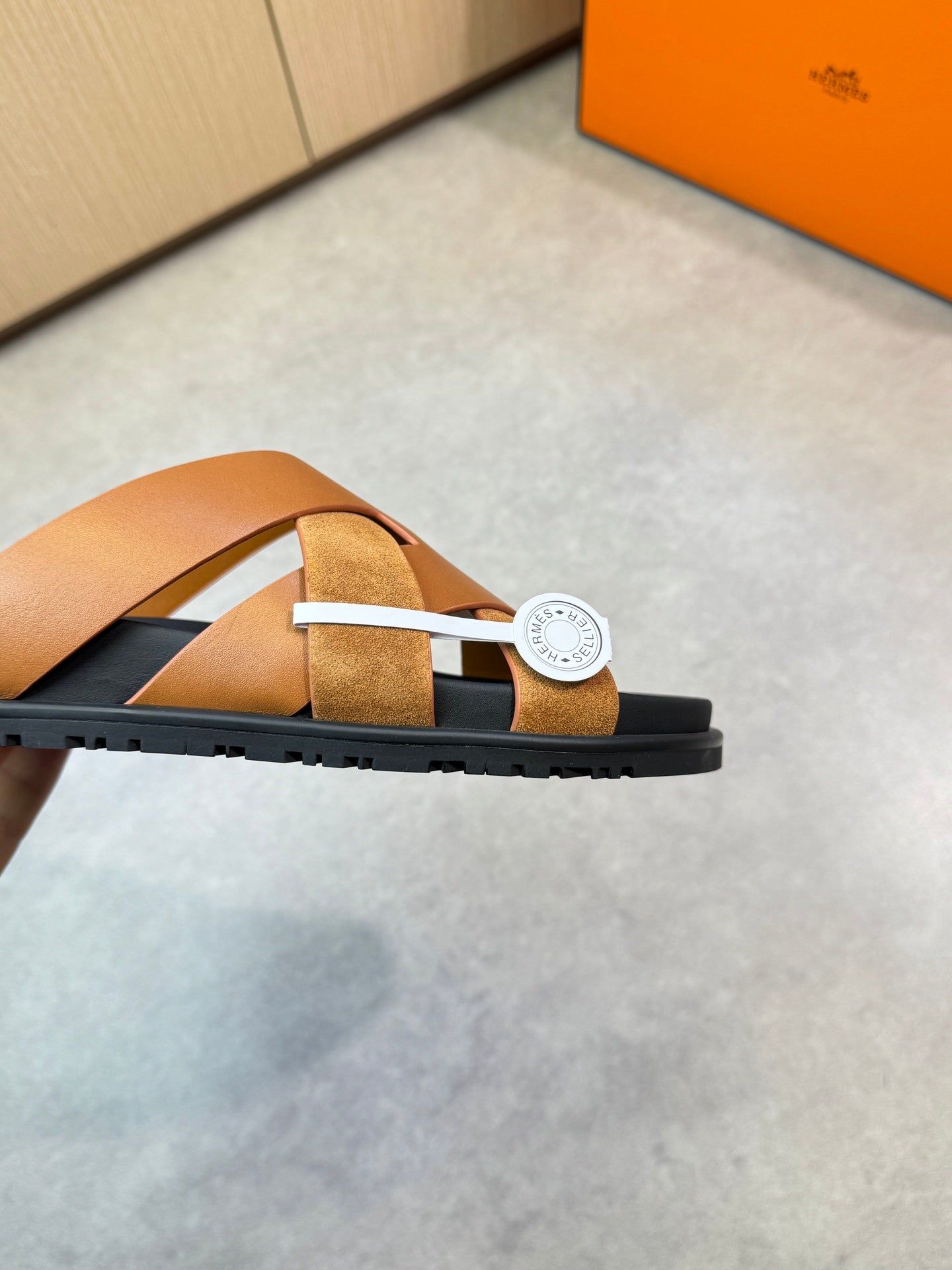 HM Men's Kazimir Slide Brown Calfskin Suede 603170