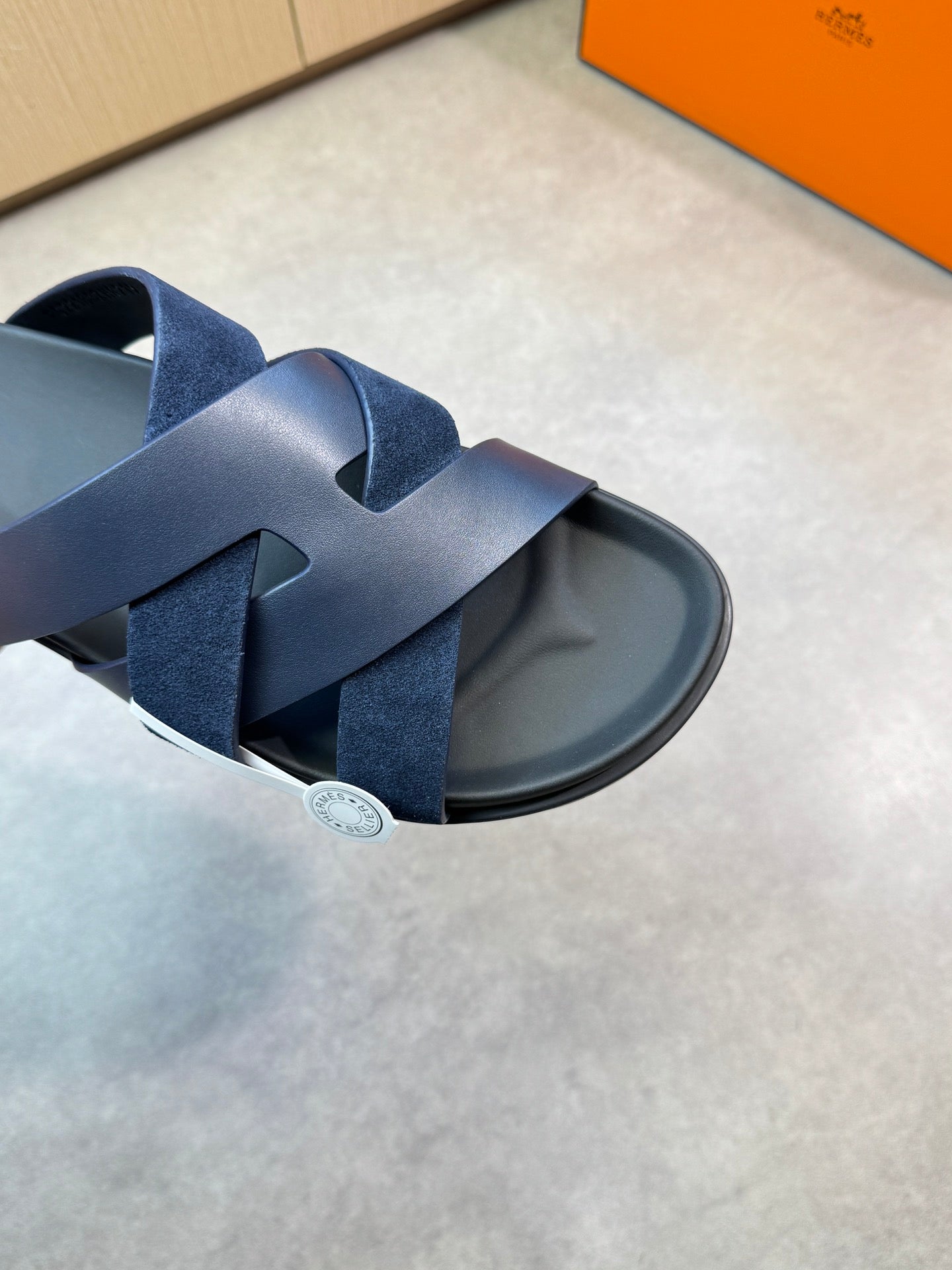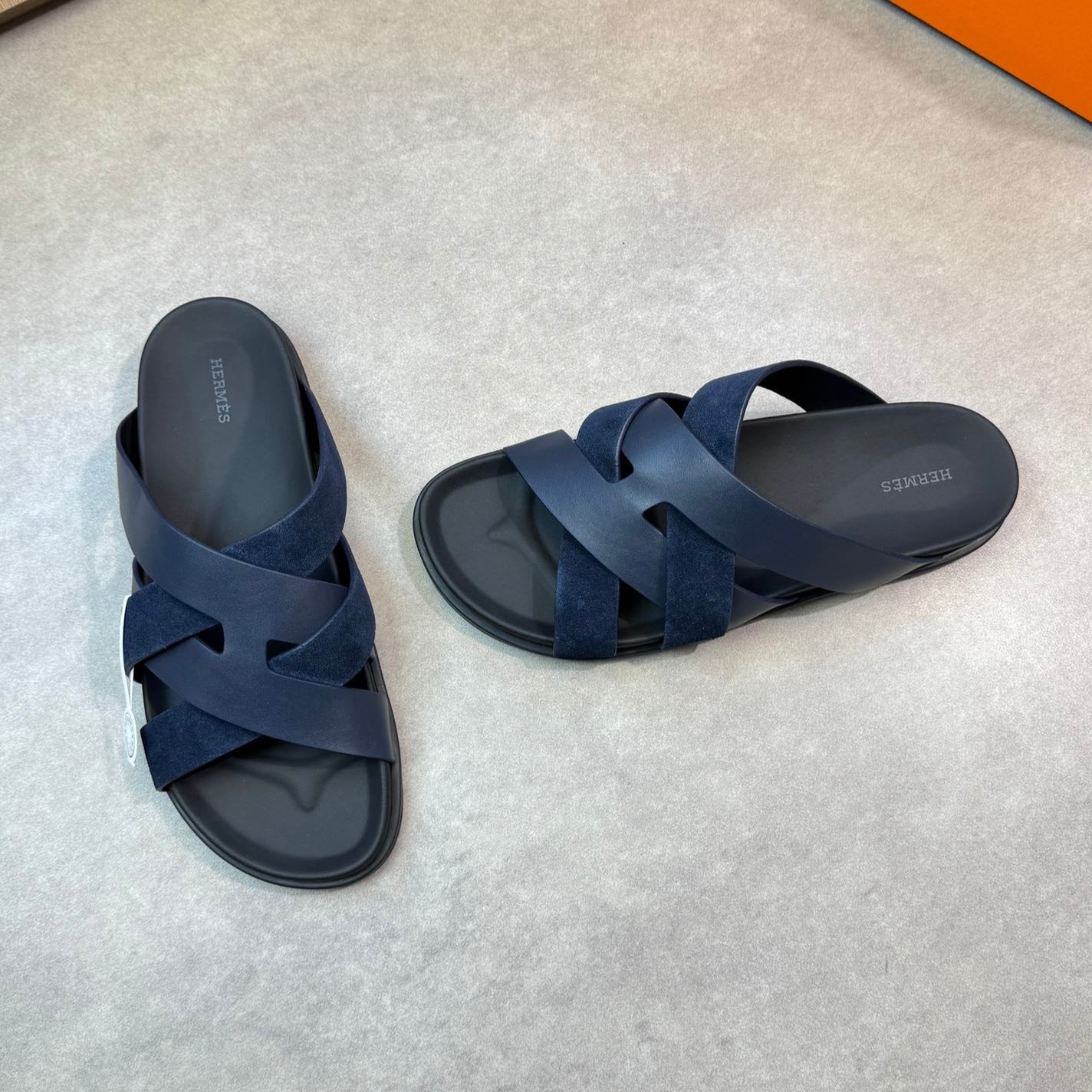 HM Men's Kazimir Slide Navy Blue Calfskin Suede 603171
