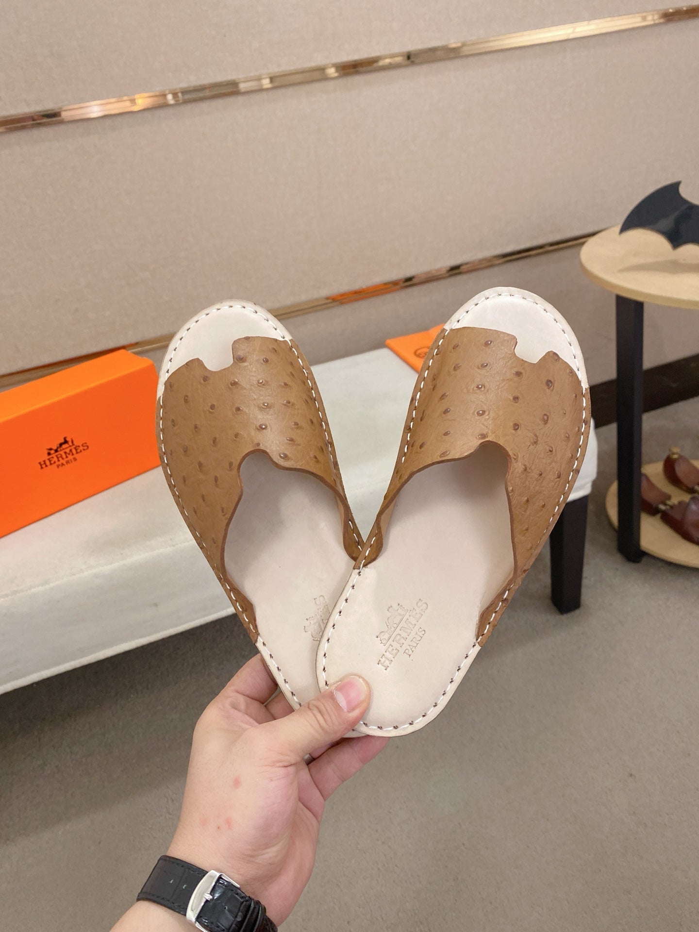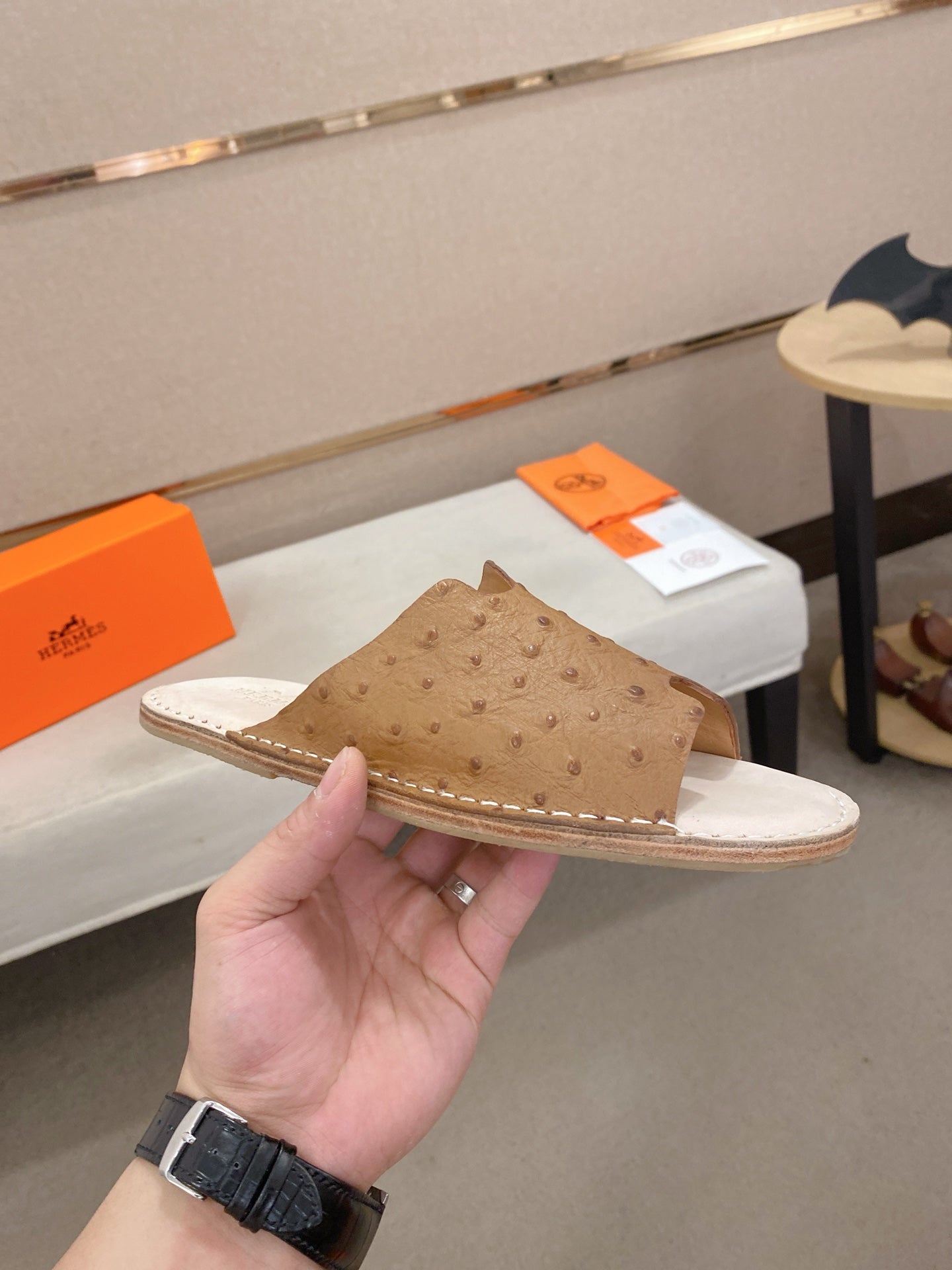 HM Men's Slide Brown Cowhide 645106