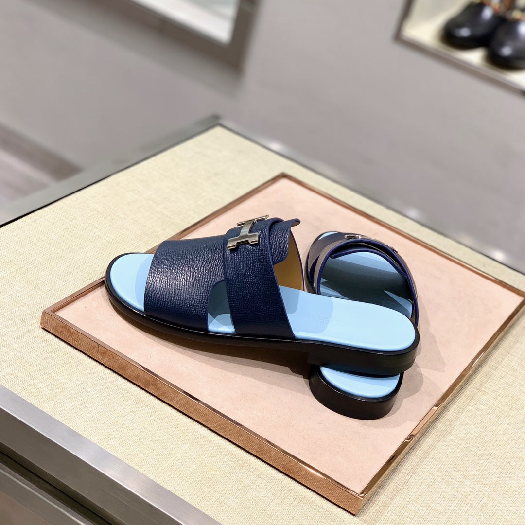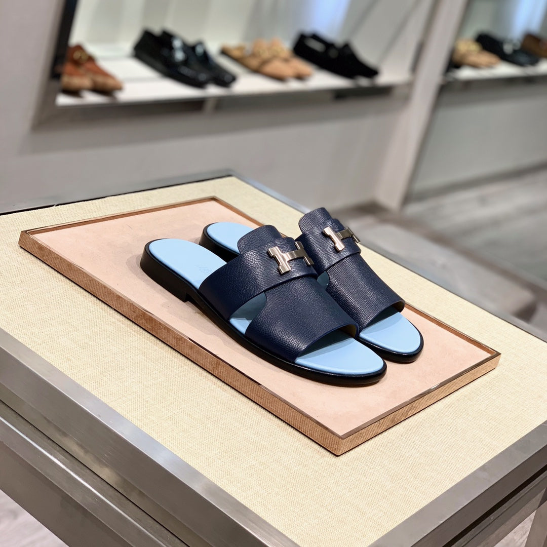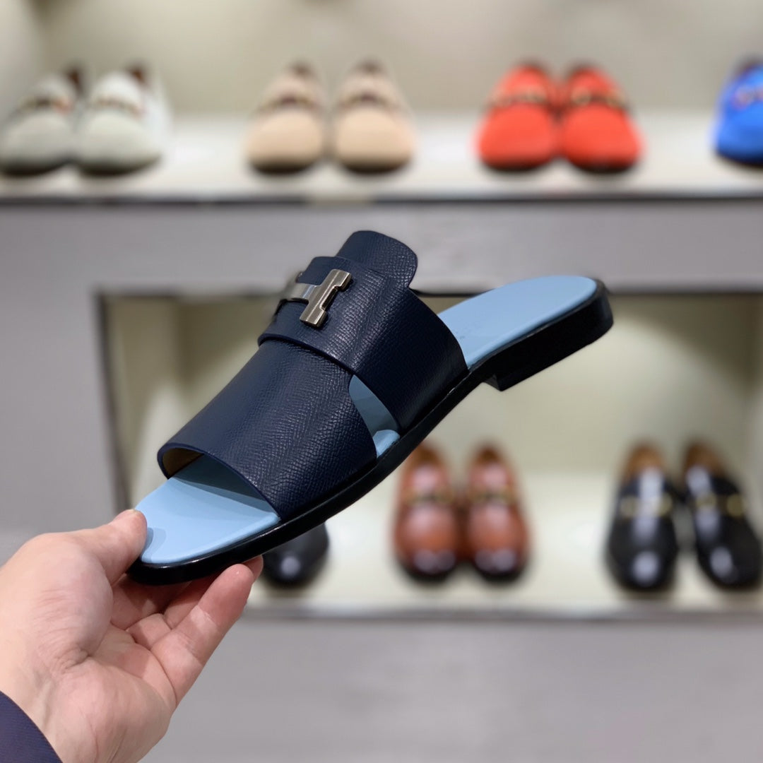 HM Men's Slide Navy Blue Cowhide 567150