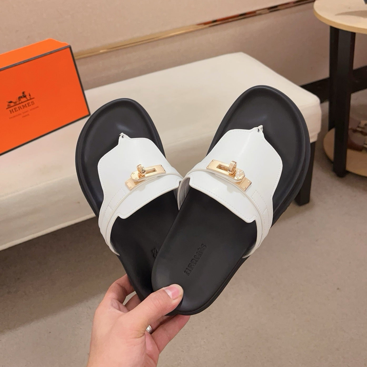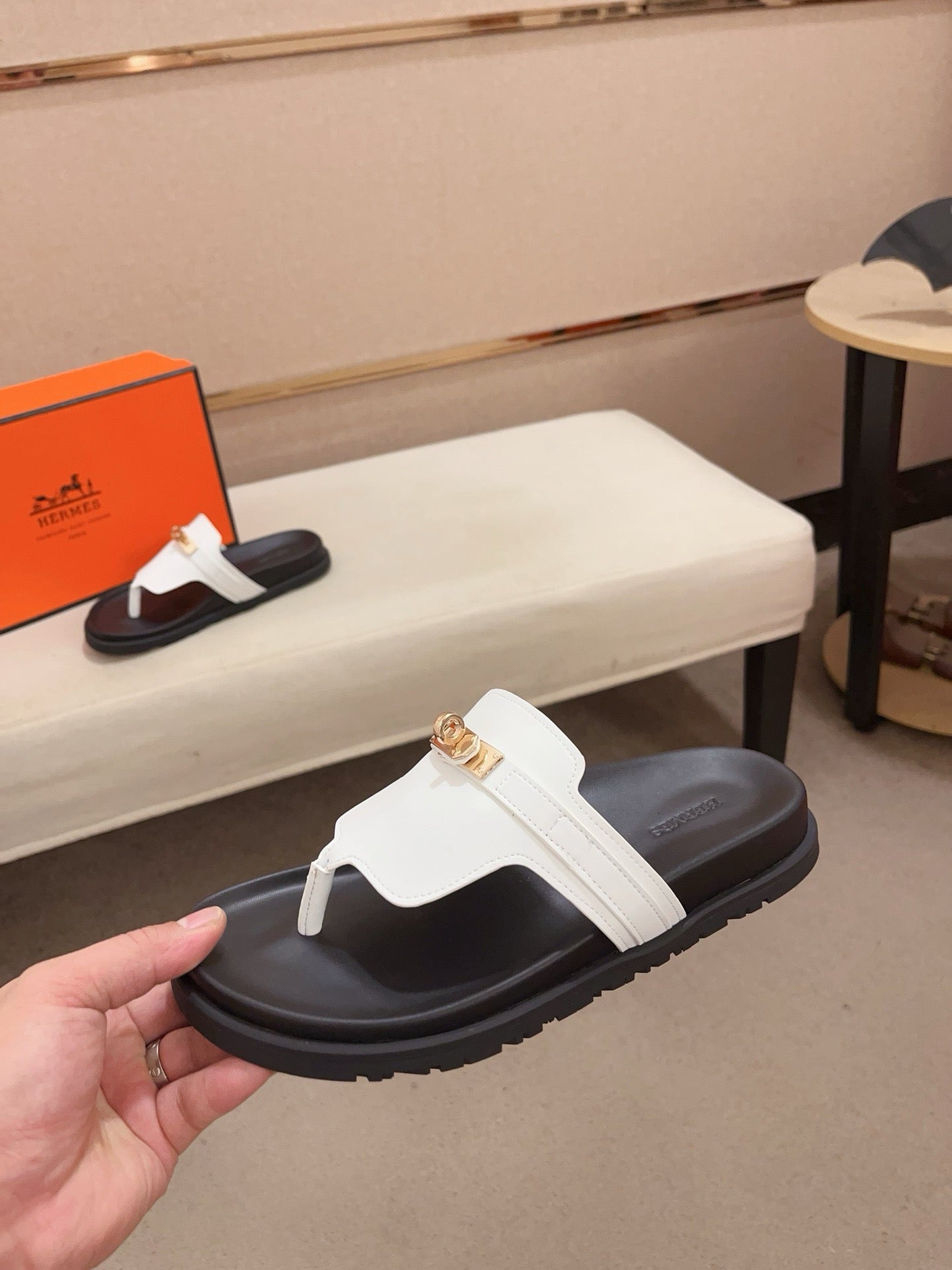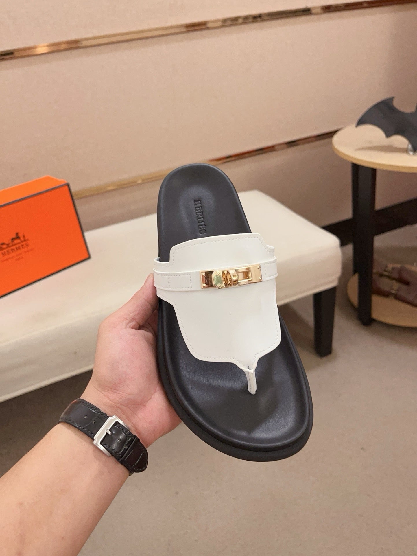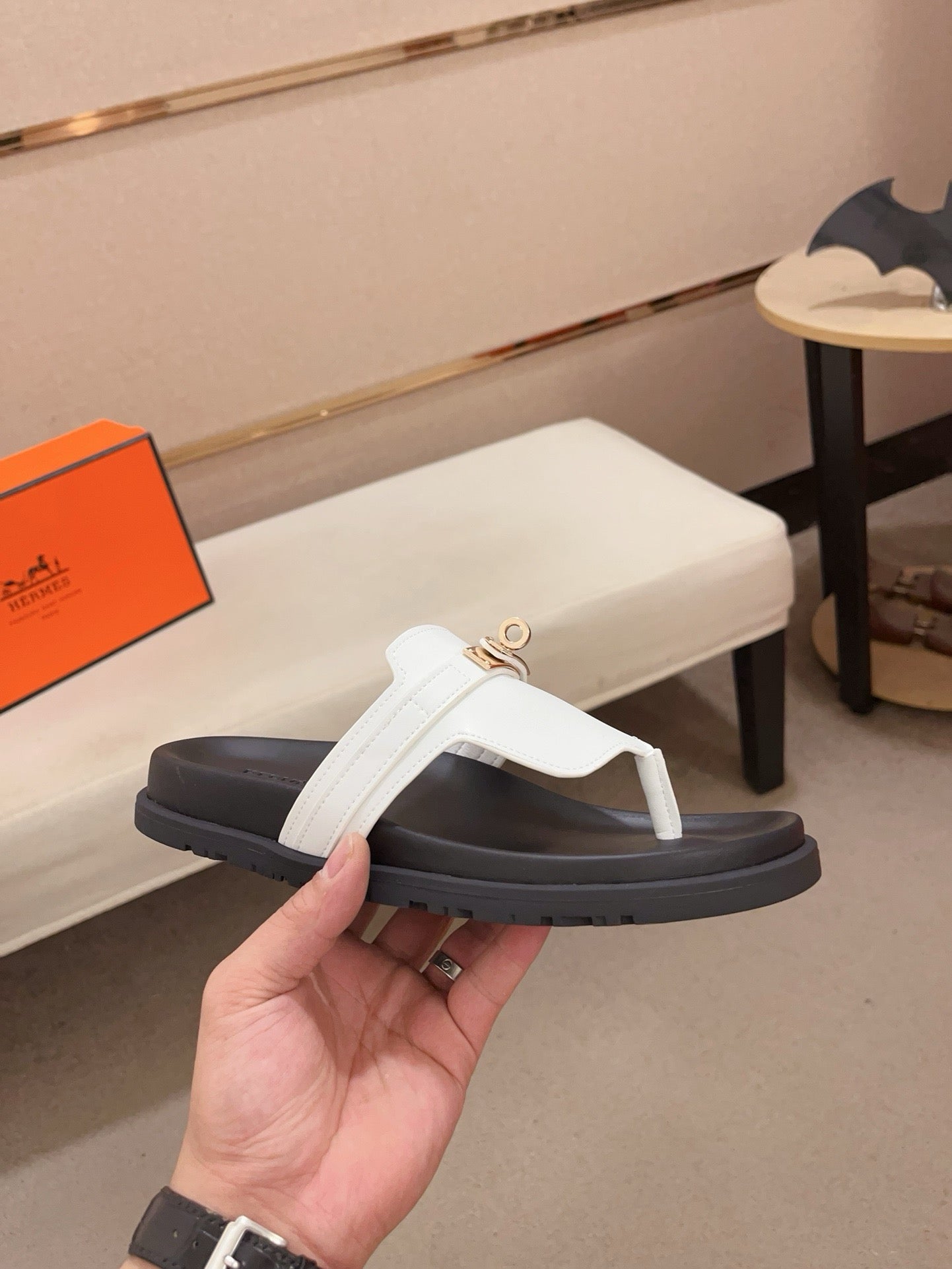 HM Men's Thong Sandals White Cowhide 564395