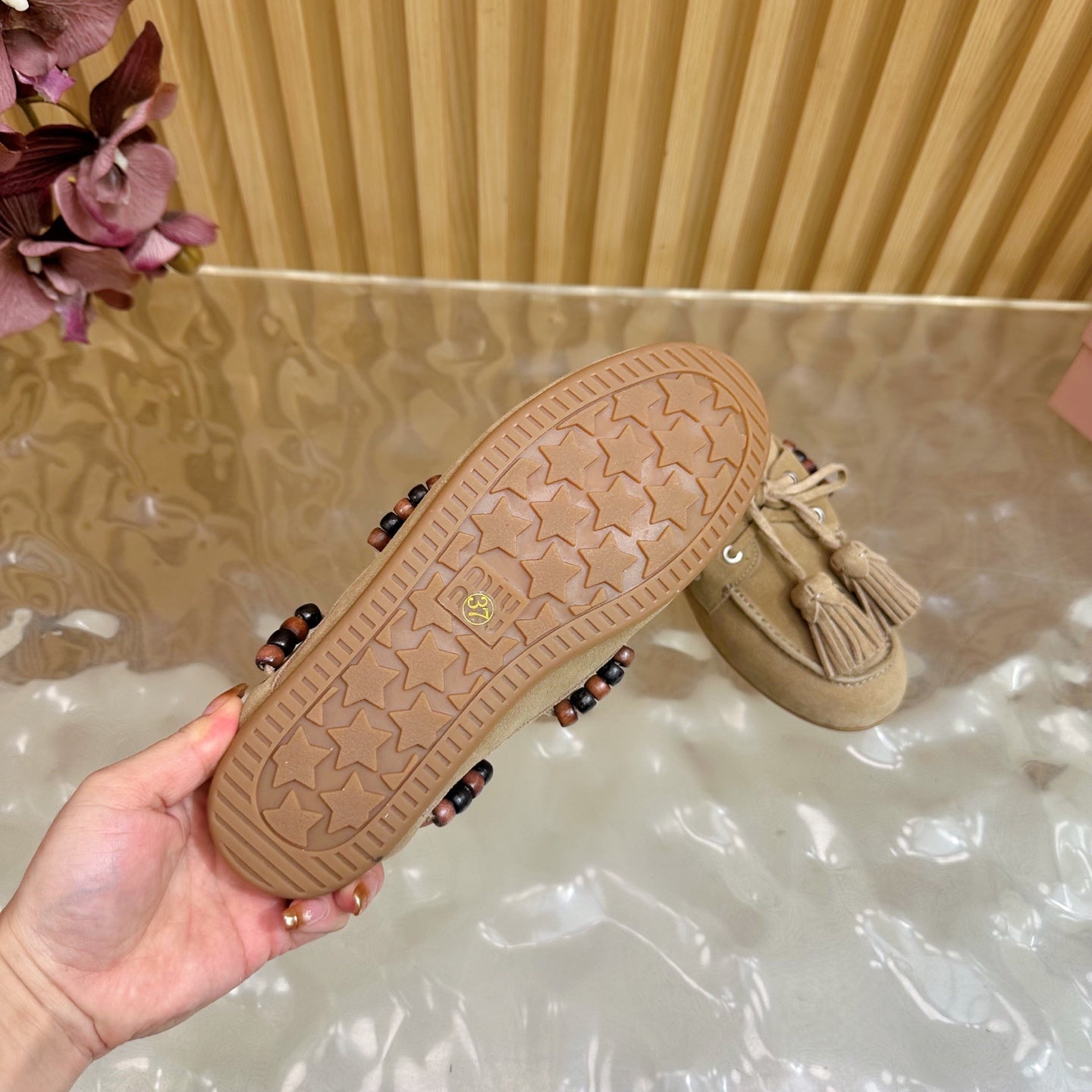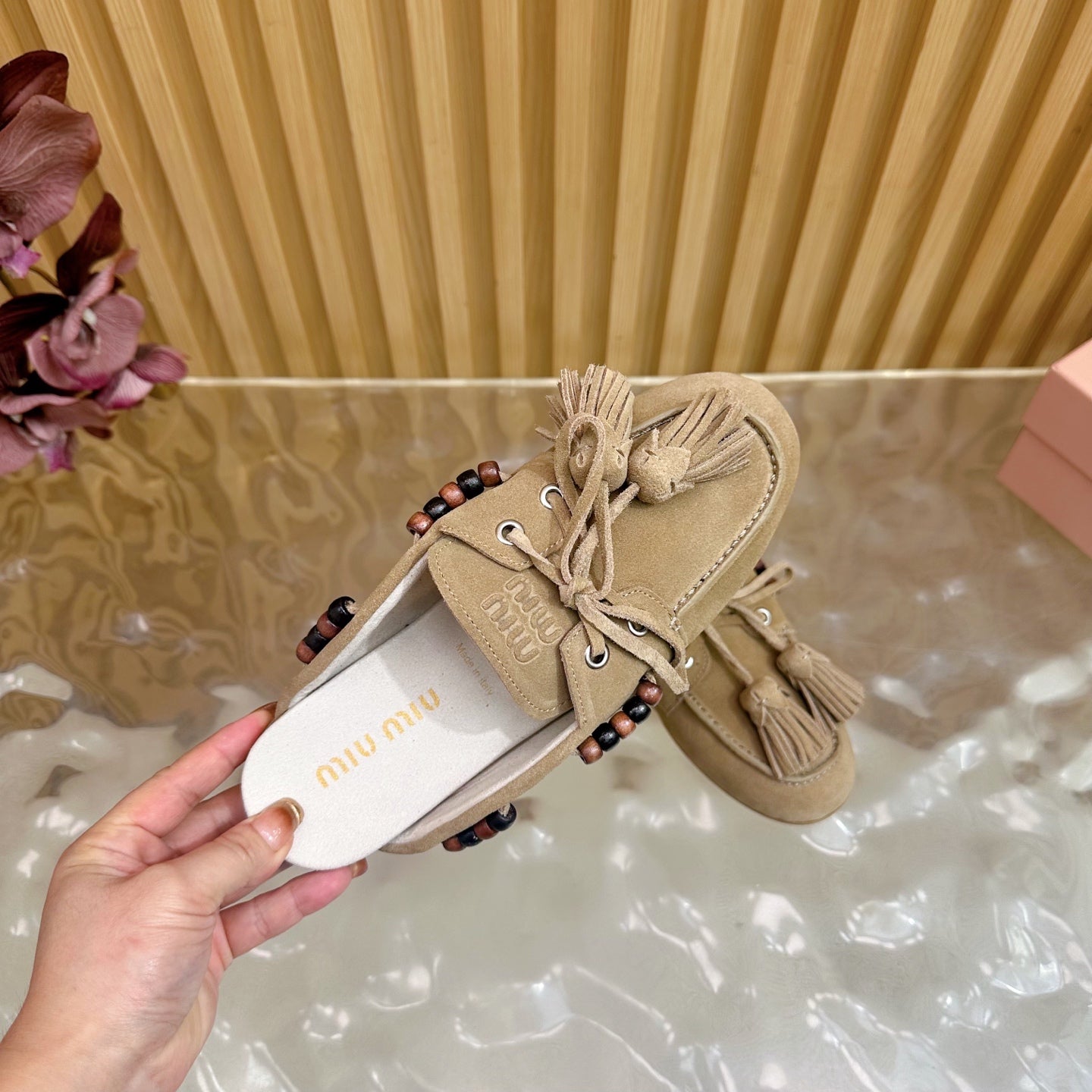 Miu Laces Eyelet Flat Half Slipper Beige Suede 498161