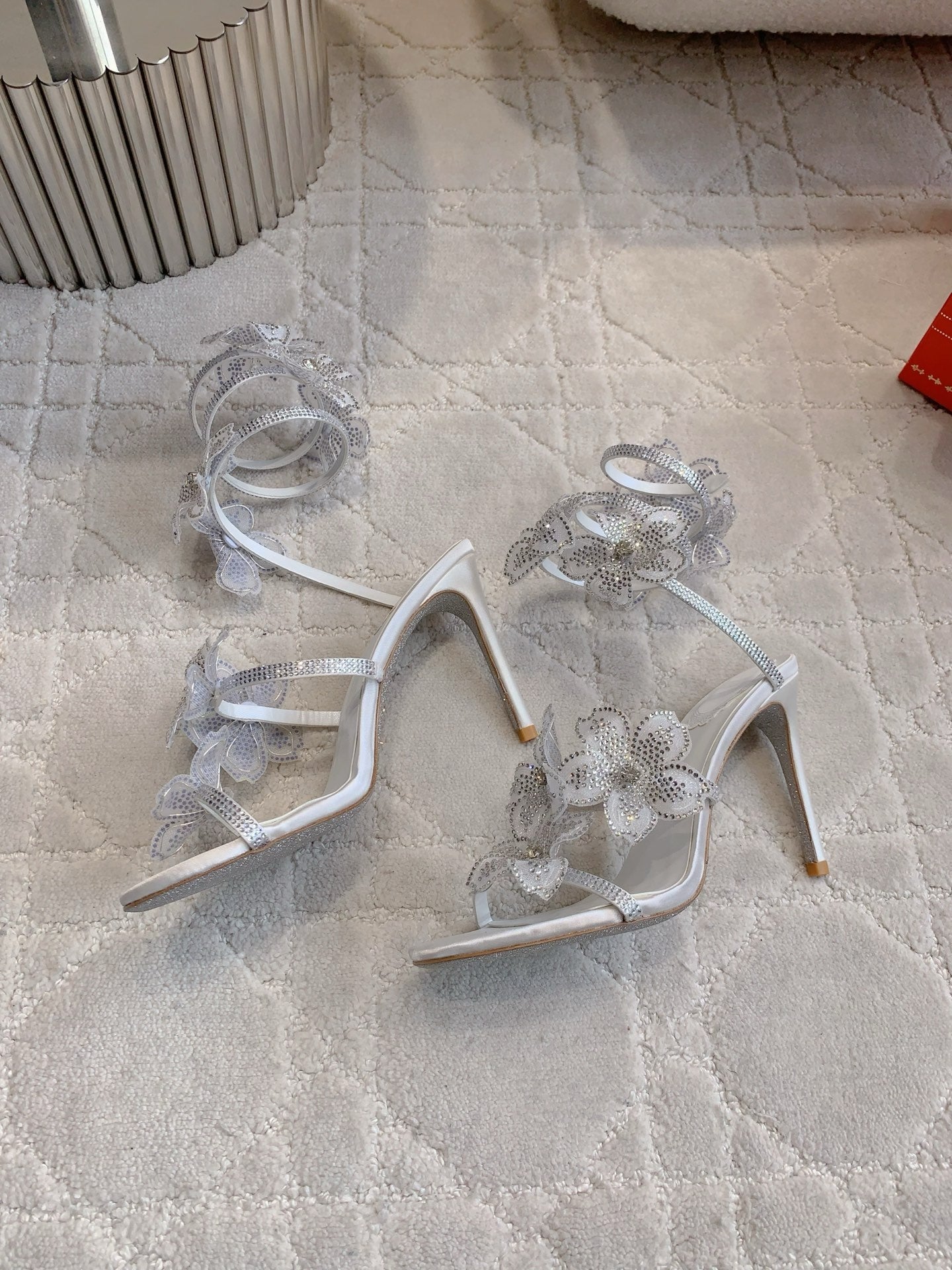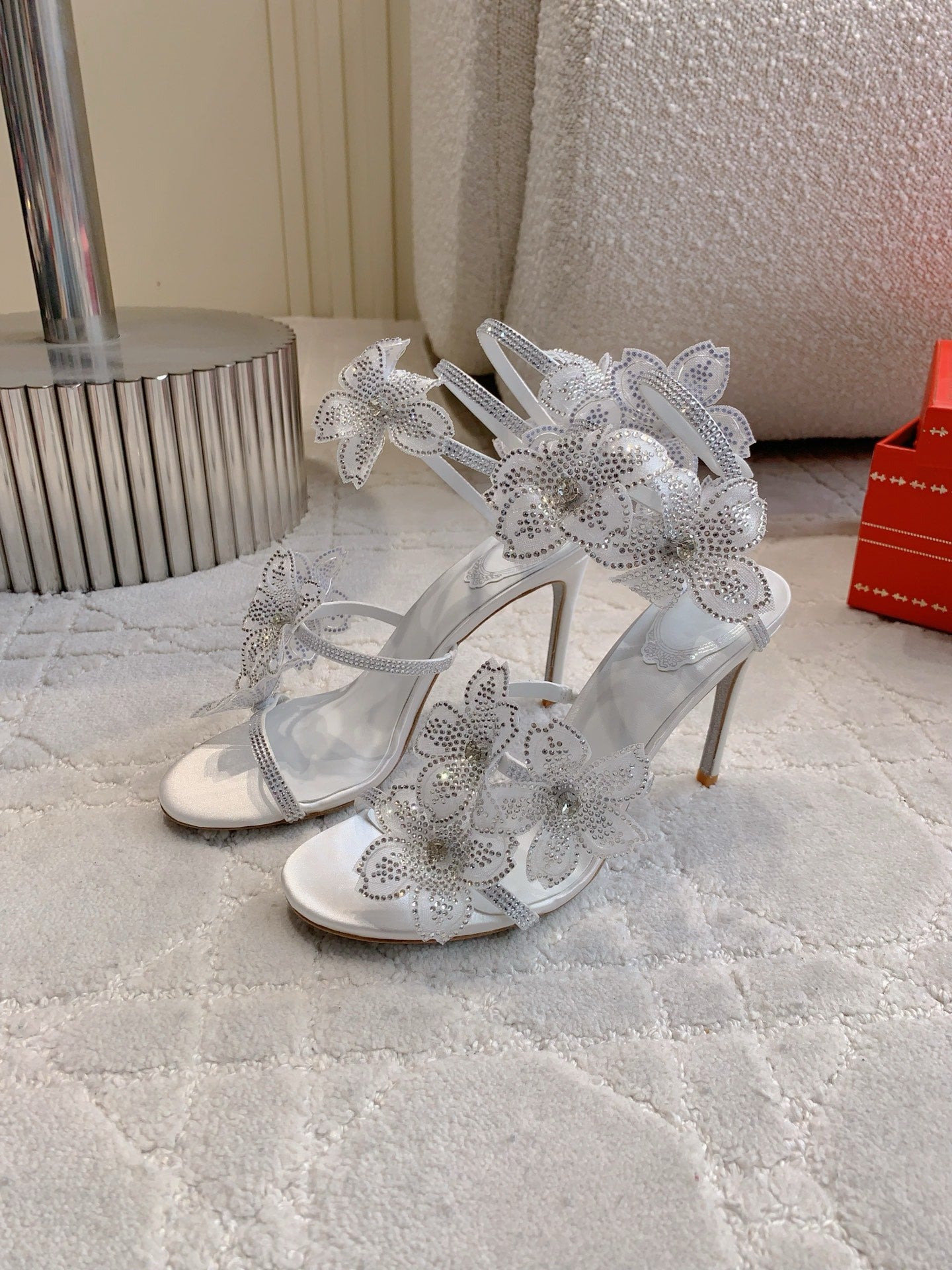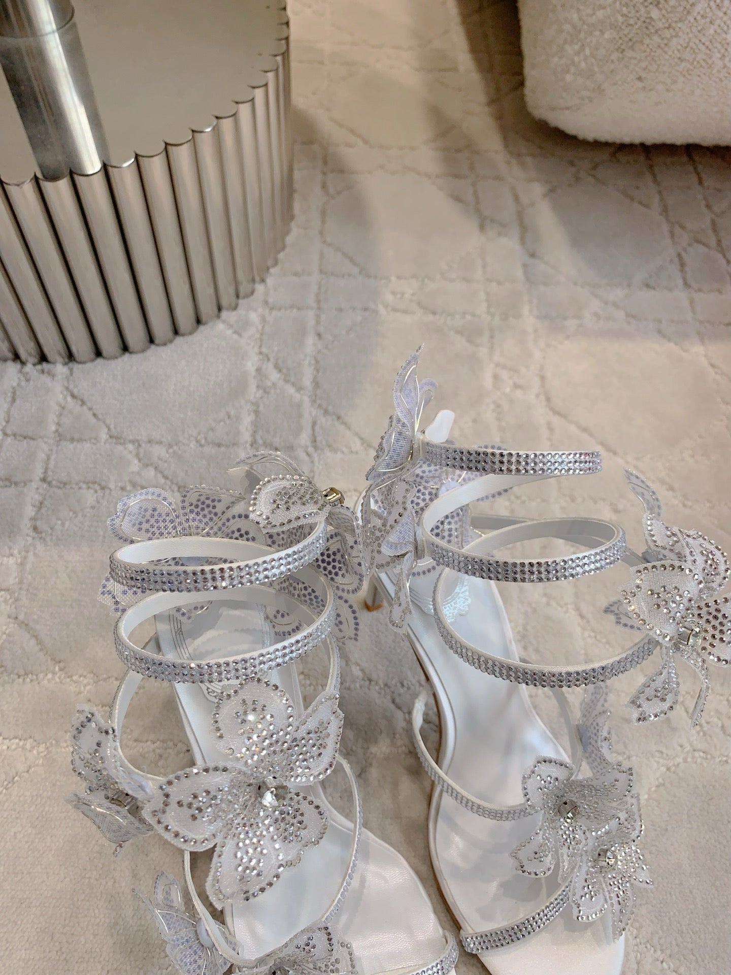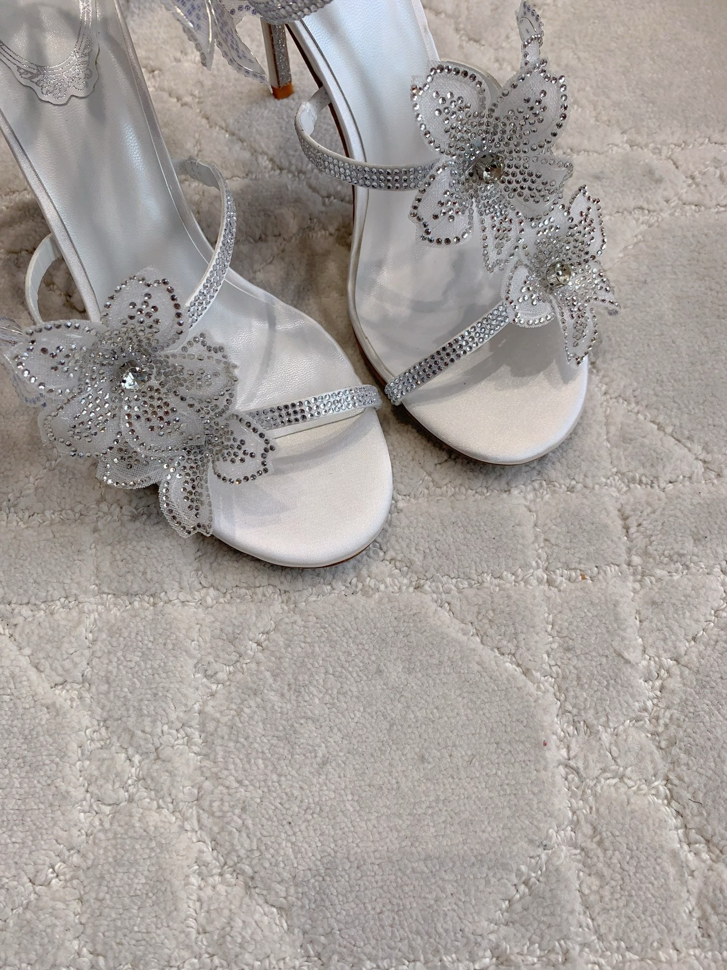 RC Flower Sandals Silver Sheepskin Rhinestones 328468