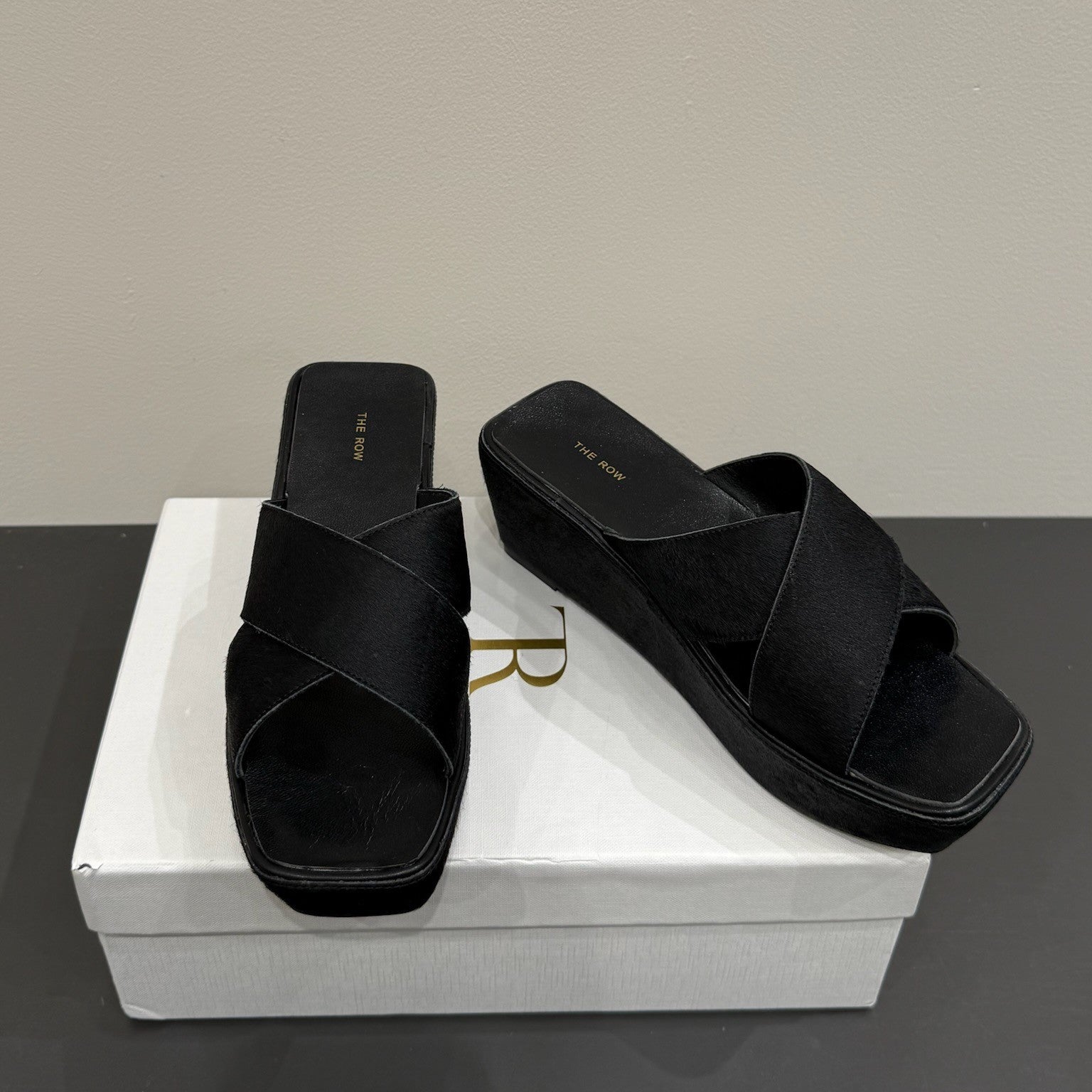 The Row Thick-soled Cross-strap Sandals 6cm Black Horsehair 337448
