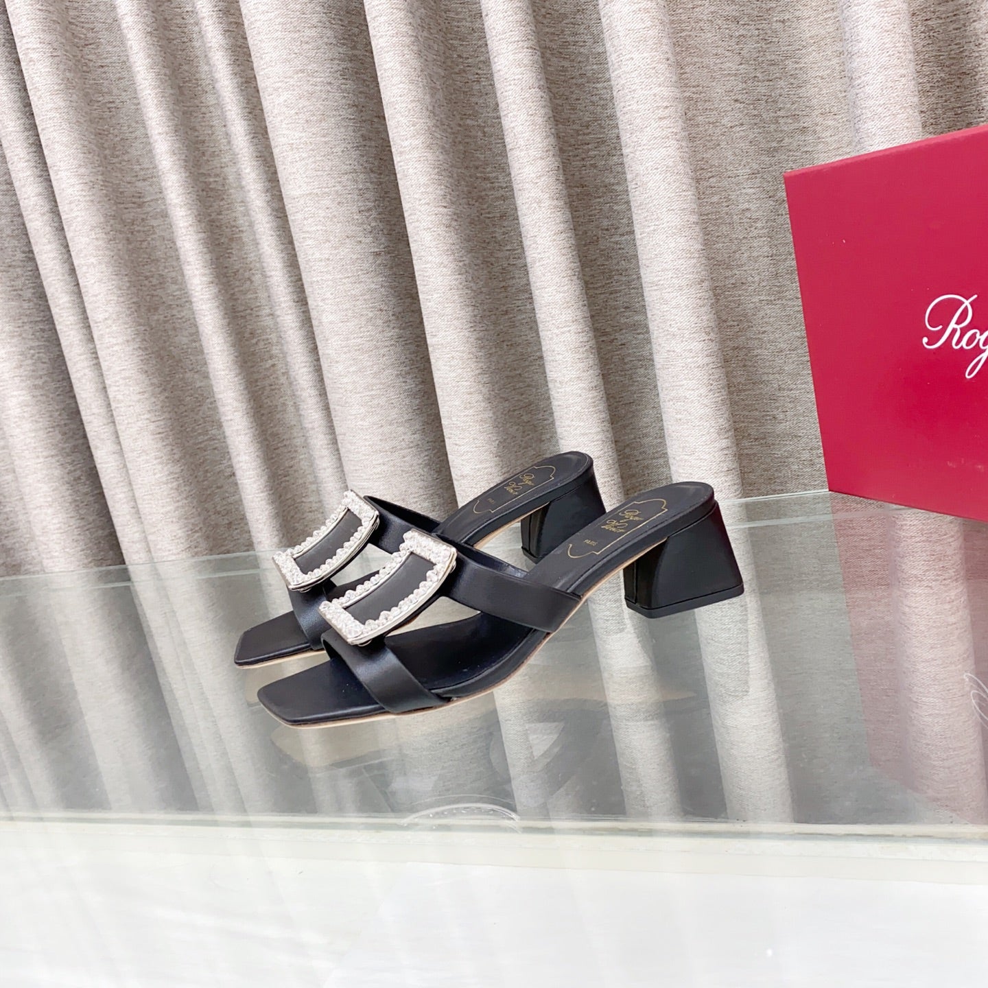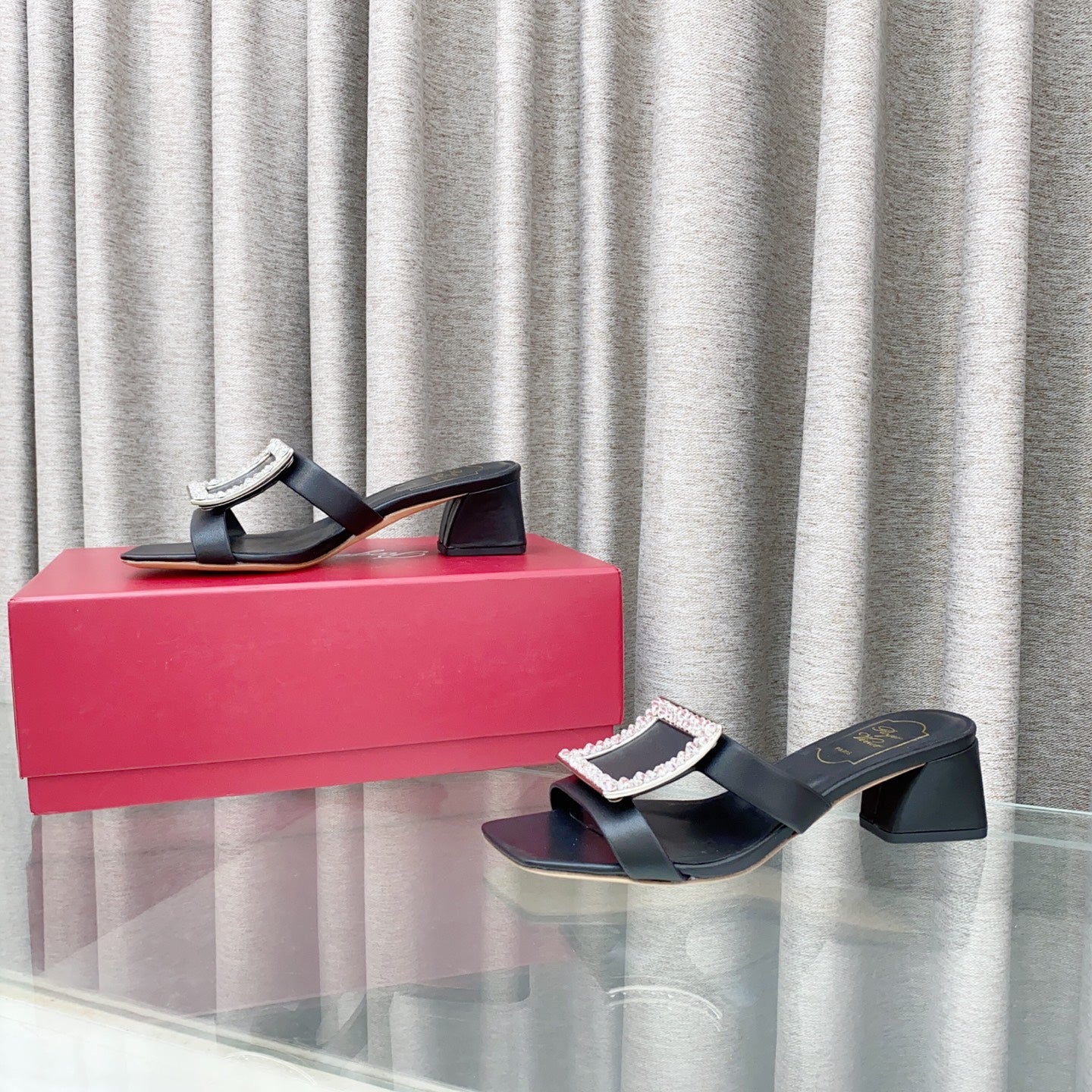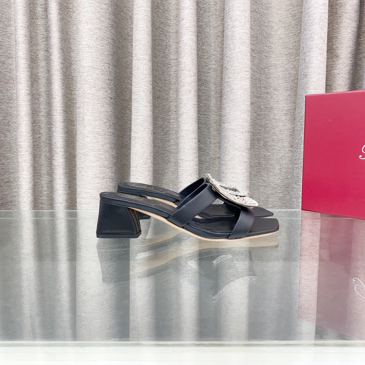 Viv 25 Diamond Mid Heel Slides Black Cowhide 283042