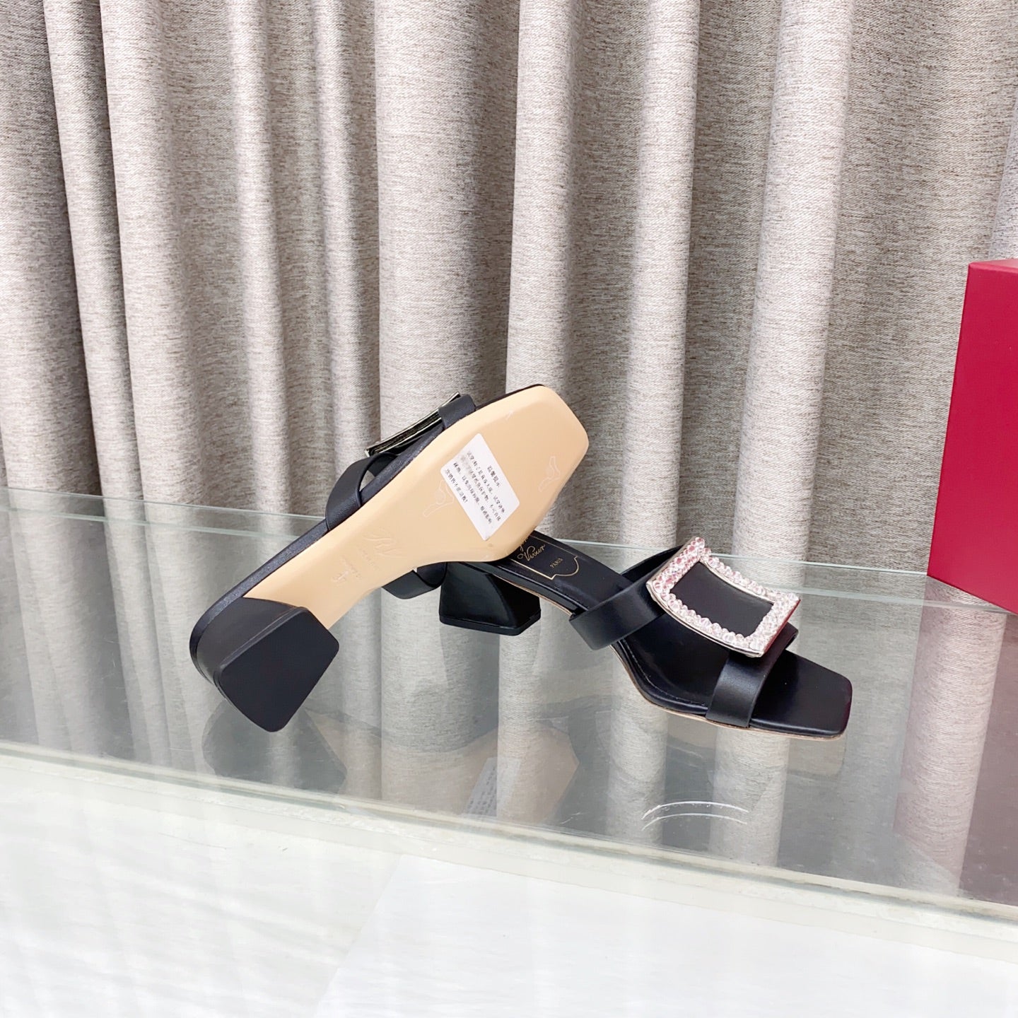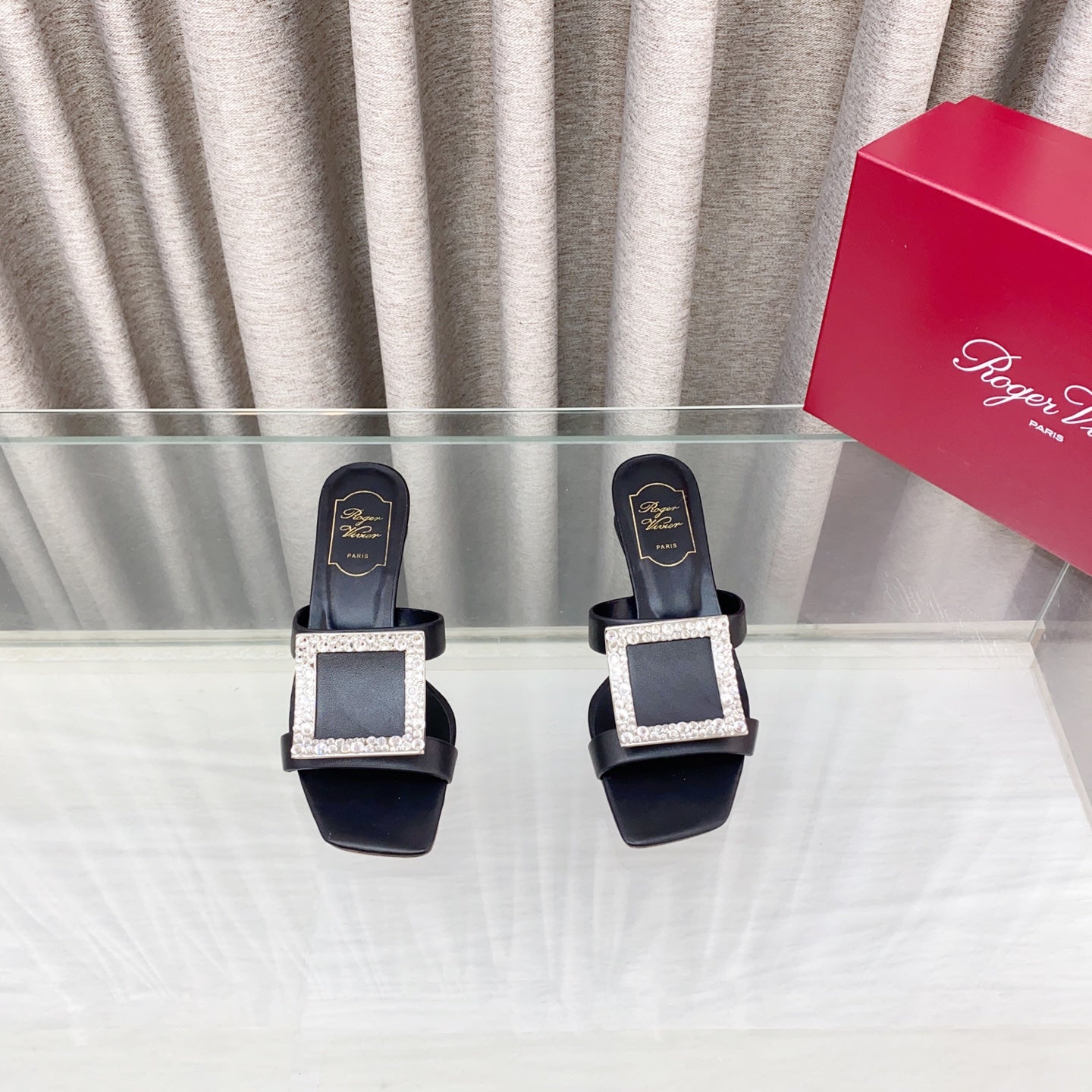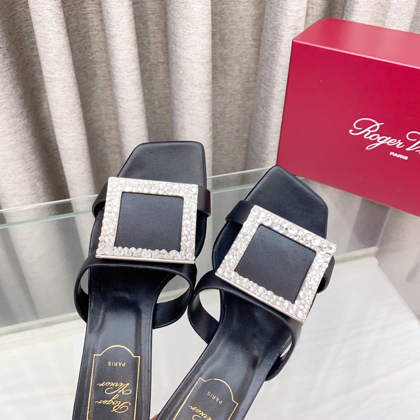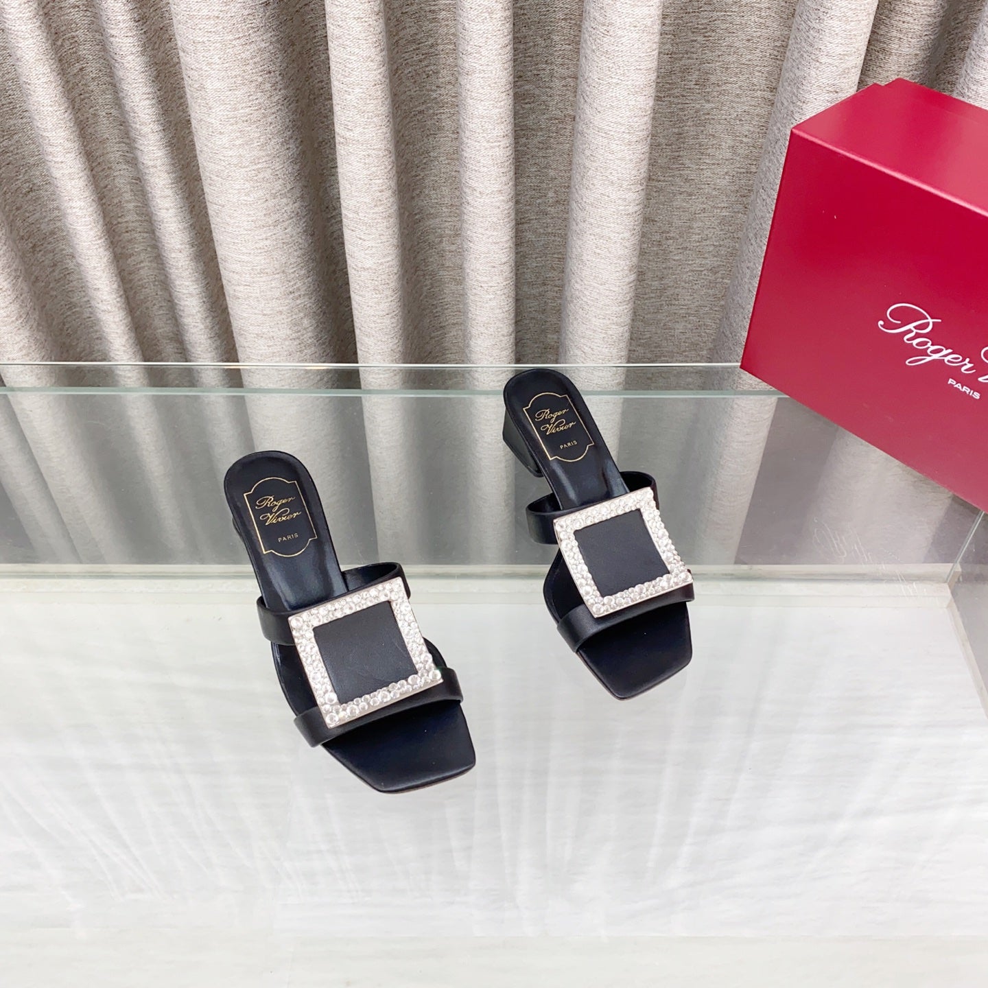 Viv 25 Diamond Mid Heel Slides Black Cowhide 283042