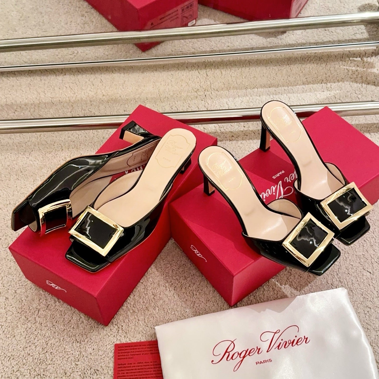 Viv Retro Modern Mules Black Cowhide Leather 261715