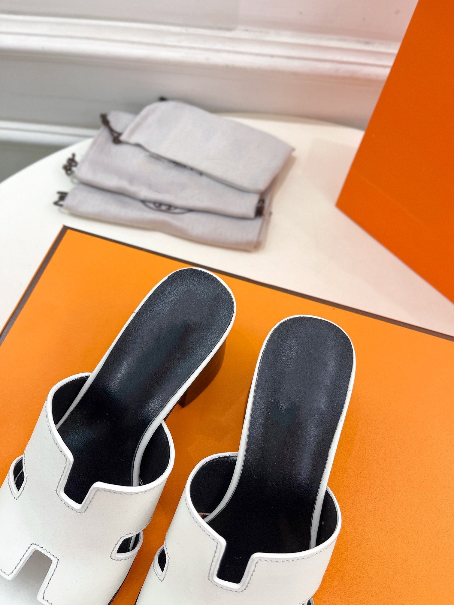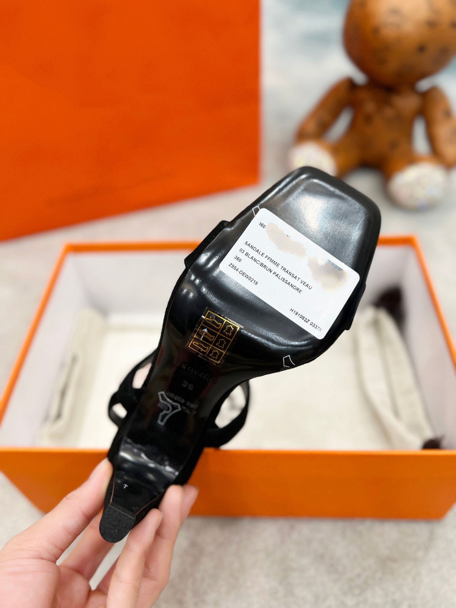 0ran sandal black white epsom