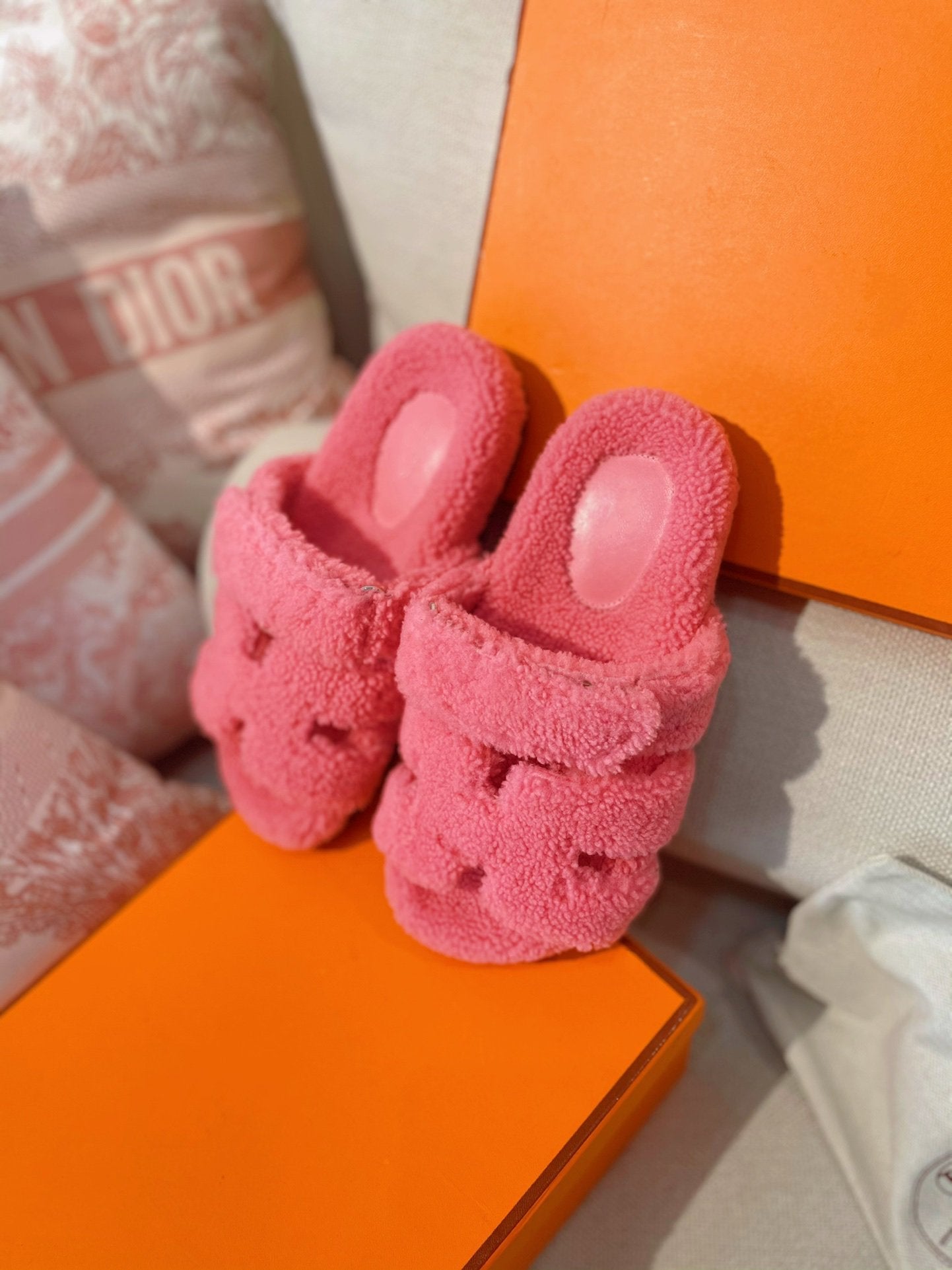 chypre sandal orange lamb wool