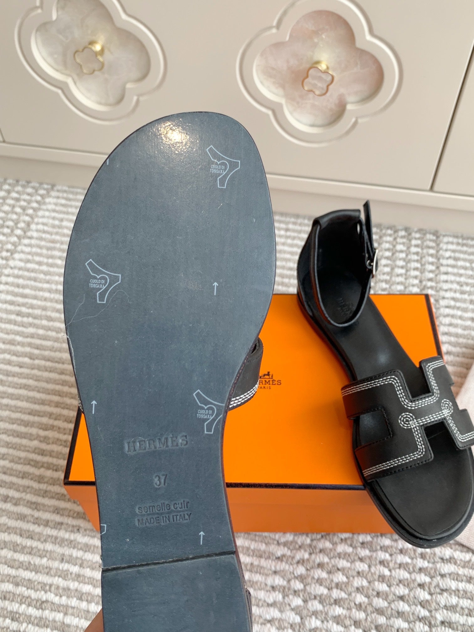 HM Izmir Sandals Gray Black Calfskin 294940