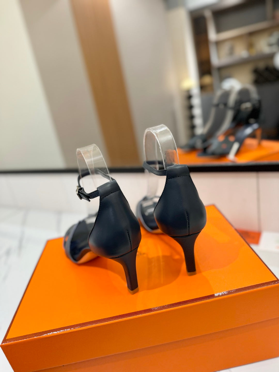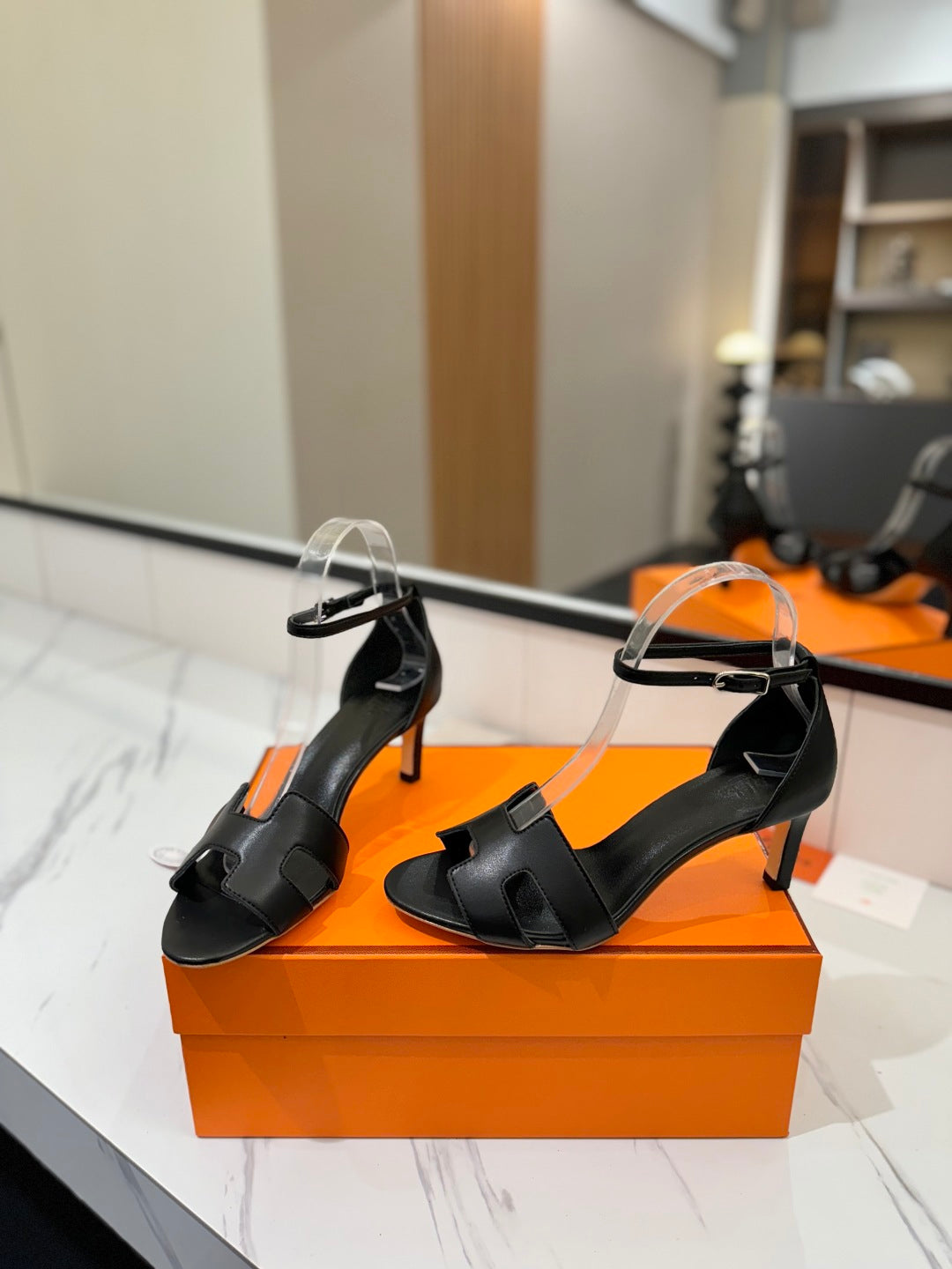 HM Joy 65mm Heeled Sandals Black Flat Cowhide 294926