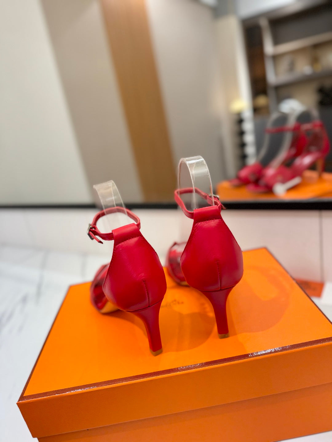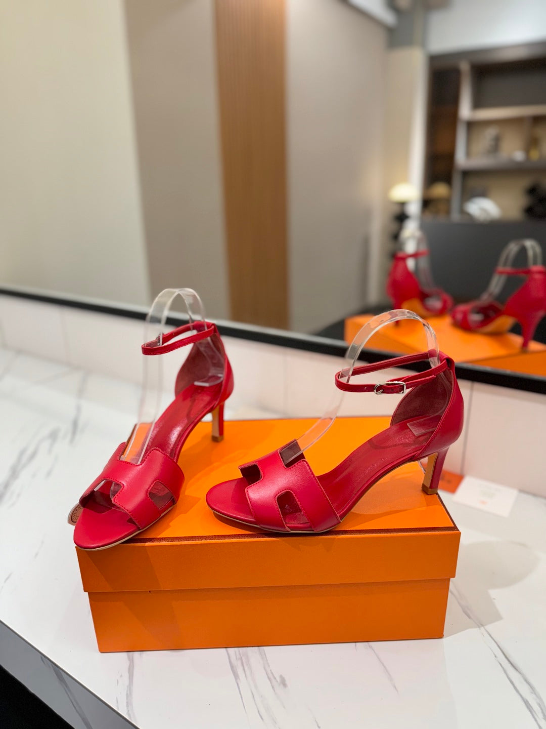 HM Joy 65mm Heeled Sandals Red Flat Cowhide 294928