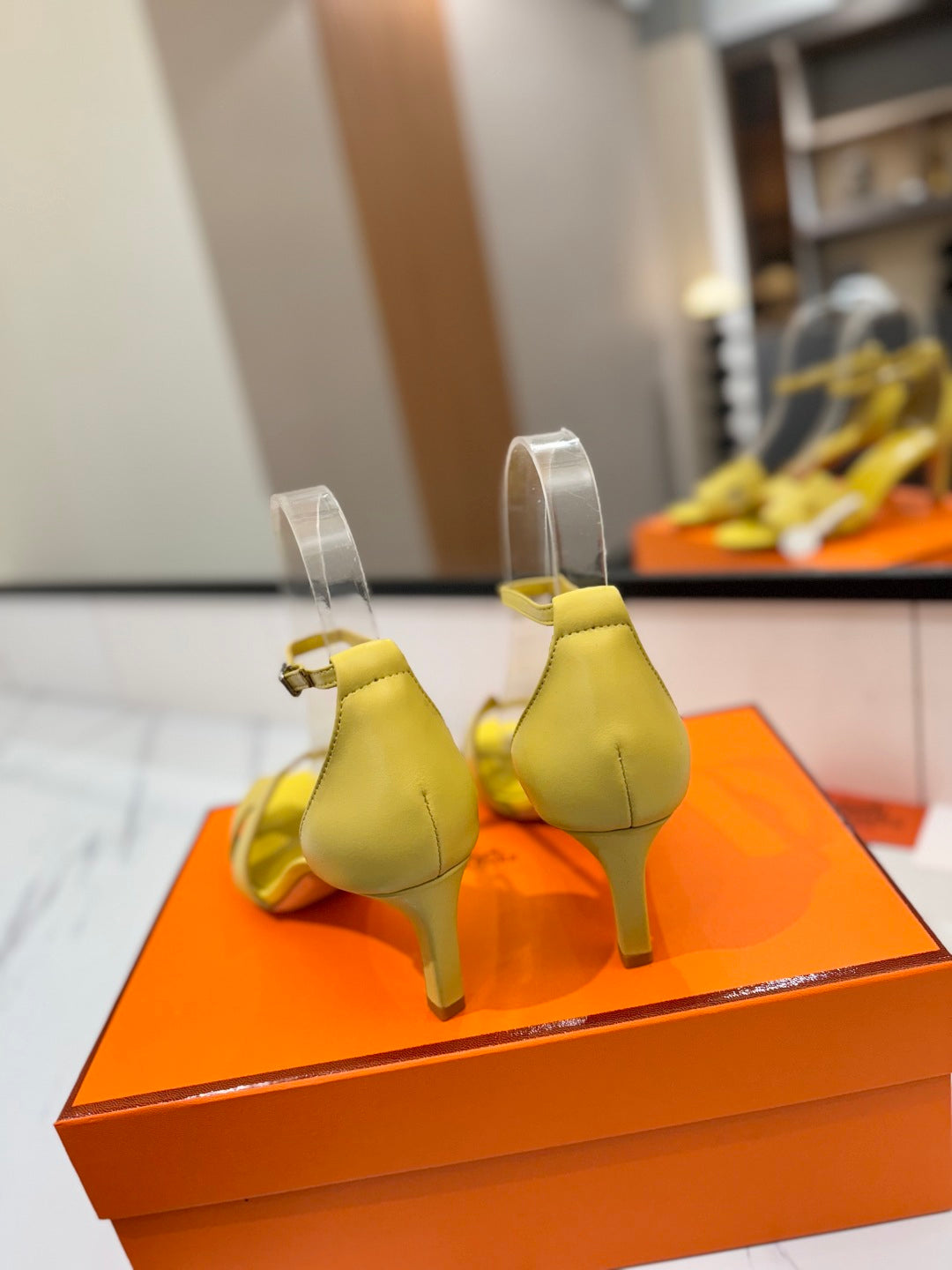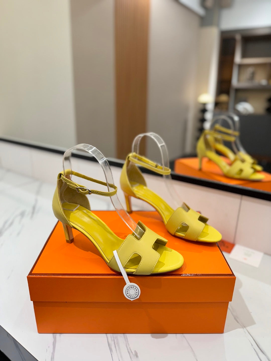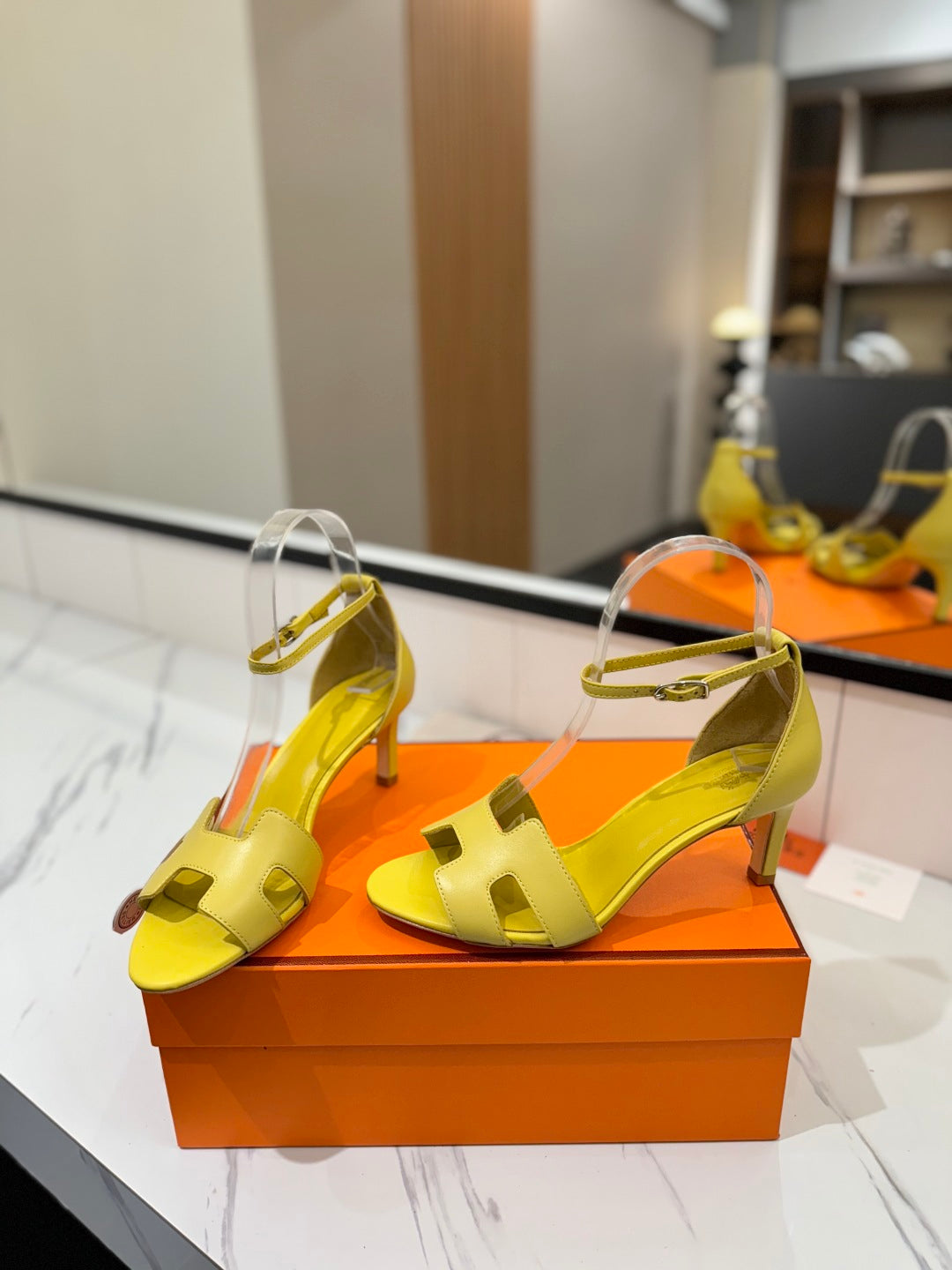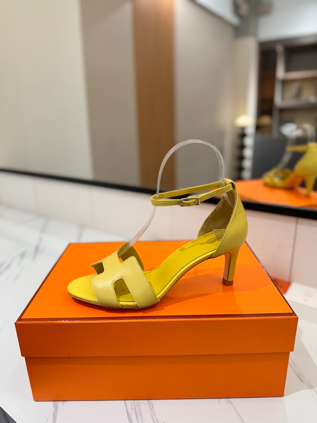 HM Joy 65mm Heeled Sandals Yellow Flat Cowhide 294929