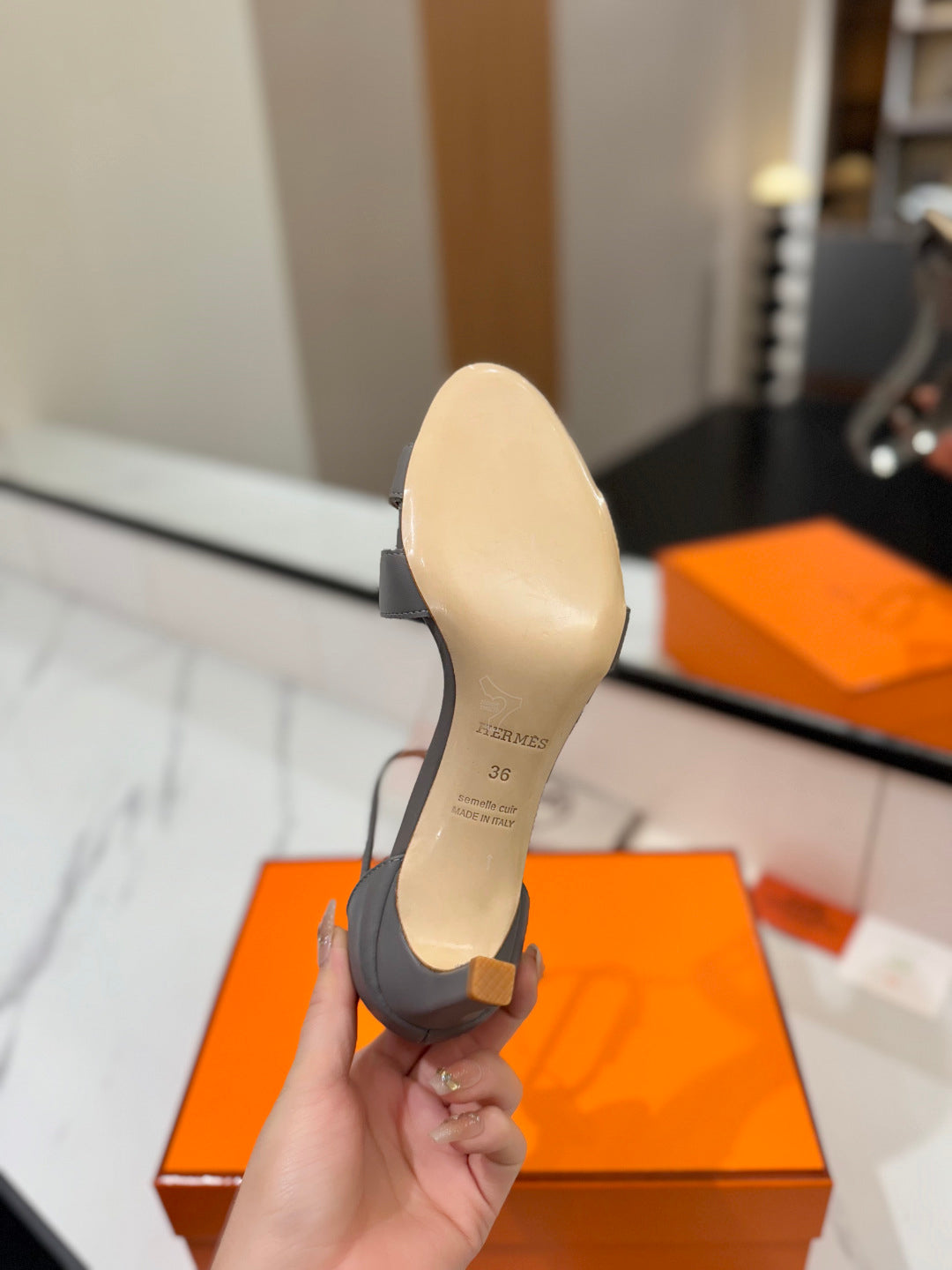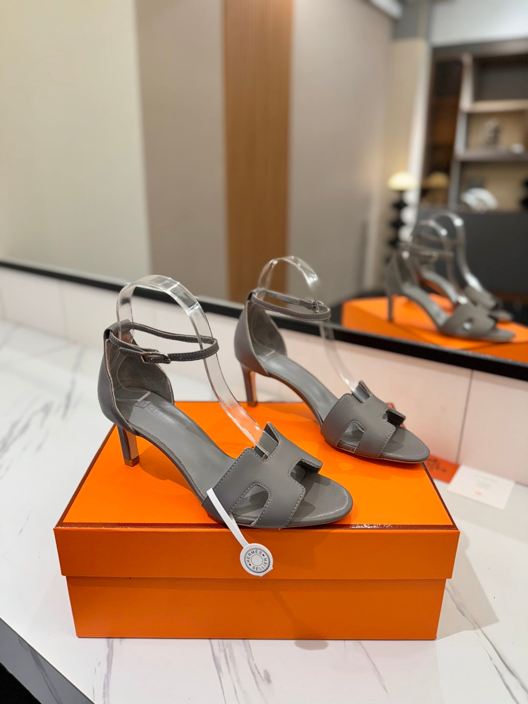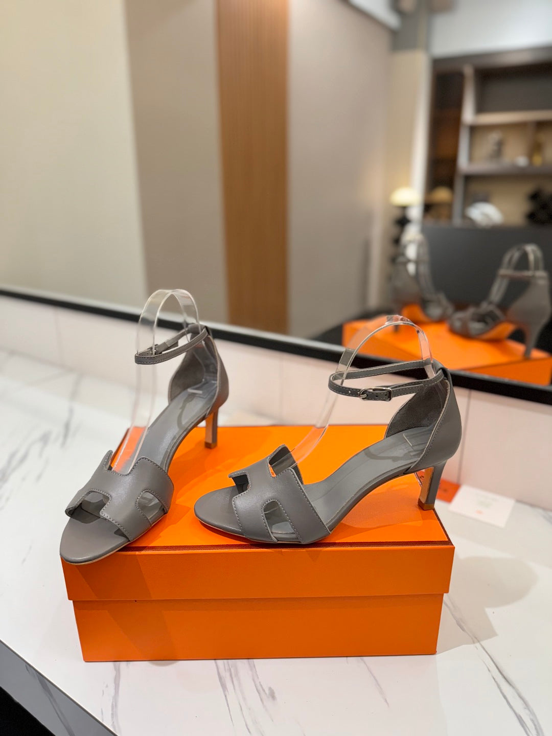 HM Joy 65mm Heeled Sandals Gray Flat Cowhide 294933