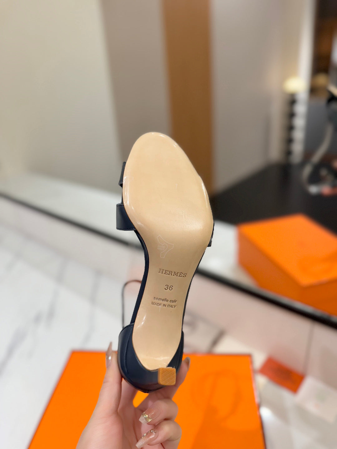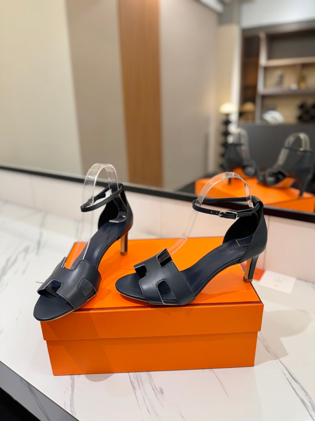 HM Joy 65mm Heeled Sandals Navy Blue Flat Cowhide 294935