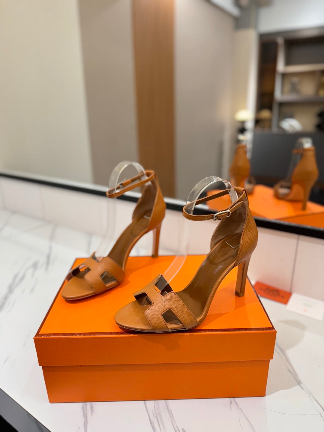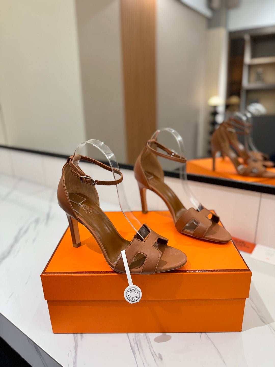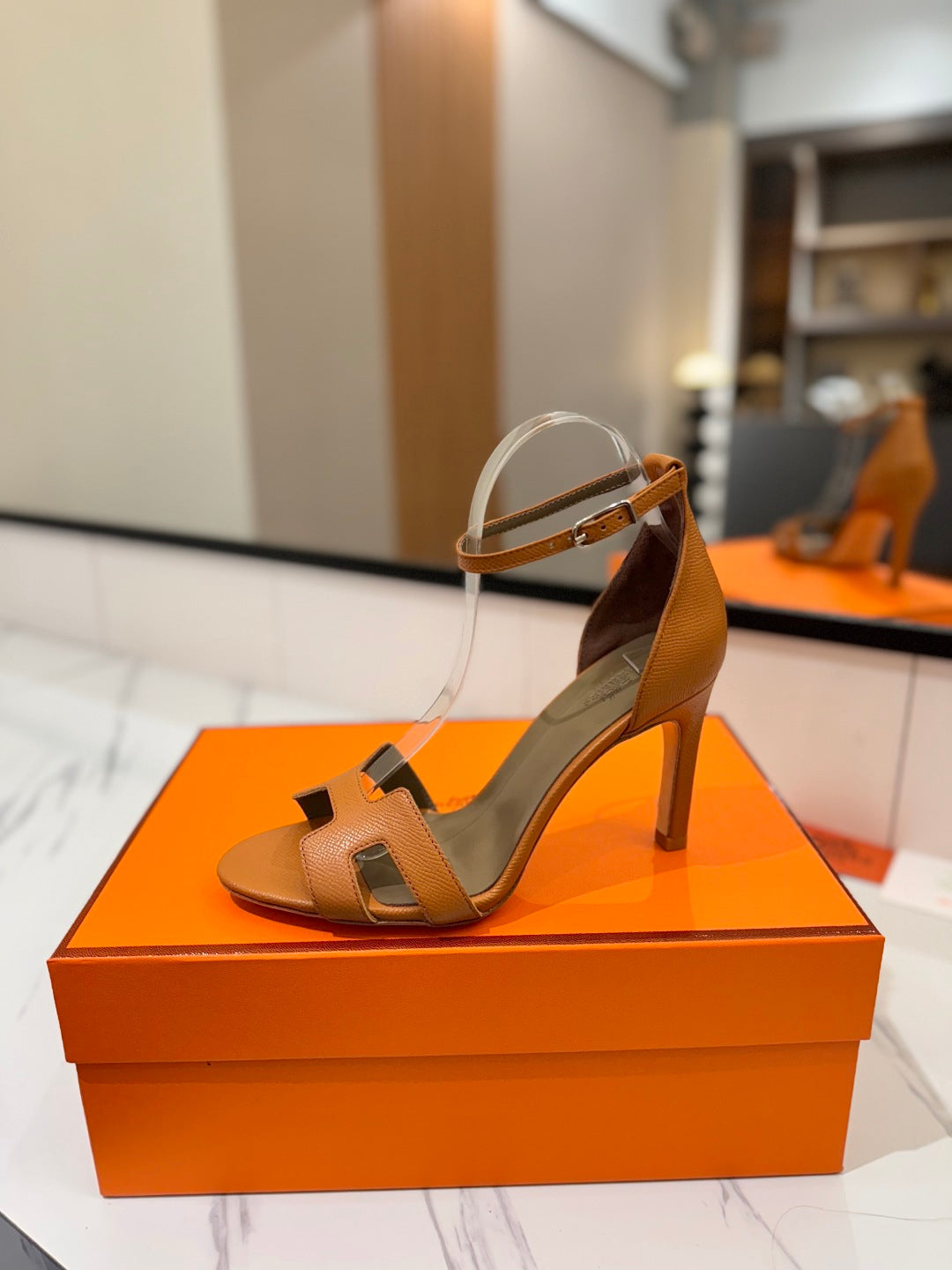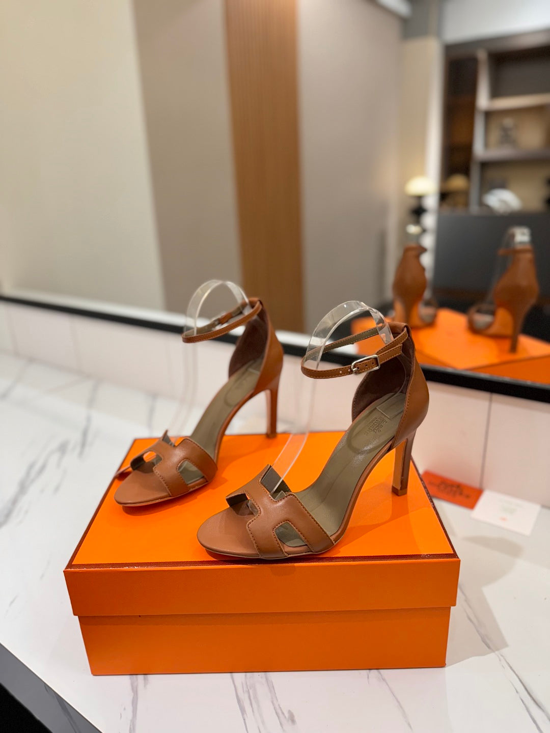 HM Joy 90mm Heeled Sandals Brown Flat Cowhide 294919