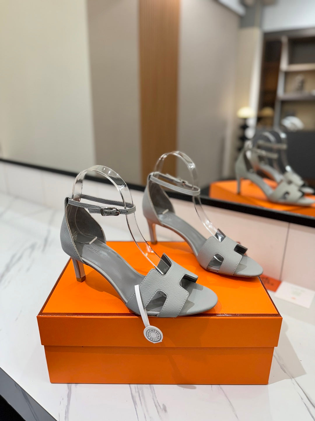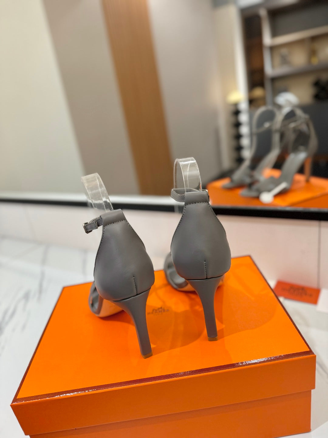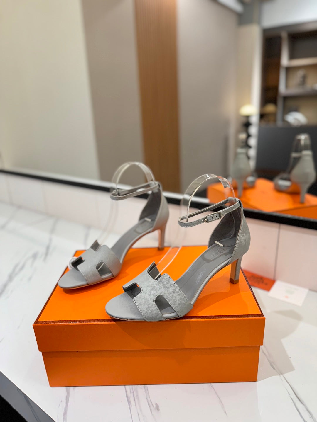 HM Joy 90mm Heeled Sandals Gray Flat Cowhide 294925