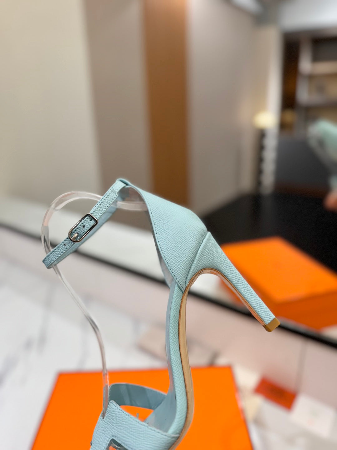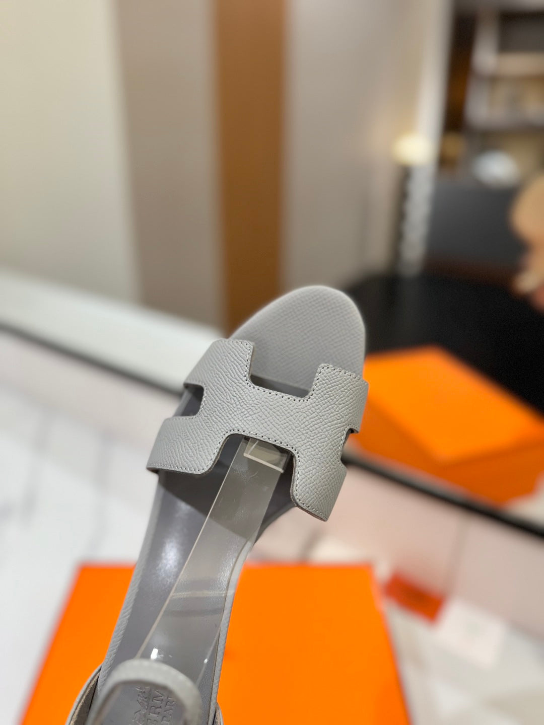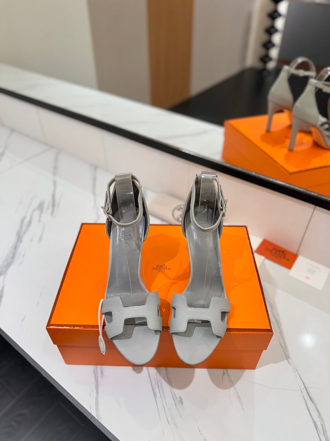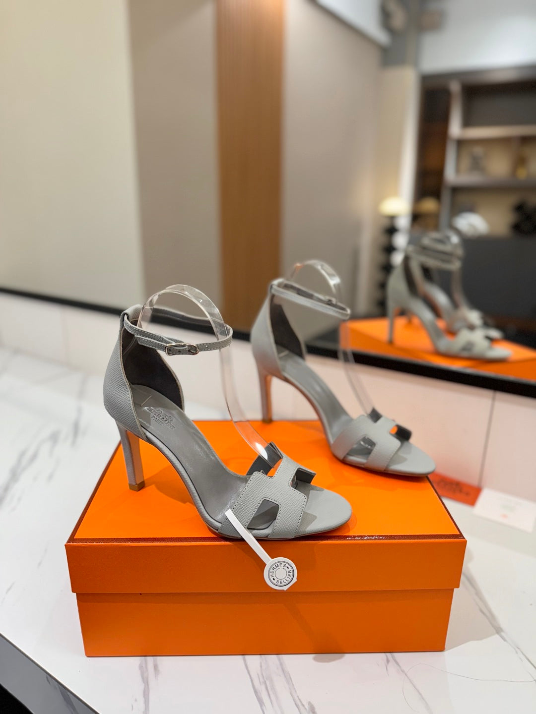 HM Joy 90mm Heeled Sandals Gray Flat Cowhide 294925