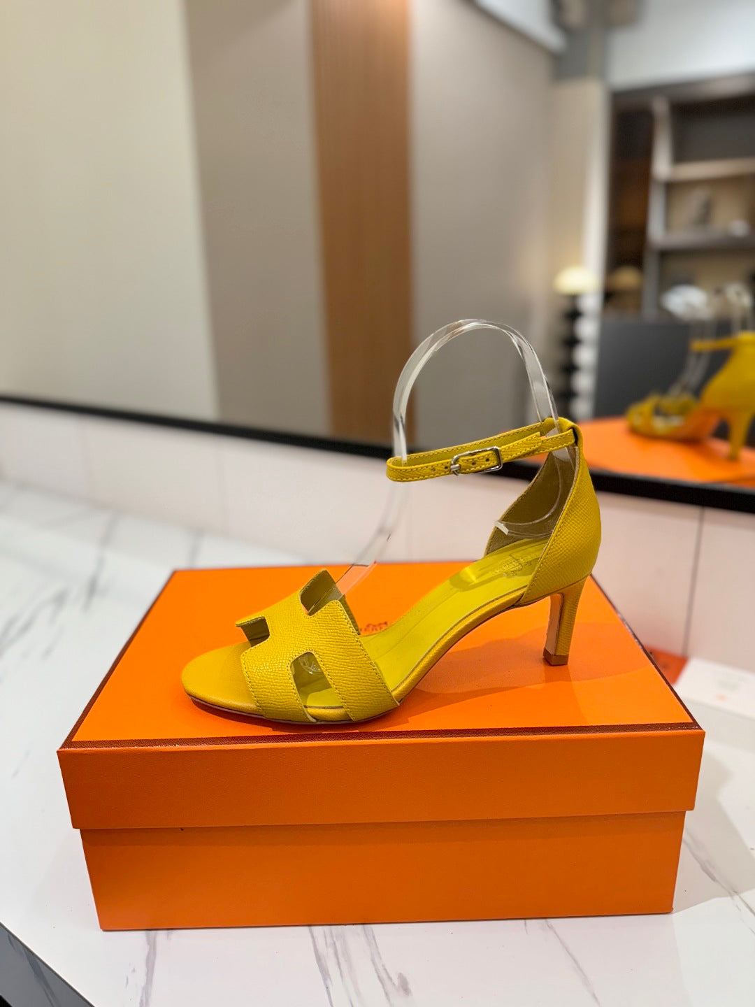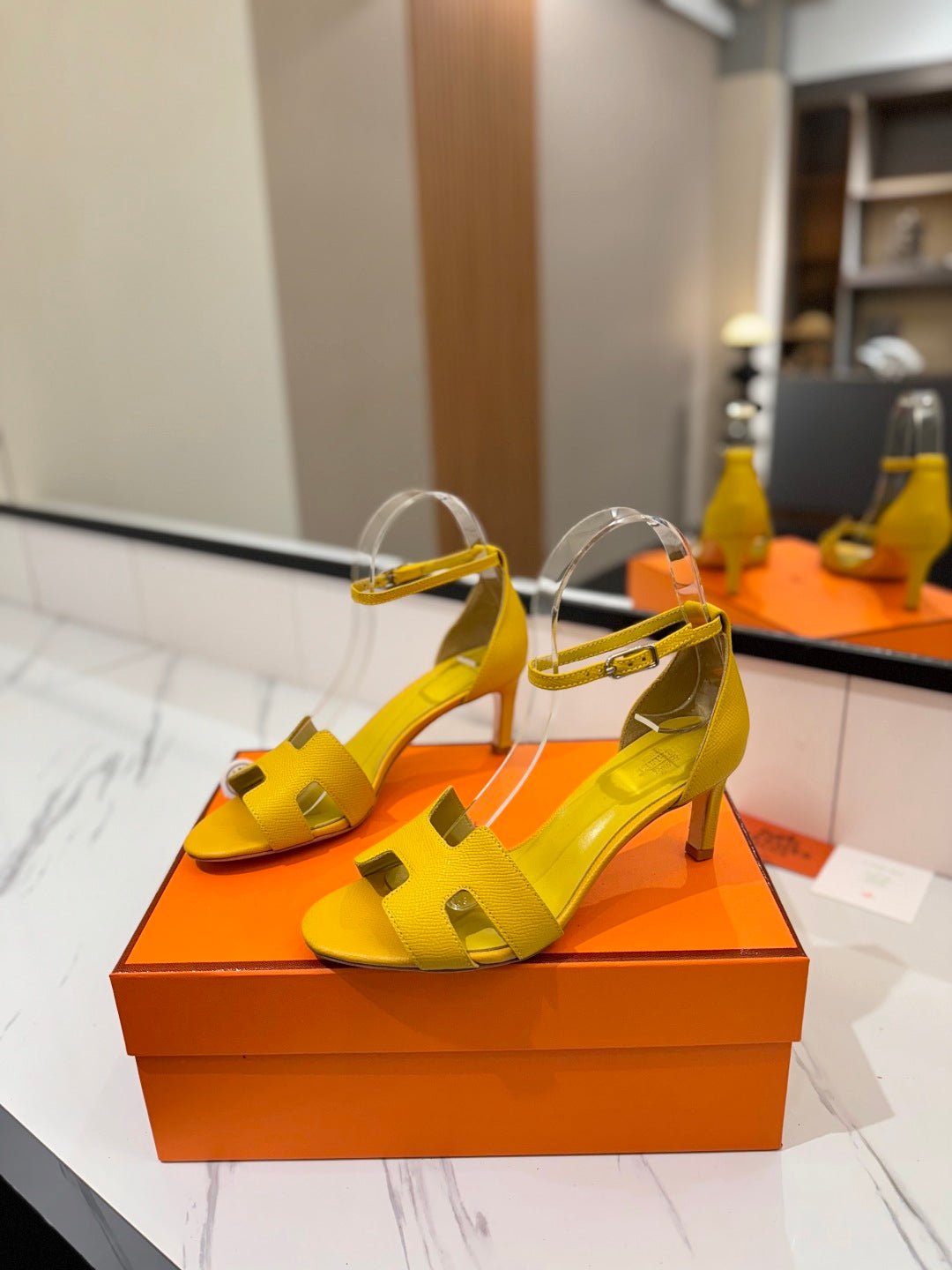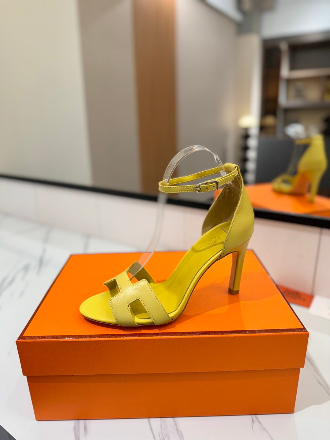HM Joy 90mm Heeled Sandals Yellow Flat Cowhide 294924