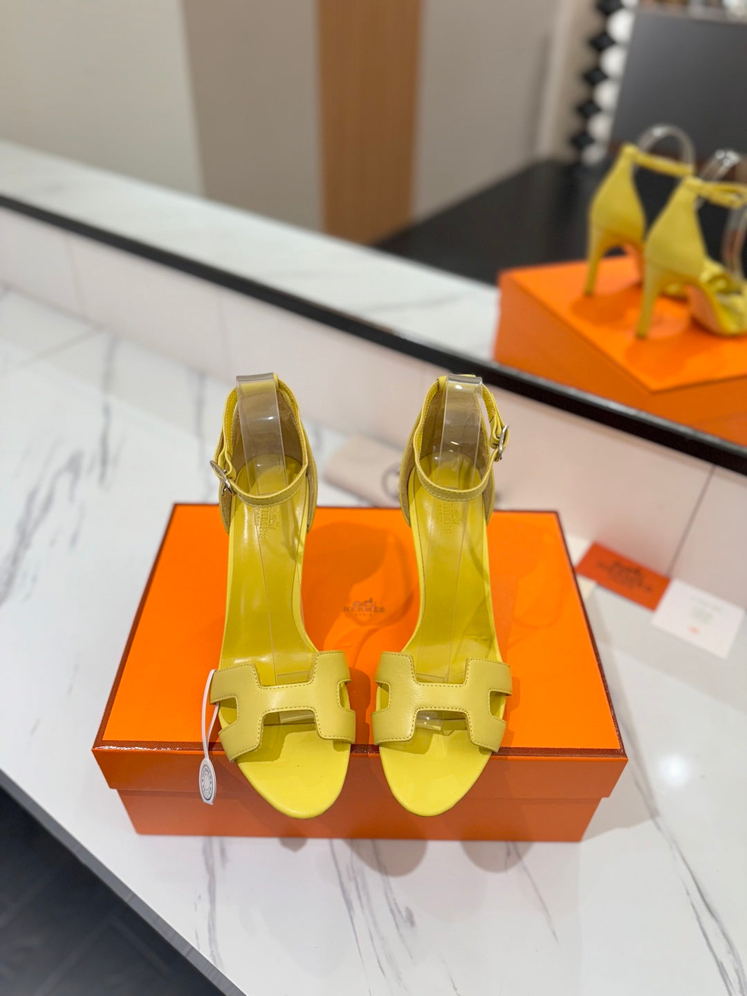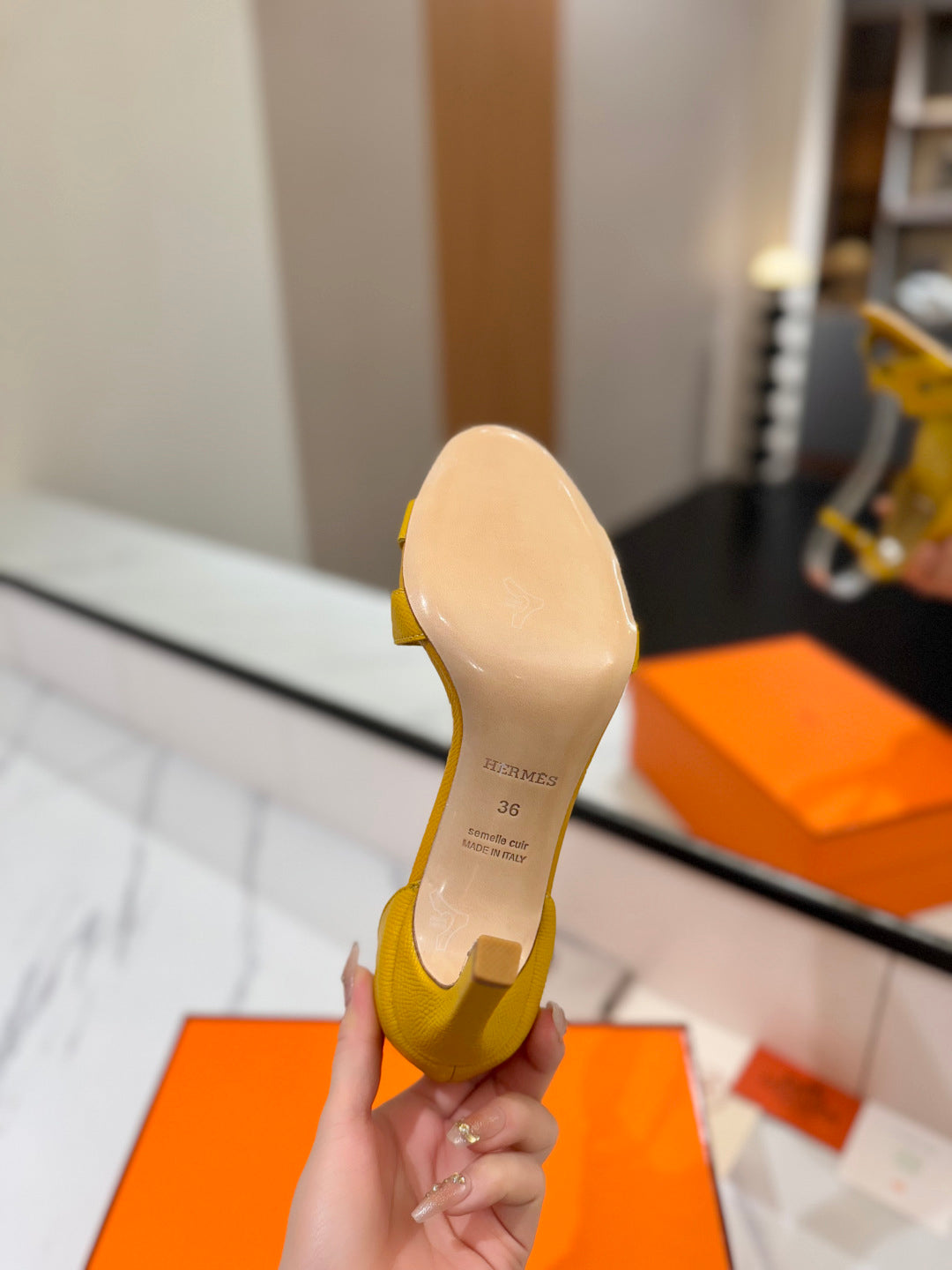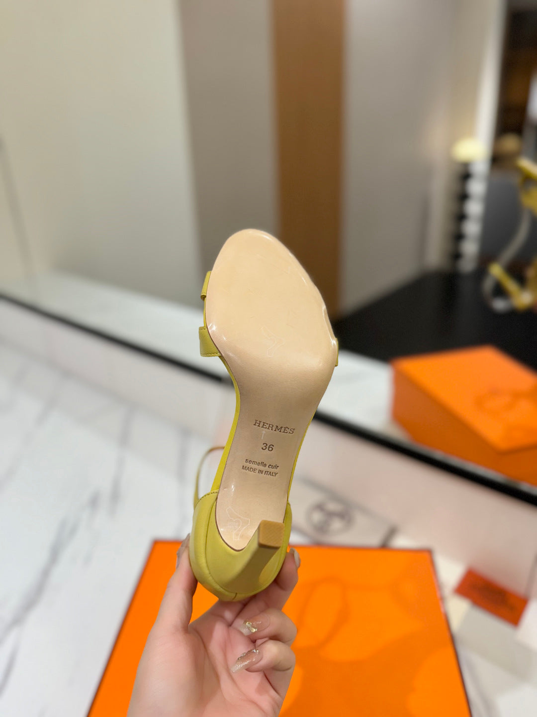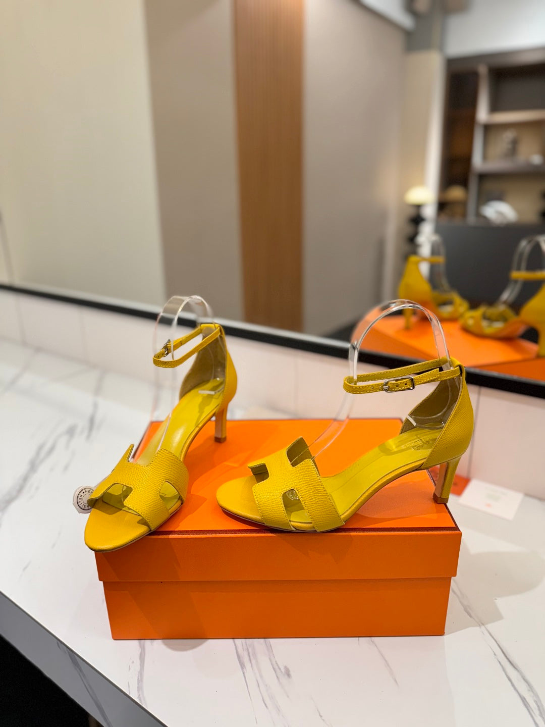 HM Joy 90mm Heeled Sandals Yellow Flat Cowhide 294924