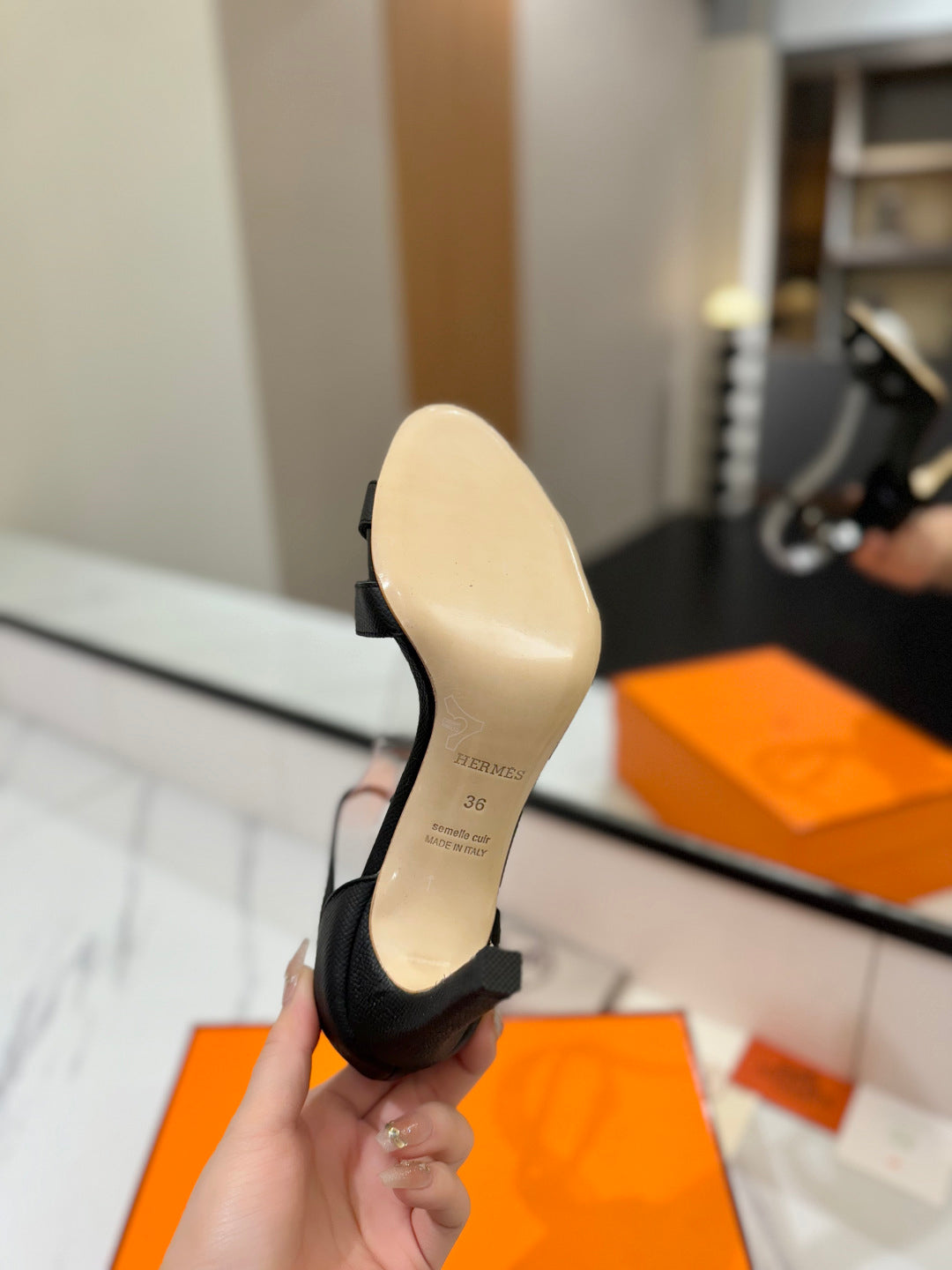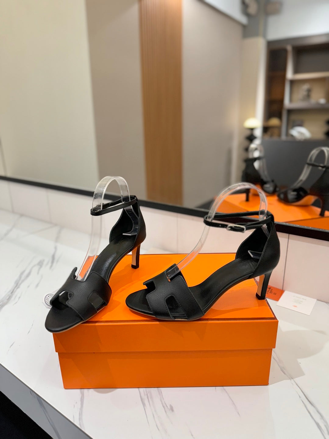 HM Joy 90mm Heeled Sandals Black Flat Cowhide 294917