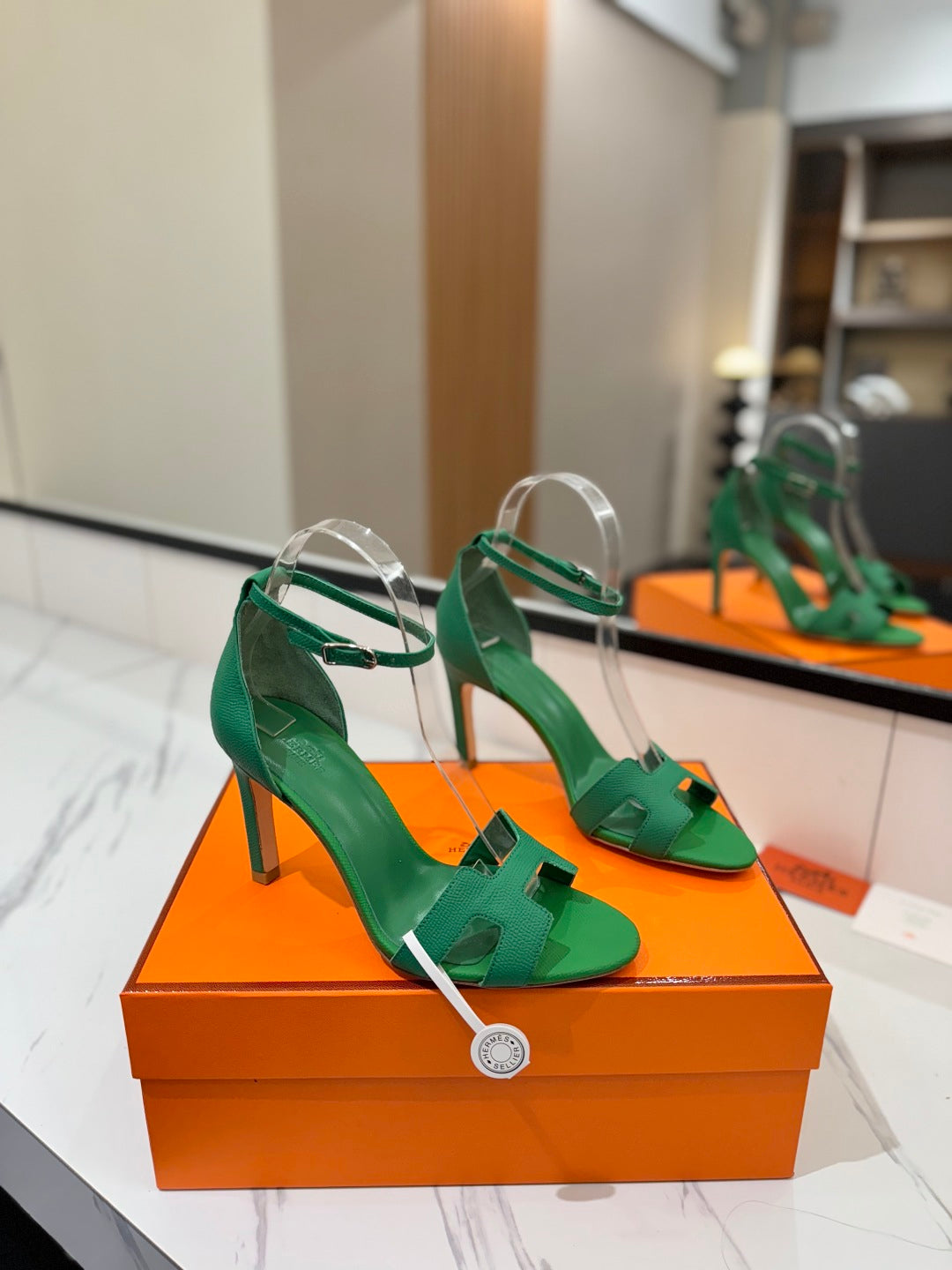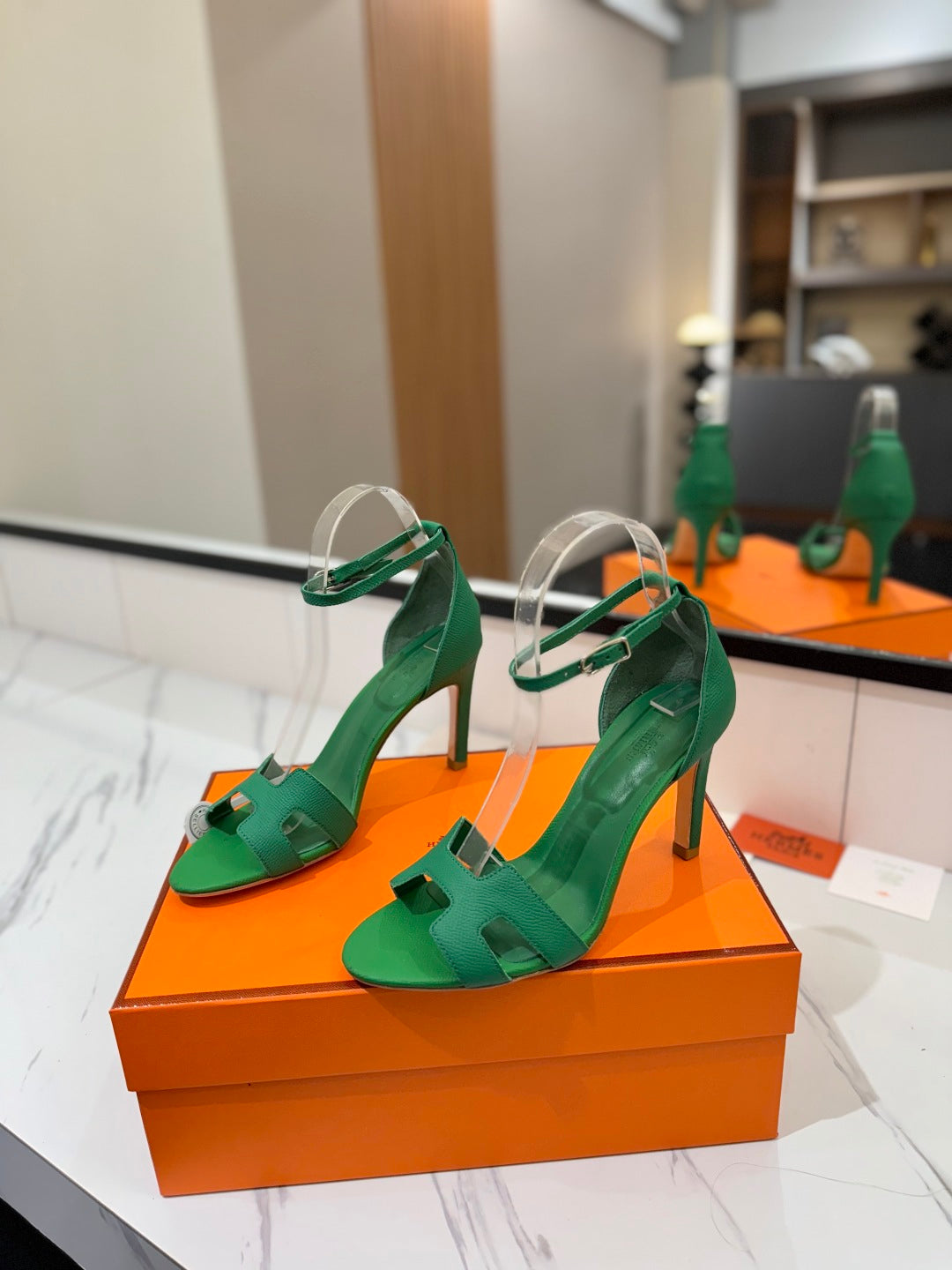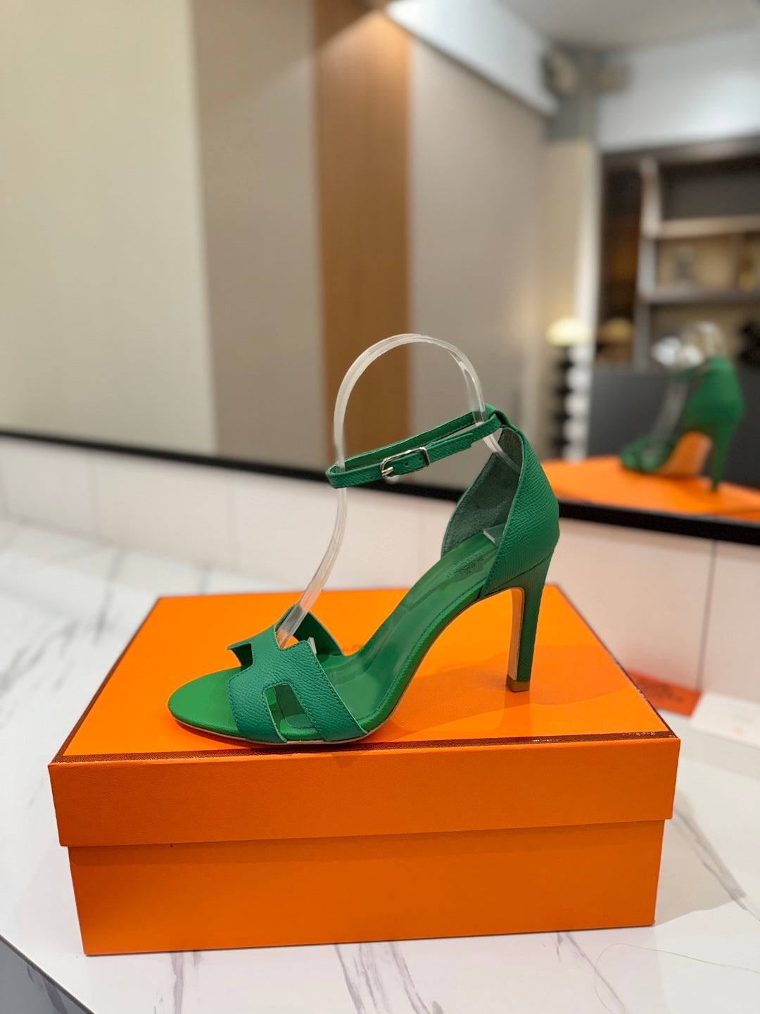 HM Joy 90mm Heeled Sandals Green Flat Cowhide 294920