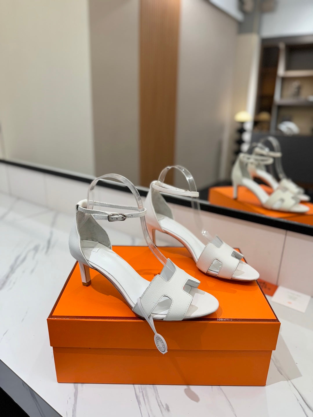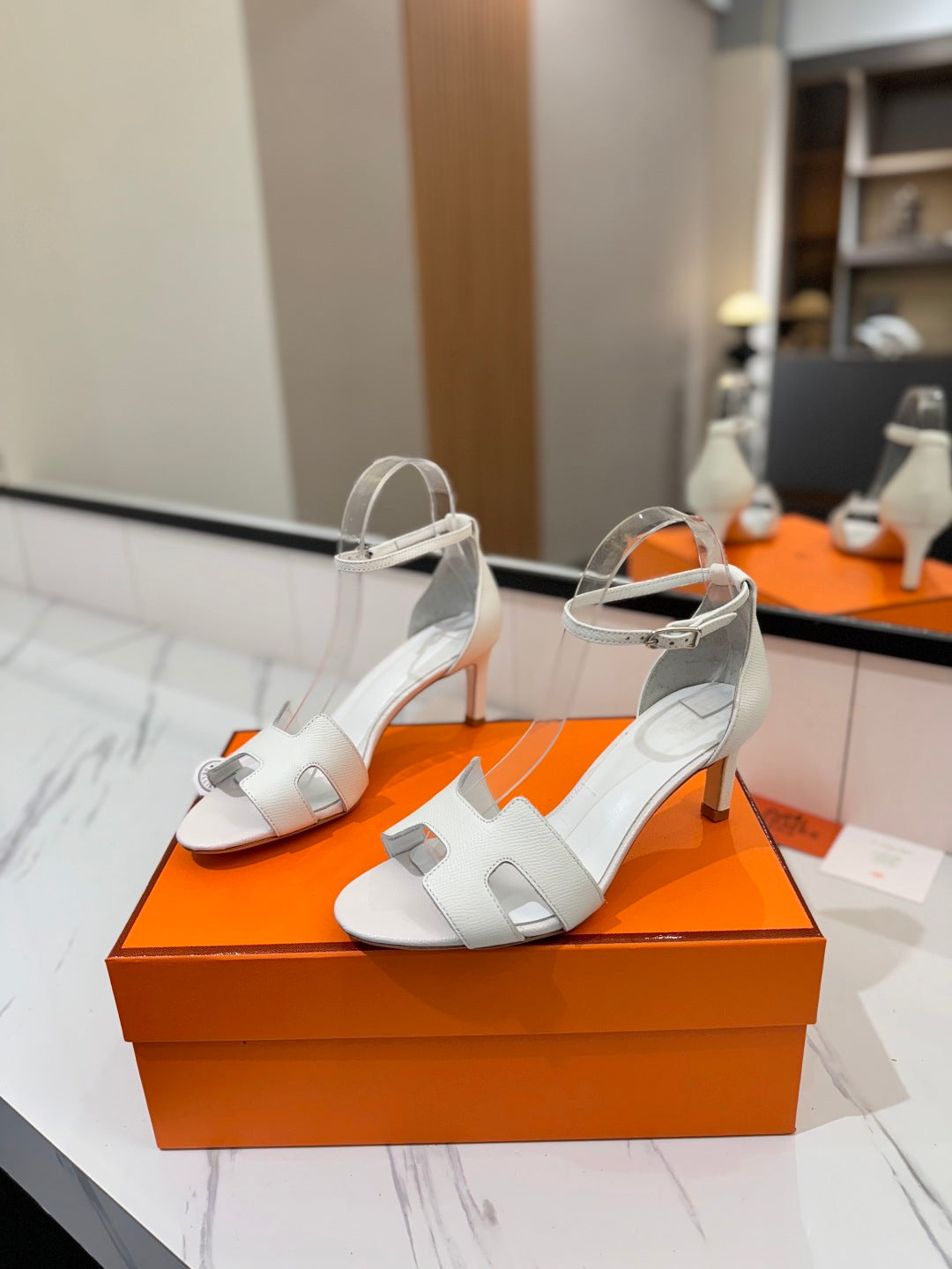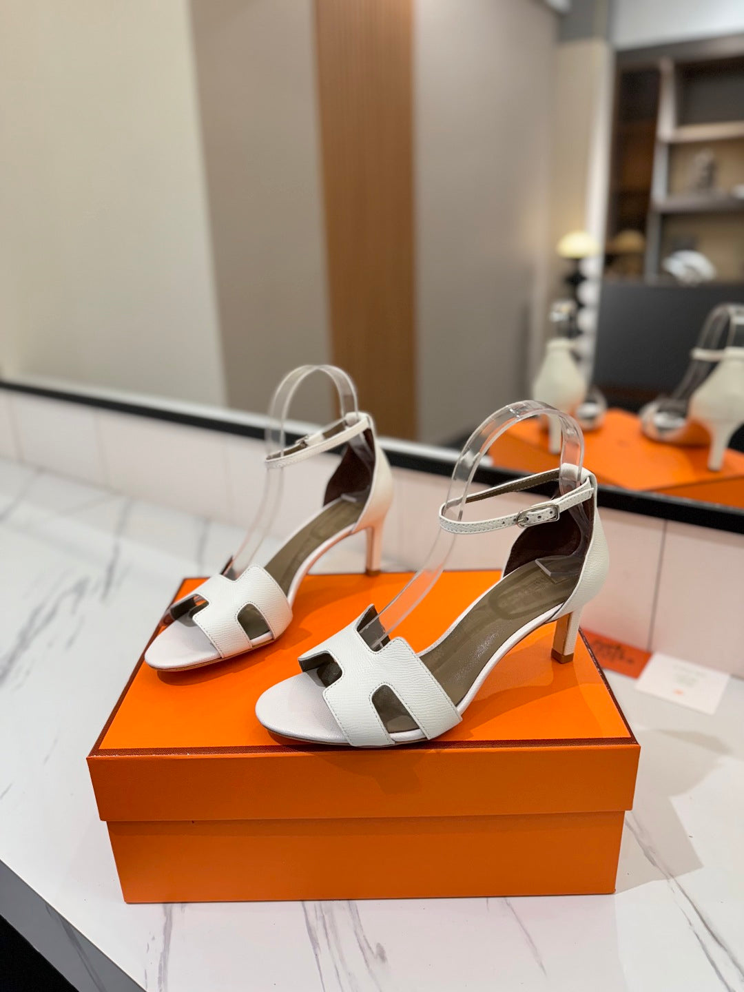 HM Joy 65mm Heeled Sandals White Cowhide 294908
