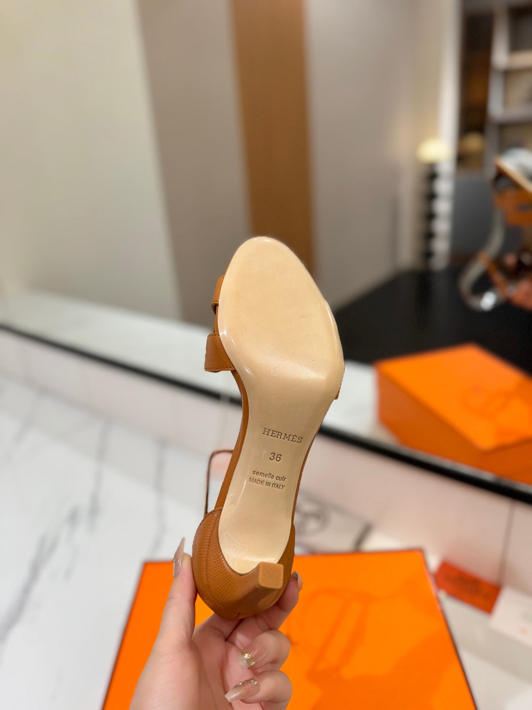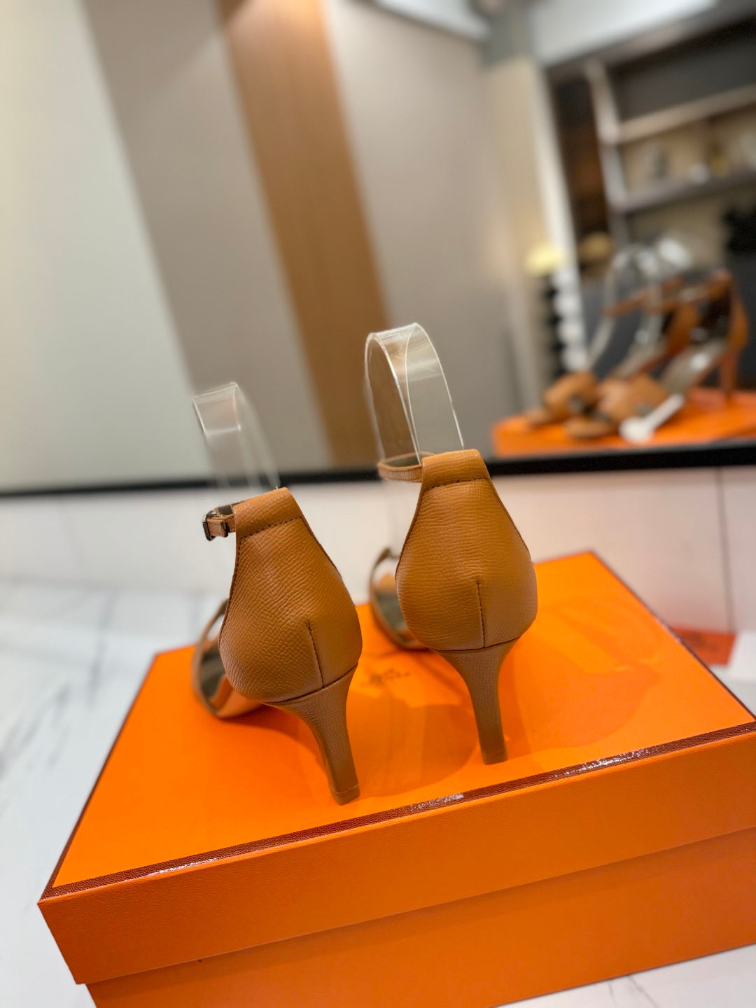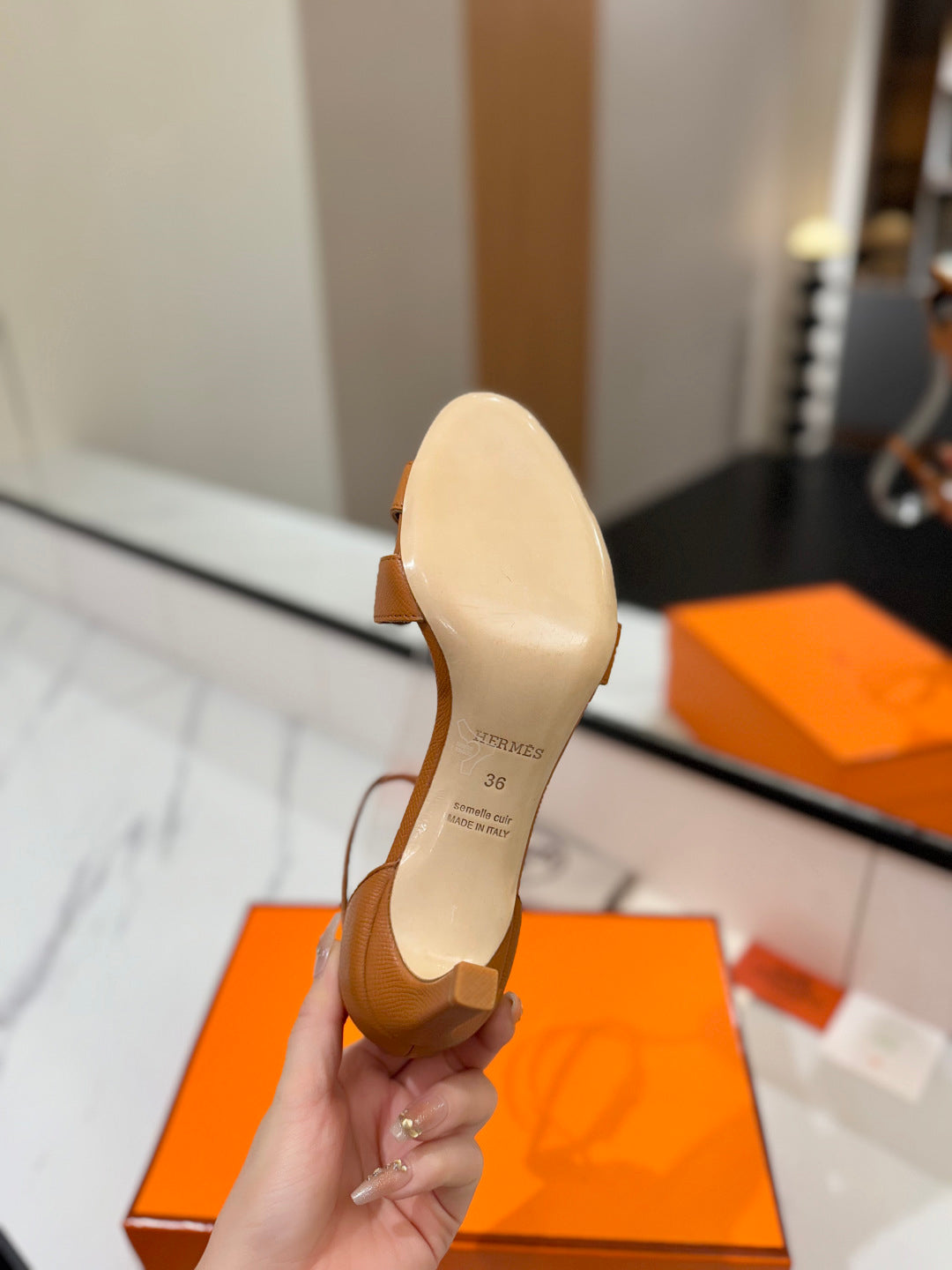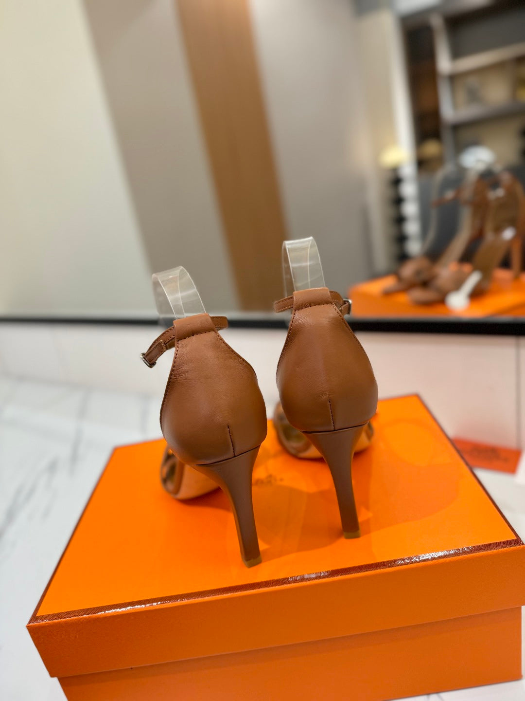 HM Joy 90mm Heeled Sandals Brown Flat Cowhide 294921