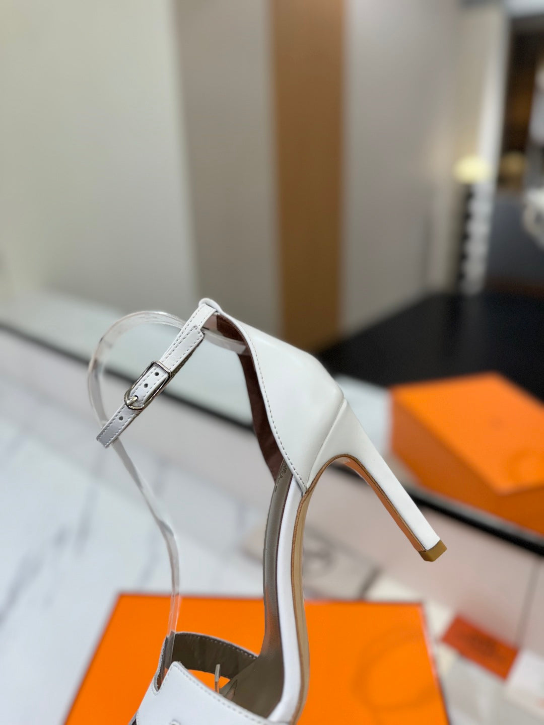HM Joy 90mm Heeled Sandals White Flat Cowhide 294916
