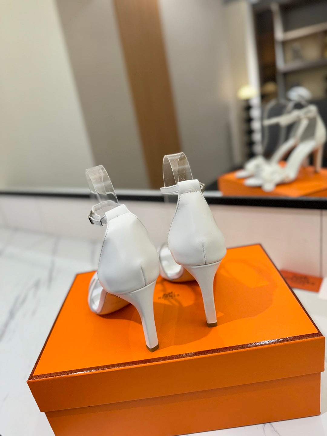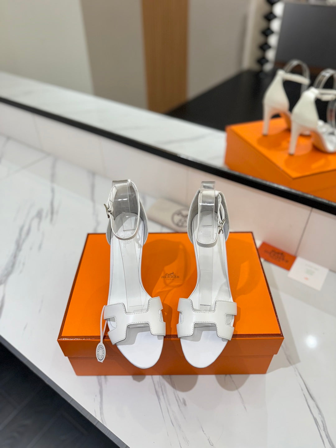 HM Joy 90mm Heeled Sandals White Flat Cowhide 294918